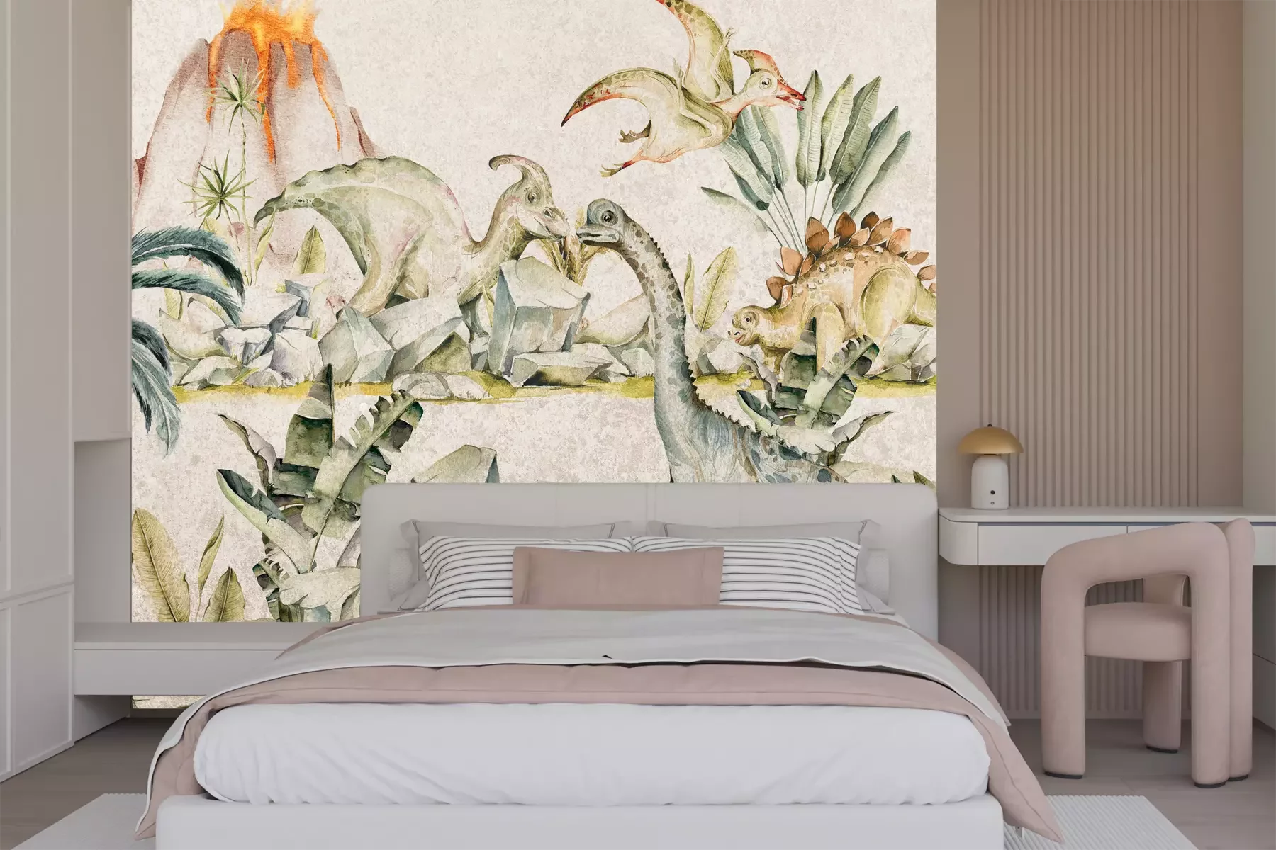 Het materiaal Premium+ is een gestructureerd vinyl op vlies met een gewicht van 255 g/m², dat kleine oneffenheden in de muur effectief camoufleert. De subtiele structuur van fijn zand geeft het oppervlak een exclusieve uitstraling, terwijl de halfmatte afwerking de diepte van de kleuren benadrukt. Het materiaal is dampdoorlatend, waardoor het ook in de keuken en badkamer kan worden gebruikt. De maximale breedte van één baan bedraagt 100 cm – bij grotere afmetingen wordt het fotobehang in meerdere gelijke banen verdeeld. De lijm wordt direct op de muur aangebracht en het behang wordt rand-aan-rand geplakt, wat zorgt voor een esthetisch resultaat zonder zichtbare naden. Het oppervlak kan gemakkelijk worden schoongemaakt door het voorzichtig af te nemen met een vochtige doek.