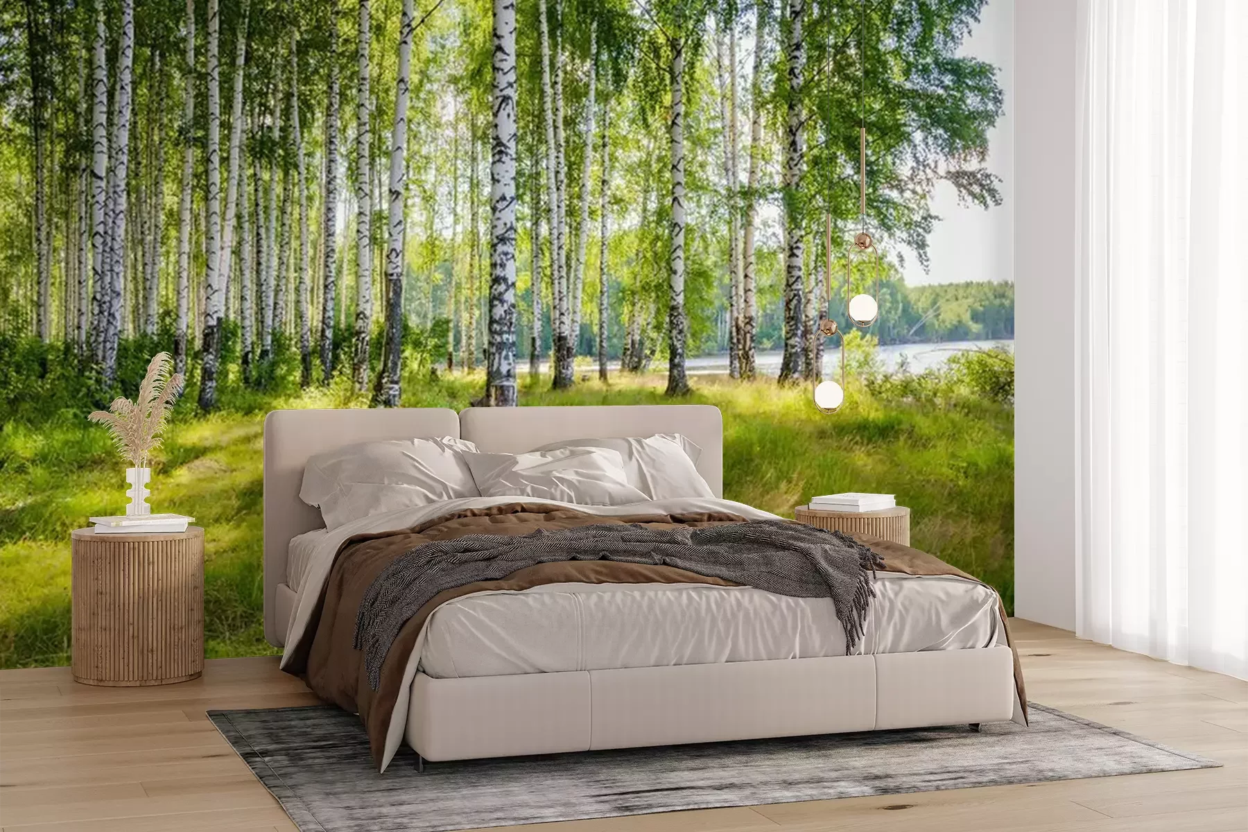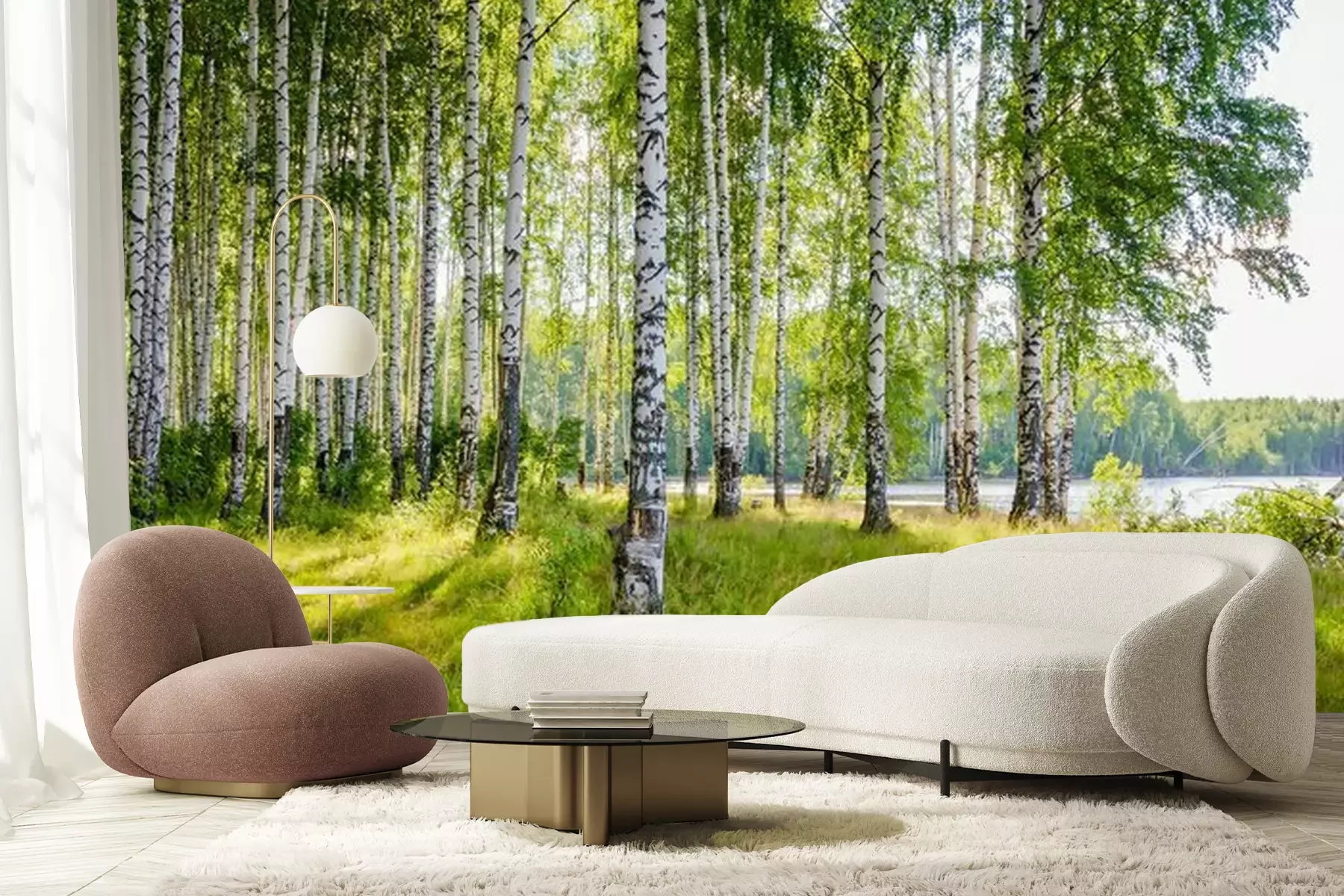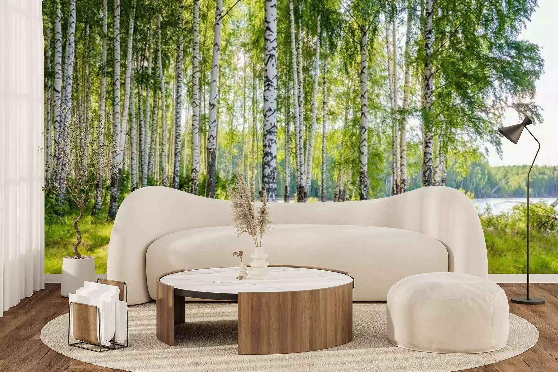Landschap met een berkenbosFotobehang