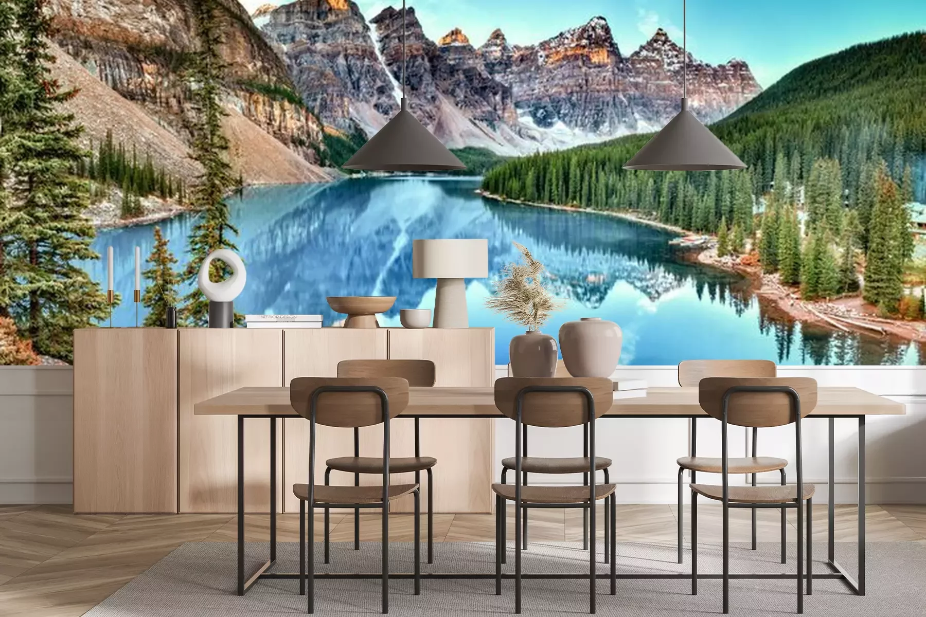 Het fotobehang wordt geleverd in banen. De afmetingen en het aantal banen waaruit het volledige fotobehang bestaat, zijn afhankelijk van het gekozen materiaal. Wanneer het formaat de maximale materiaalbreedte overschrijdt, bestaat de print uit meerdere gelijkmatige banen.