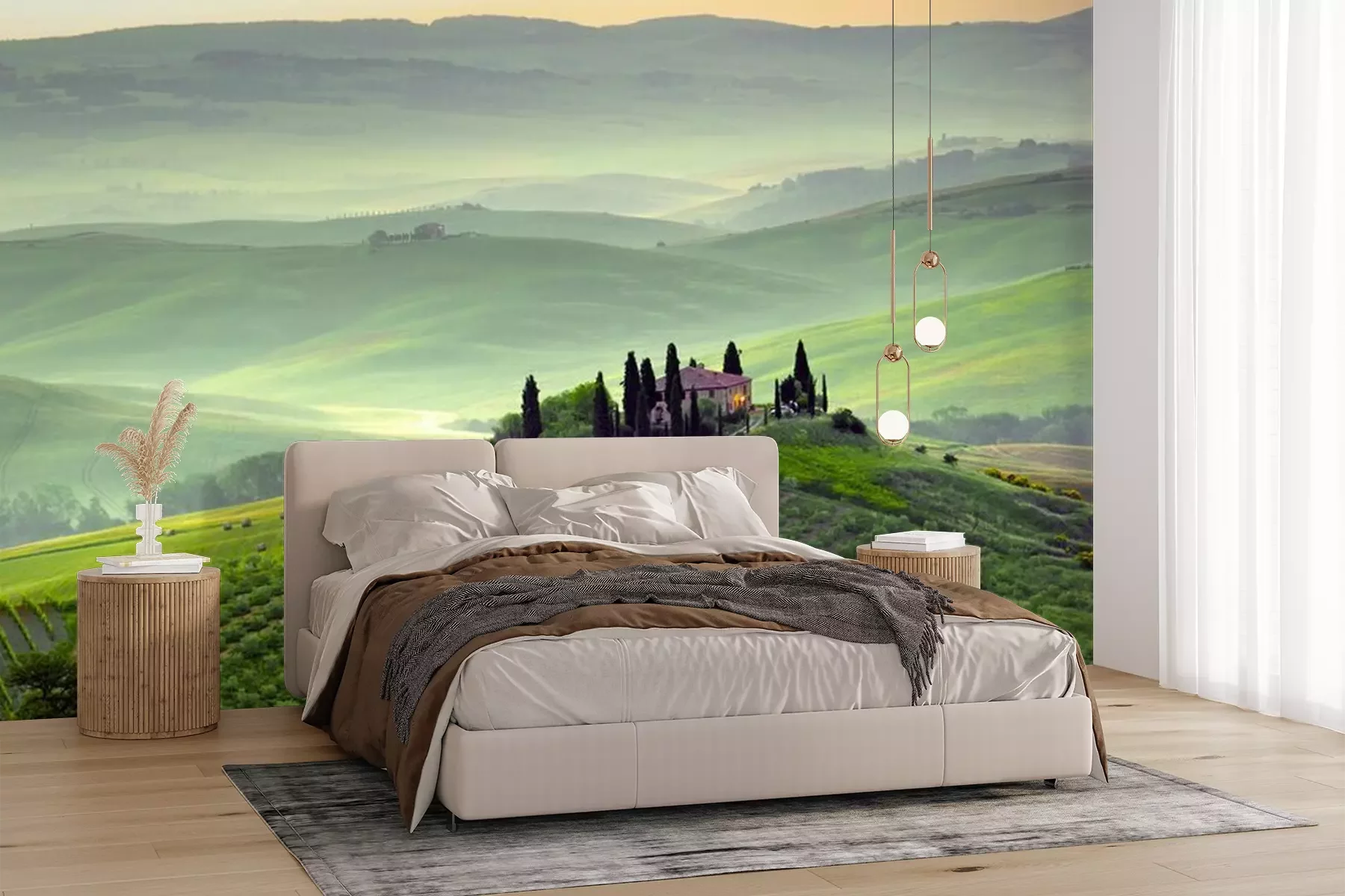 Het materiaal Premium+ is een gestructureerd vinyl op vlies met een gewicht van 255 g/m², dat kleine oneffenheden in de muur effectief camoufleert. De subtiele structuur van fijn zand geeft het oppervlak een exclusieve uitstraling, terwijl de halfmatte afwerking de diepte van de kleuren benadrukt. Het materiaal is dampdoorlatend, waardoor het ook in de keuken en badkamer kan worden gebruikt. De maximale breedte van één baan bedraagt 100 cm – bij grotere afmetingen wordt het fotobehang in meerdere gelijke banen verdeeld. De lijm wordt direct op de muur aangebracht en het behang wordt rand-aan-rand geplakt, wat zorgt voor een esthetisch resultaat zonder zichtbare naden. Het oppervlak kan gemakkelijk worden schoongemaakt door het voorzichtig af te nemen met een vochtige doek.