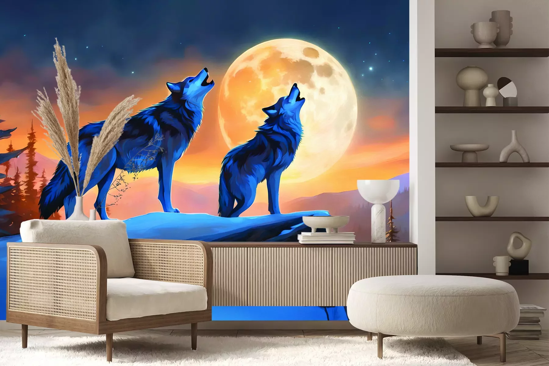 Het materiaal Premium+ is een gestructureerd vinyl op vlies met een gewicht van 255 g/m², dat kleine oneffenheden in de muur effectief camoufleert. De subtiele structuur van fijn zand geeft het oppervlak een exclusieve uitstraling, terwijl de halfmatte afwerking de diepte van de kleuren benadrukt. Het materiaal is dampdoorlatend, waardoor het ook in de keuken en badkamer kan worden gebruikt. De maximale breedte van één baan bedraagt 100 cm – bij grotere afmetingen wordt het fotobehang in meerdere gelijke banen verdeeld. De lijm wordt direct op de muur aangebracht en het behang wordt rand-aan-rand geplakt, wat zorgt voor een esthetisch resultaat zonder zichtbare naden. Het oppervlak kan gemakkelijk worden schoongemaakt door het voorzichtig af te nemen met een vochtige doek.