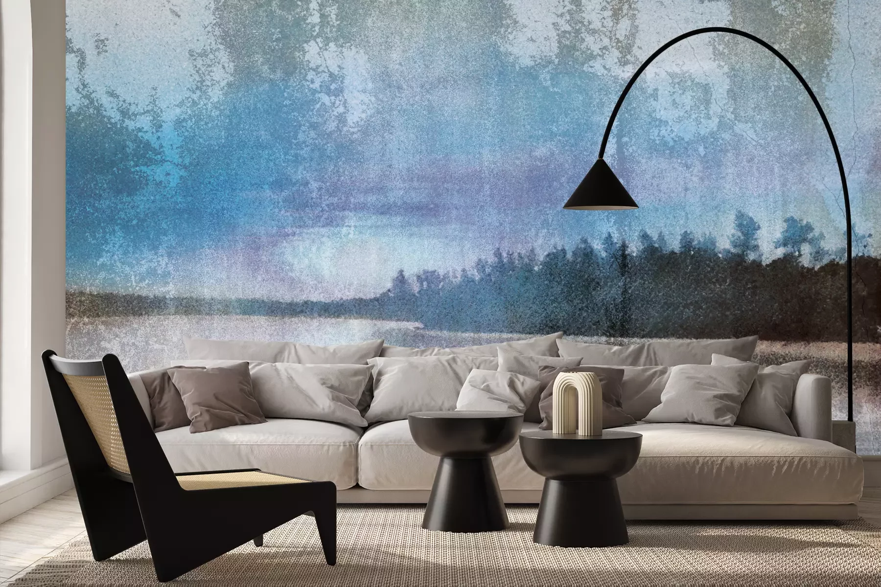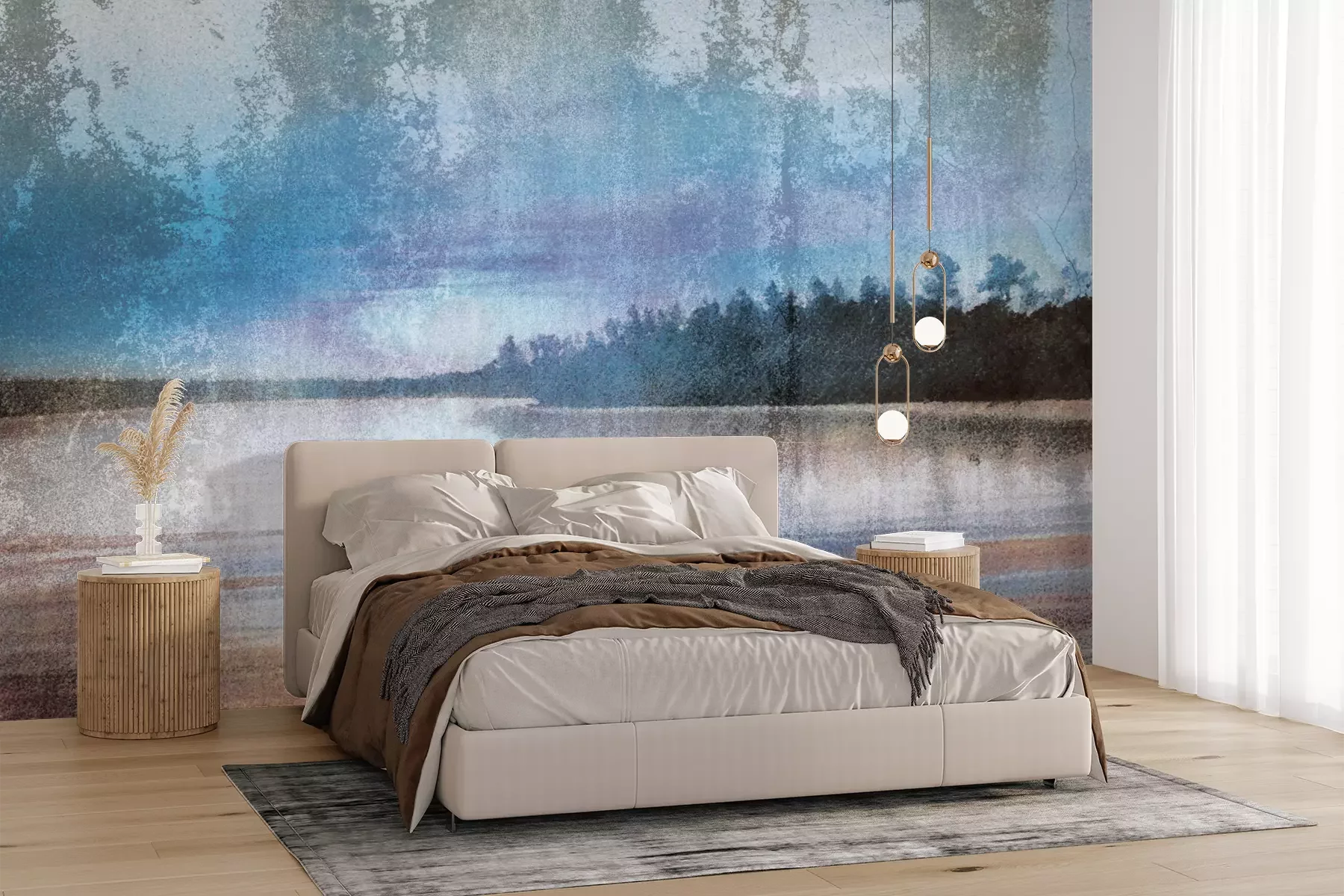 Het materiaal Premium+ is een gestructureerd vinyl op vlies met een gewicht van 255 g/m², dat kleine oneffenheden in de muur effectief camoufleert. De subtiele structuur van fijn zand geeft het oppervlak een exclusieve uitstraling, terwijl de halfmatte afwerking de diepte van de kleuren benadrukt. Het materiaal is dampdoorlatend, waardoor het ook in de keuken en badkamer kan worden gebruikt. De maximale breedte van één baan bedraagt 100 cm – bij grotere afmetingen wordt het fotobehang in meerdere gelijke banen verdeeld. De lijm wordt direct op de muur aangebracht en het behang wordt rand-aan-rand geplakt, wat zorgt voor een esthetisch resultaat zonder zichtbare naden. Het oppervlak kan gemakkelijk worden schoongemaakt door het voorzichtig af te nemen met een vochtige doek.