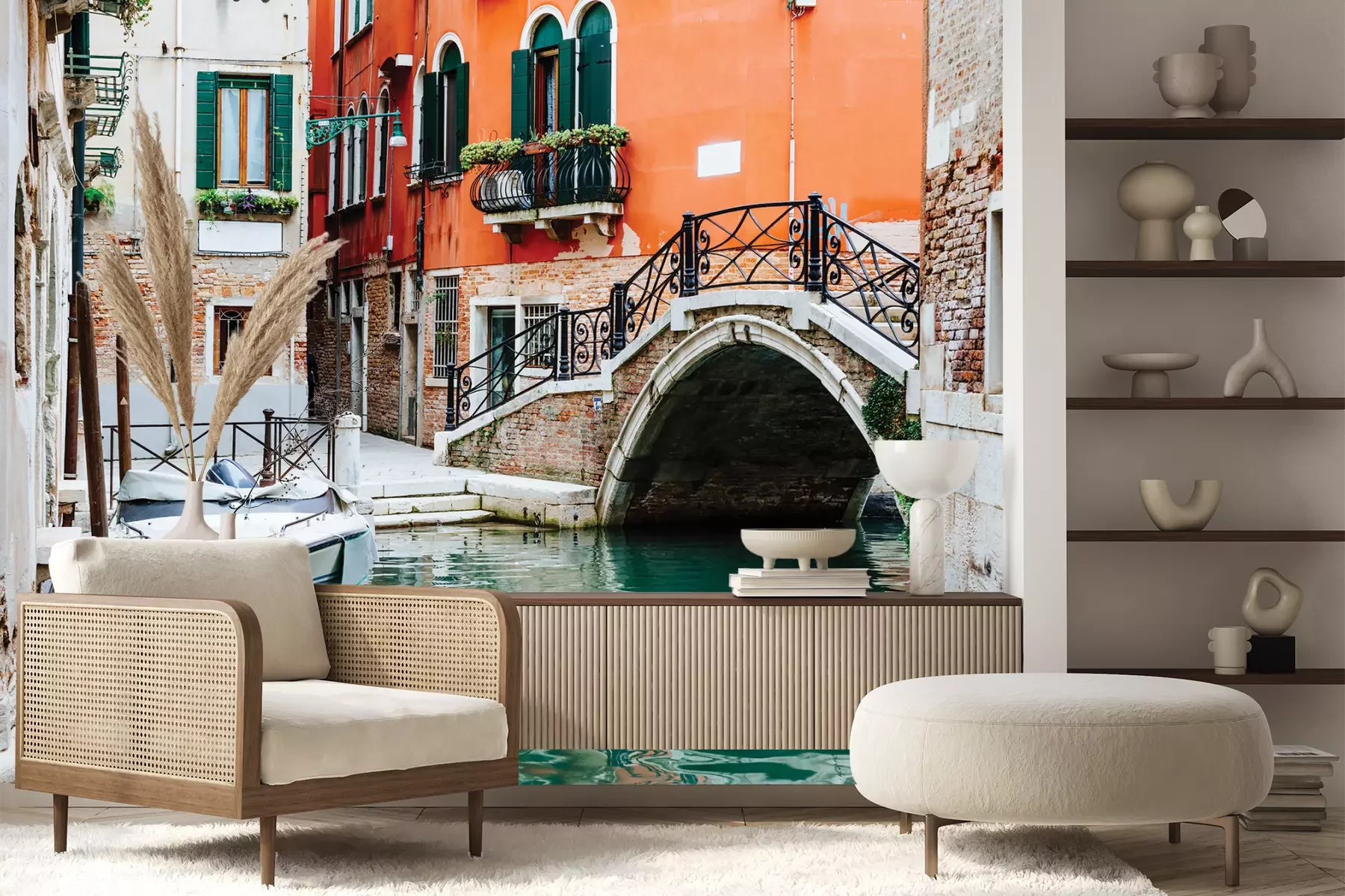 Het materiaal Premium+ is een gestructureerd vinyl op vlies met een gewicht van 255 g/m², dat kleine oneffenheden in de muur effectief camoufleert. De subtiele structuur van fijn zand geeft het oppervlak een exclusieve uitstraling, terwijl de halfmatte afwerking de diepte van de kleuren benadrukt. Het materiaal is dampdoorlatend, waardoor het ook in de keuken en badkamer kan worden gebruikt. De maximale breedte van één baan bedraagt 100 cm – bij grotere afmetingen wordt het fotobehang in meerdere gelijke banen verdeeld. De lijm wordt direct op de muur aangebracht en het behang wordt rand-aan-rand geplakt, wat zorgt voor een esthetisch resultaat zonder zichtbare naden. Het oppervlak kan gemakkelijk worden schoongemaakt door het voorzichtig af te nemen met een vochtige doek.