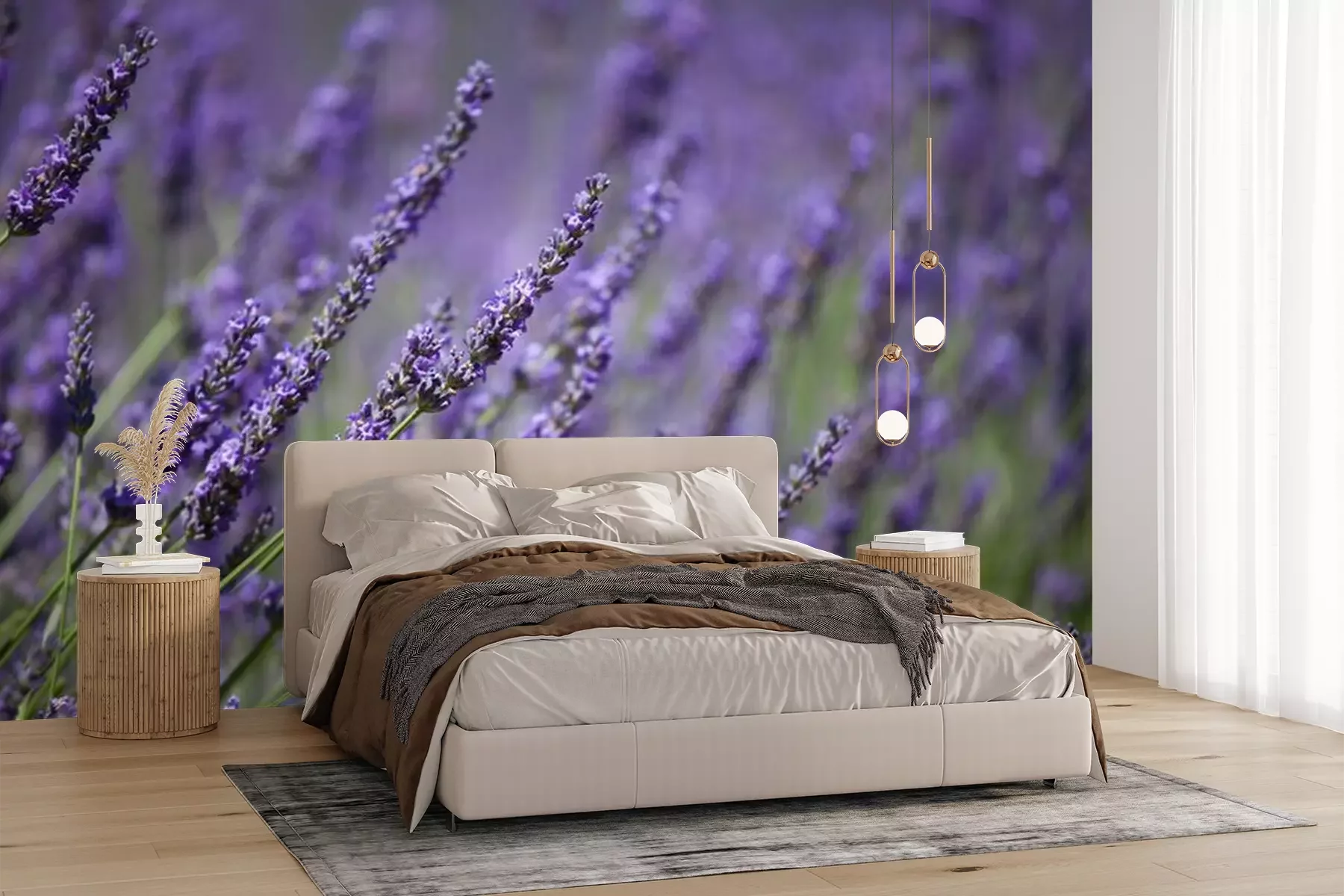 Het materiaal Premium+ is een gestructureerd vinyl op vlies met een gewicht van 255 g/m², dat kleine oneffenheden in de muur effectief camoufleert. De subtiele structuur van fijn zand geeft het oppervlak een exclusieve uitstraling, terwijl de halfmatte afwerking de diepte van de kleuren benadrukt. Het materiaal is dampdoorlatend, waardoor het ook in de keuken en badkamer kan worden gebruikt. De maximale breedte van één baan bedraagt 100 cm – bij grotere afmetingen wordt het fotobehang in meerdere gelijke banen verdeeld. De lijm wordt direct op de muur aangebracht en het behang wordt rand-aan-rand geplakt, wat zorgt voor een esthetisch resultaat zonder zichtbare naden. Het oppervlak kan gemakkelijk worden schoongemaakt door het voorzichtig af te nemen met een vochtige doek.
