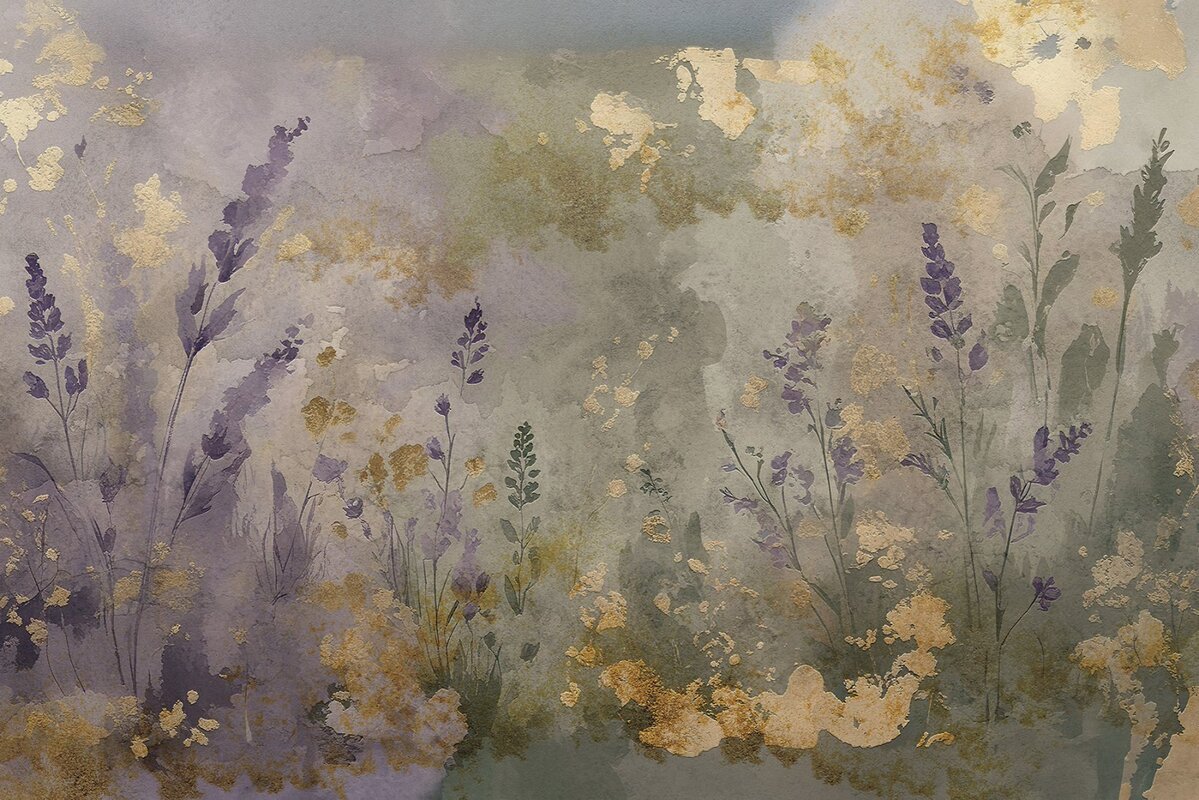 Fotobehang: Lavendelveld met gouden versieringen