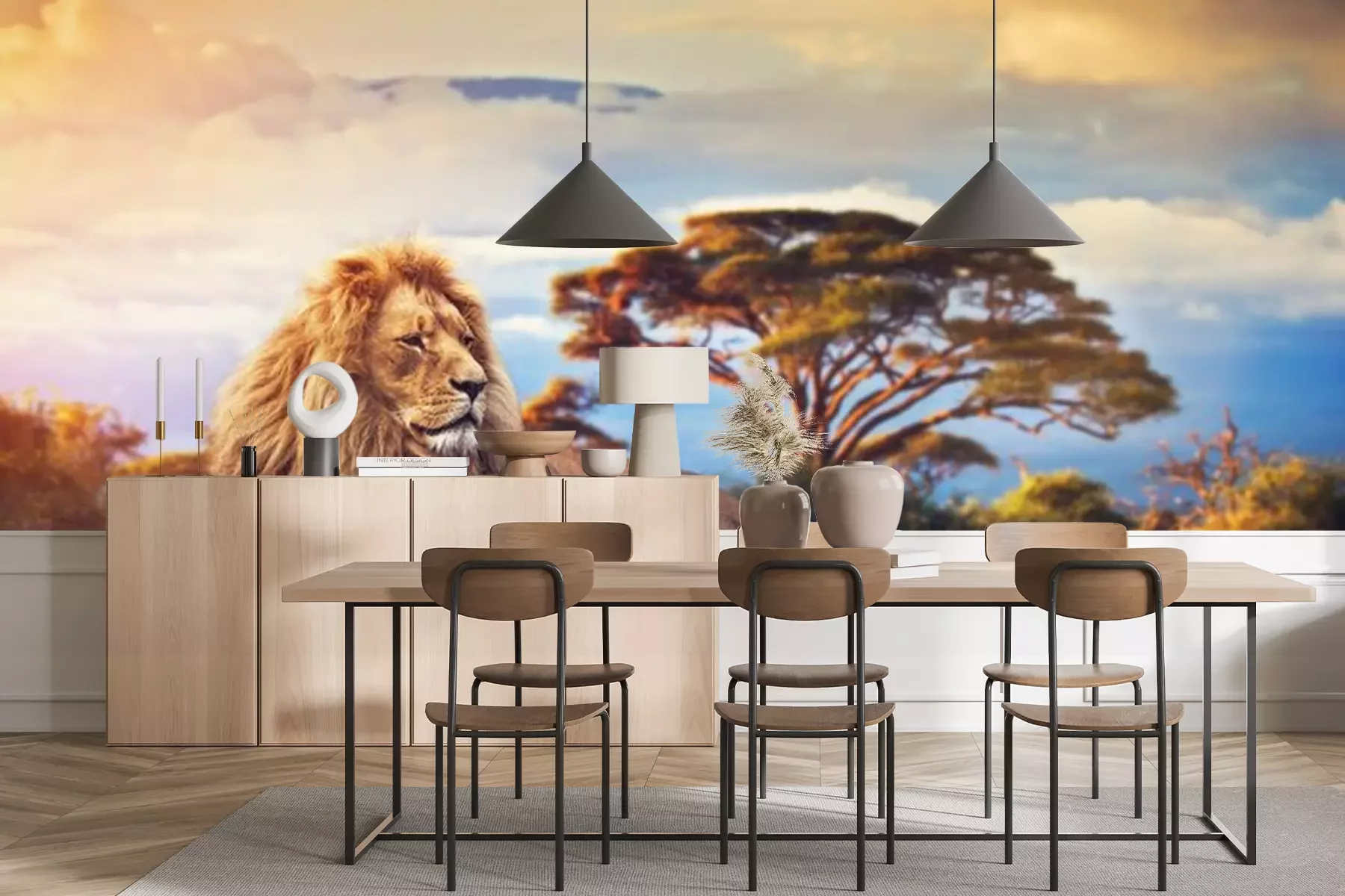 Fotobehang Leeuw op een prachtig safarilandschap