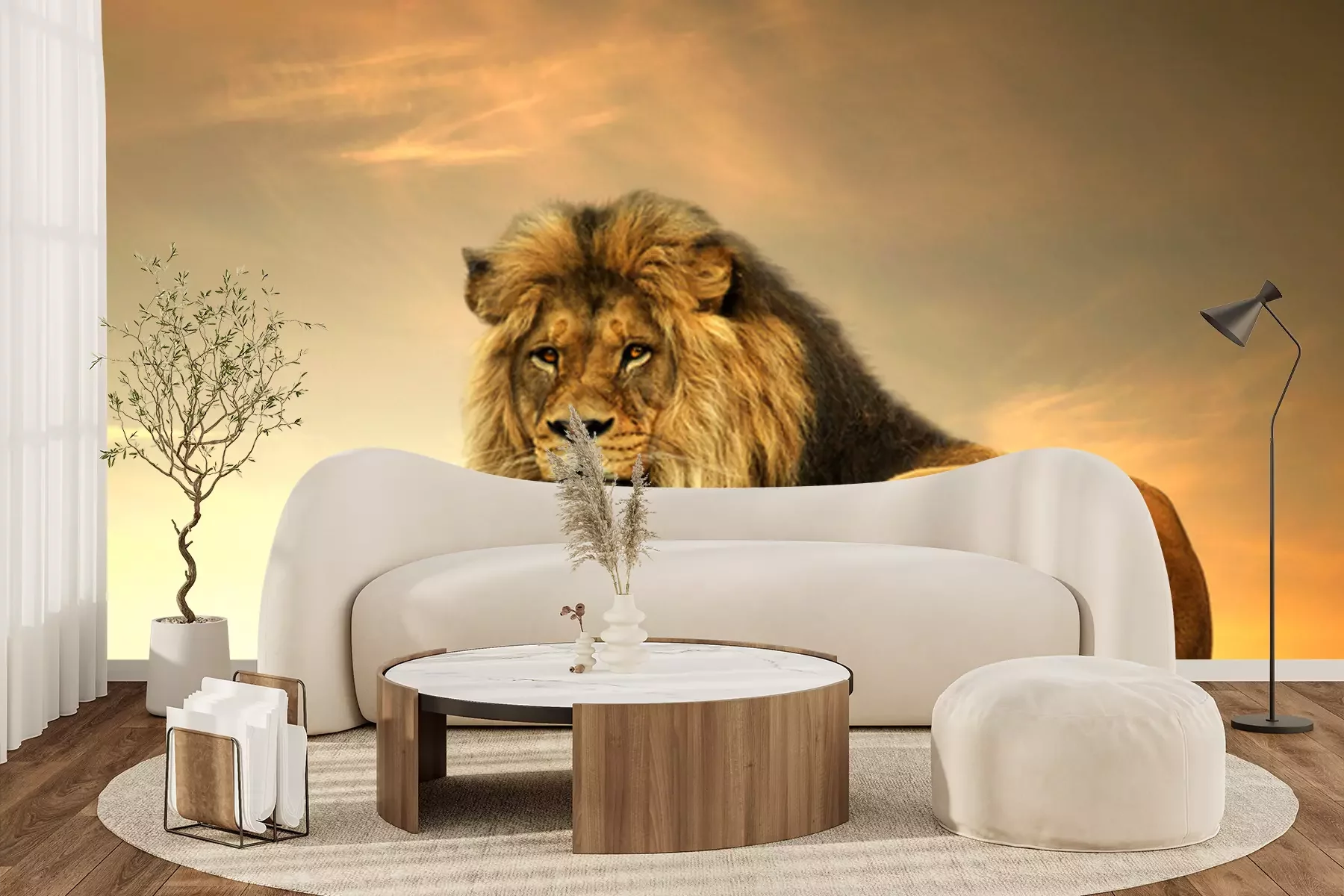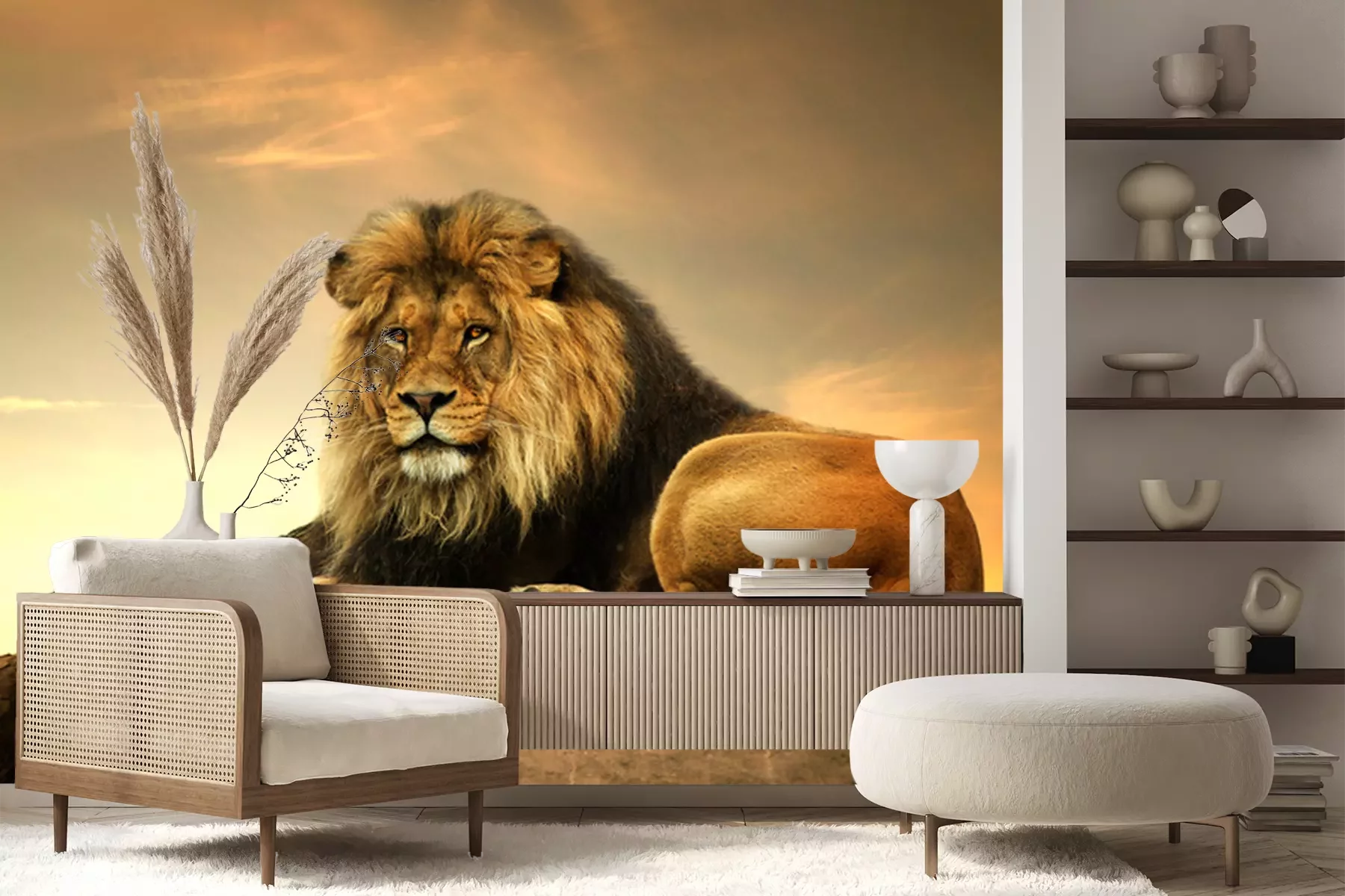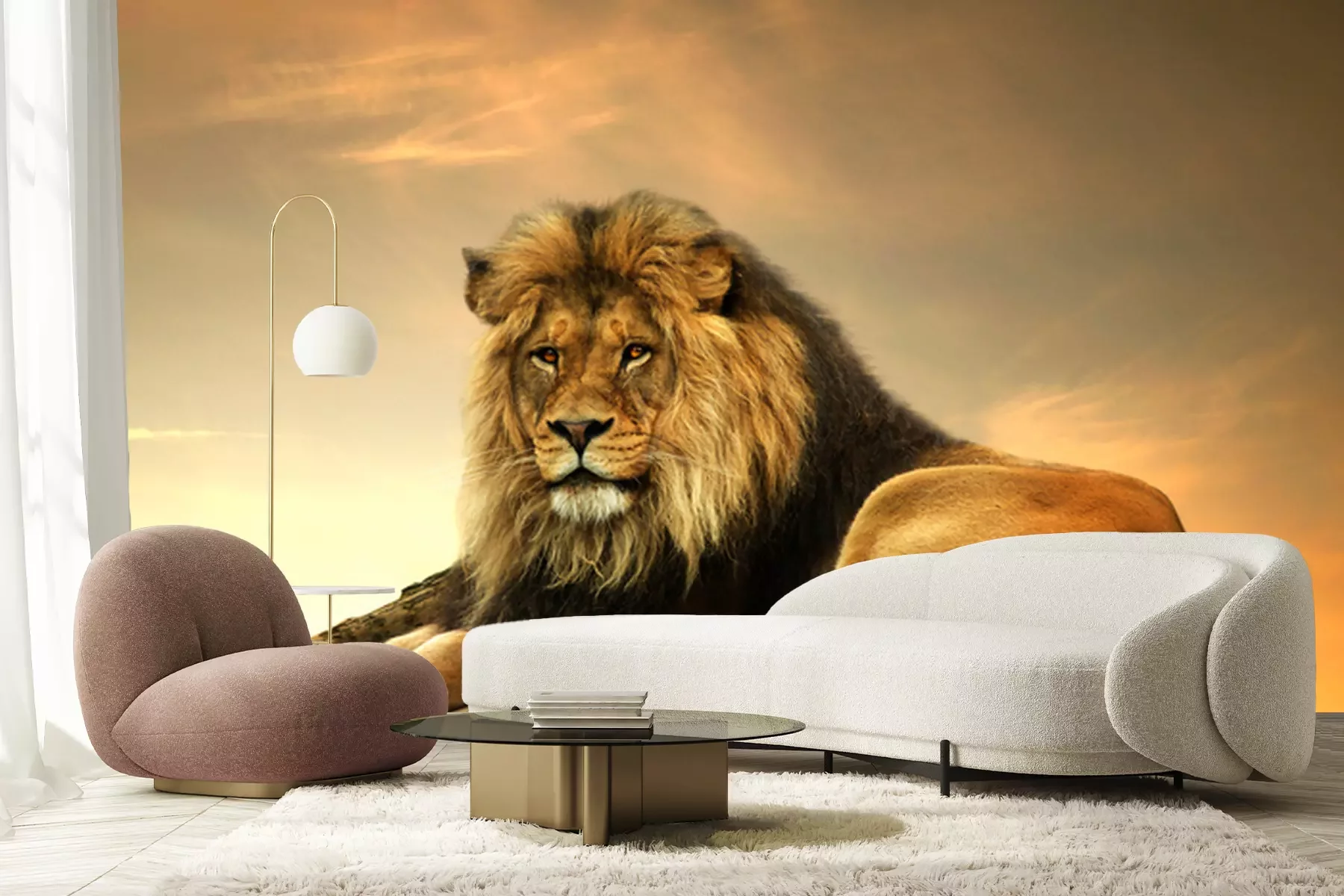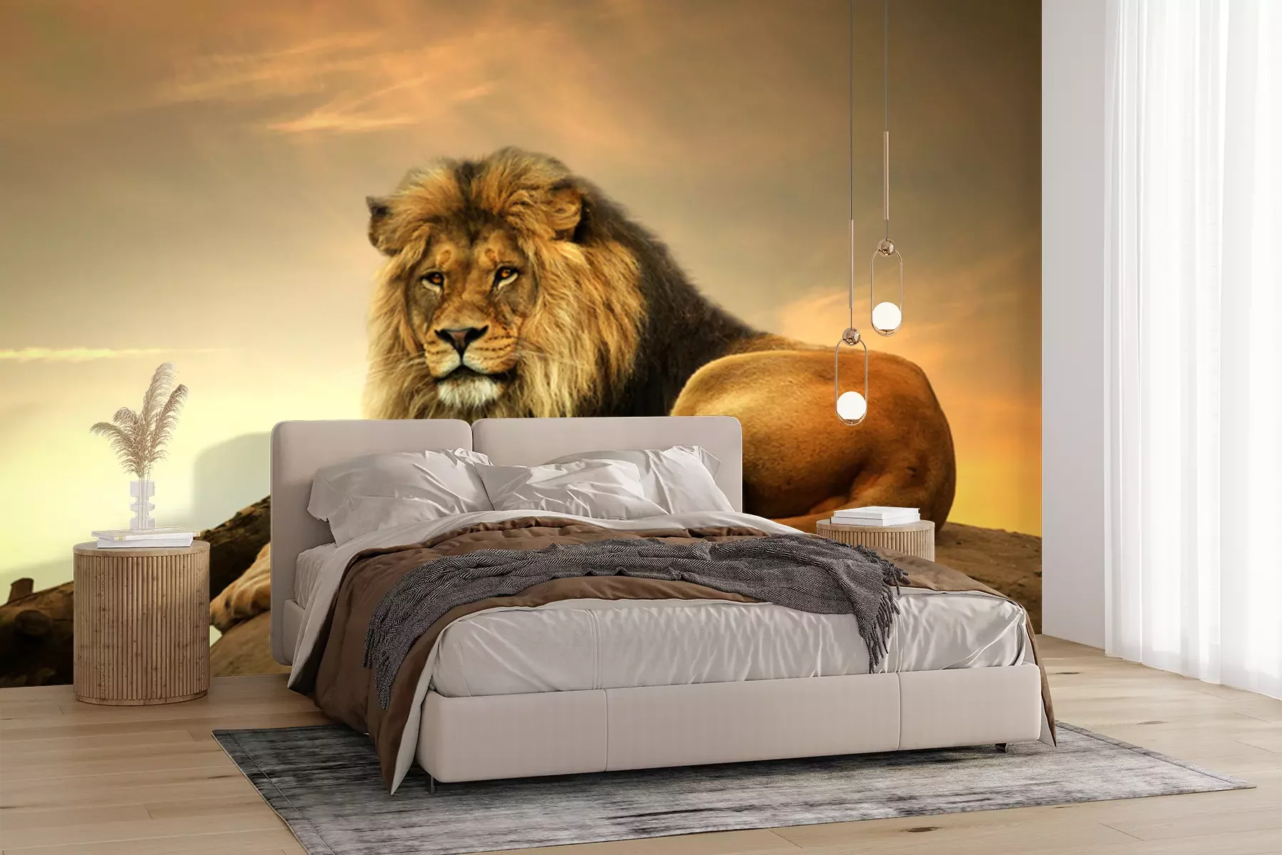 Fotobehang Leeuwenkoning ligt op een rots