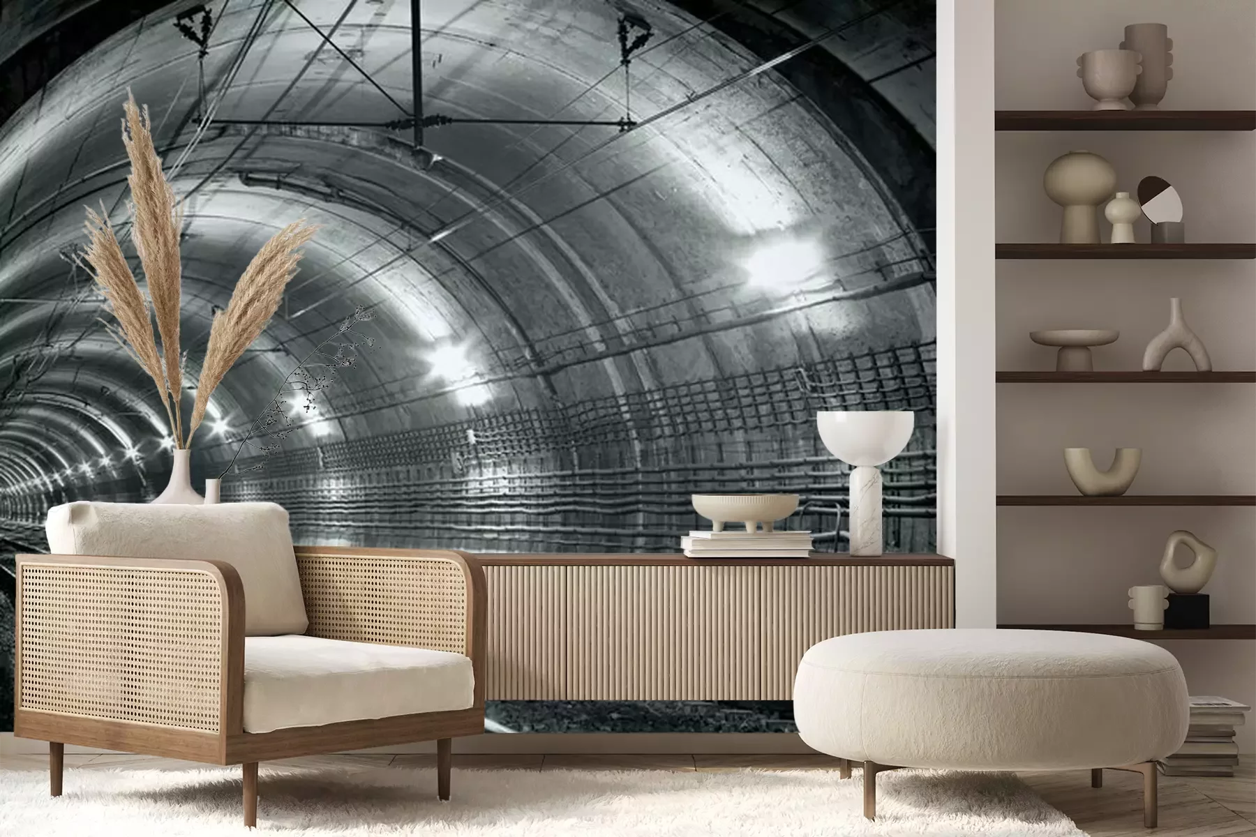 Het materiaal Premium+ is een gestructureerd vinyl op vlies met een gewicht van 255 g/m², dat kleine oneffenheden in de muur effectief camoufleert. De subtiele structuur van fijn zand geeft het oppervlak een exclusieve uitstraling, terwijl de halfmatte afwerking de diepte van de kleuren benadrukt. Het materiaal is dampdoorlatend, waardoor het ook in de keuken en badkamer kan worden gebruikt. De maximale breedte van één baan bedraagt 100 cm – bij grotere afmetingen wordt het fotobehang in meerdere gelijke banen verdeeld. De lijm wordt direct op de muur aangebracht en het behang wordt rand-aan-rand geplakt, wat zorgt voor een esthetisch resultaat zonder zichtbare naden. Het oppervlak kan gemakkelijk worden schoongemaakt door het voorzichtig af te nemen met een vochtige doek.
