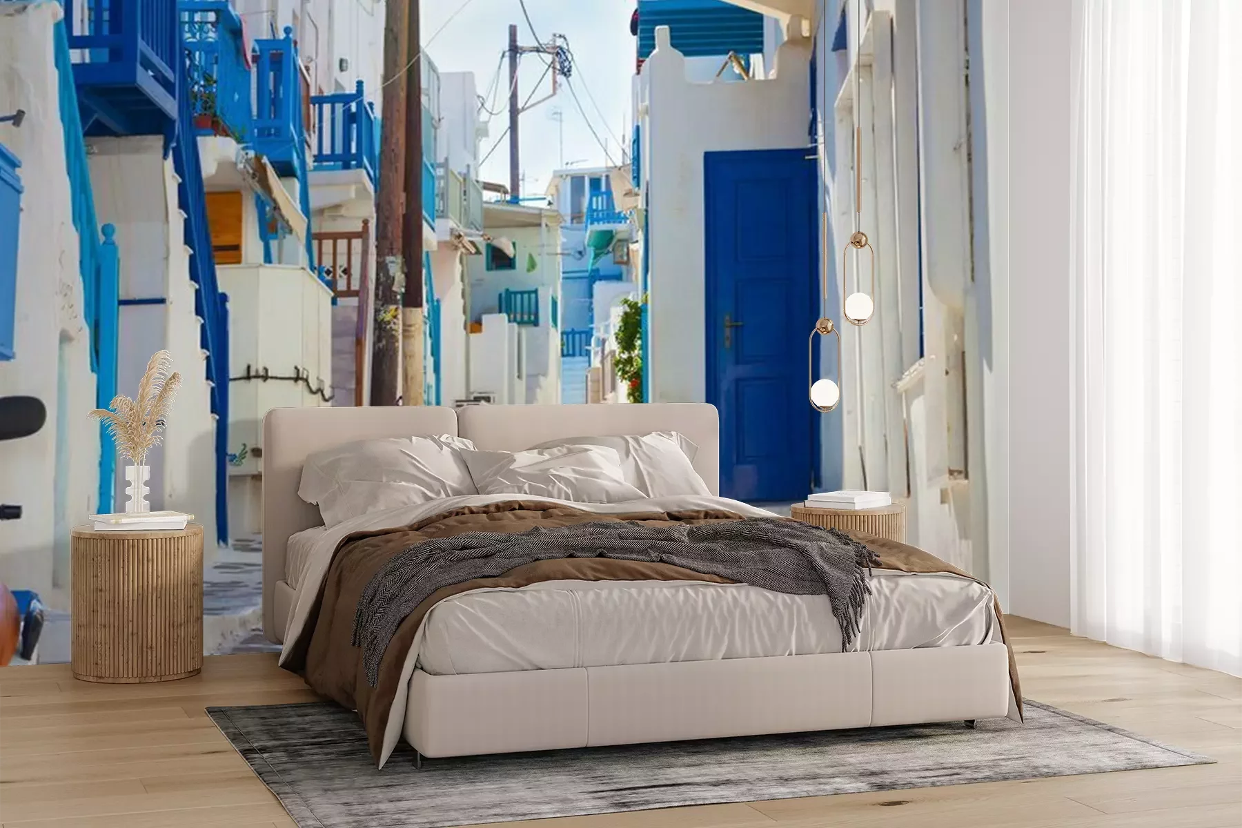Het materiaal Premium+ is een gestructureerd vinyl op vlies met een gewicht van 255 g/m², dat kleine oneffenheden in de muur effectief camoufleert. De subtiele structuur van fijn zand geeft het oppervlak een exclusieve uitstraling, terwijl de halfmatte afwerking de diepte van de kleuren benadrukt. Het materiaal is dampdoorlatend, waardoor het ook in de keuken en badkamer kan worden gebruikt. De maximale breedte van één baan bedraagt 100 cm – bij grotere afmetingen wordt het fotobehang in meerdere gelijke banen verdeeld. De lijm wordt direct op de muur aangebracht en het behang wordt rand-aan-rand geplakt, wat zorgt voor een esthetisch resultaat zonder zichtbare naden. Het oppervlak kan gemakkelijk worden schoongemaakt door het voorzichtig af te nemen met een vochtige doek.