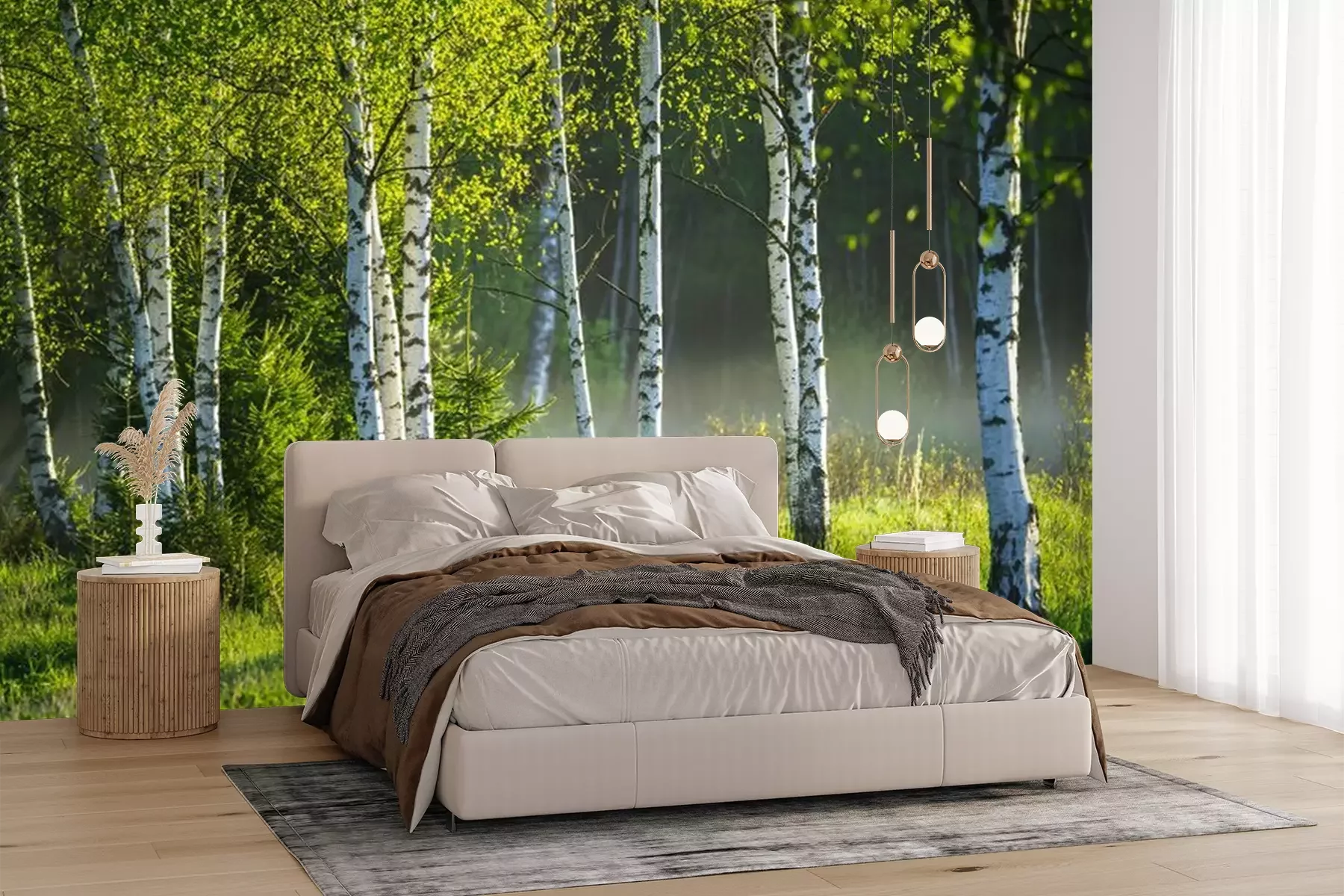 Het materiaal Premium+ is een gestructureerd vinyl op vlies met een gewicht van 255 g/m², dat kleine oneffenheden in de muur effectief camoufleert. De subtiele structuur van fijn zand geeft het oppervlak een exclusieve uitstraling, terwijl de halfmatte afwerking de diepte van de kleuren benadrukt. Het materiaal is dampdoorlatend, waardoor het ook in de keuken en badkamer kan worden gebruikt. De maximale breedte van één baan bedraagt 100 cm – bij grotere afmetingen wordt het fotobehang in meerdere gelijke banen verdeeld. De lijm wordt direct op de muur aangebracht en het behang wordt rand-aan-rand geplakt, wat zorgt voor een esthetisch resultaat zonder zichtbare naden. Het oppervlak kan gemakkelijk worden schoongemaakt door het voorzichtig af te nemen met een vochtige doek.