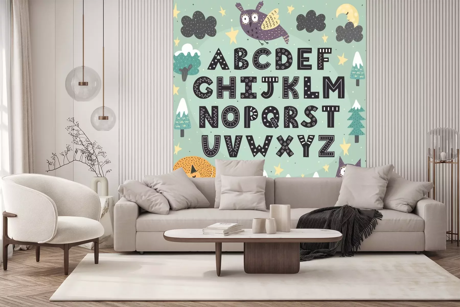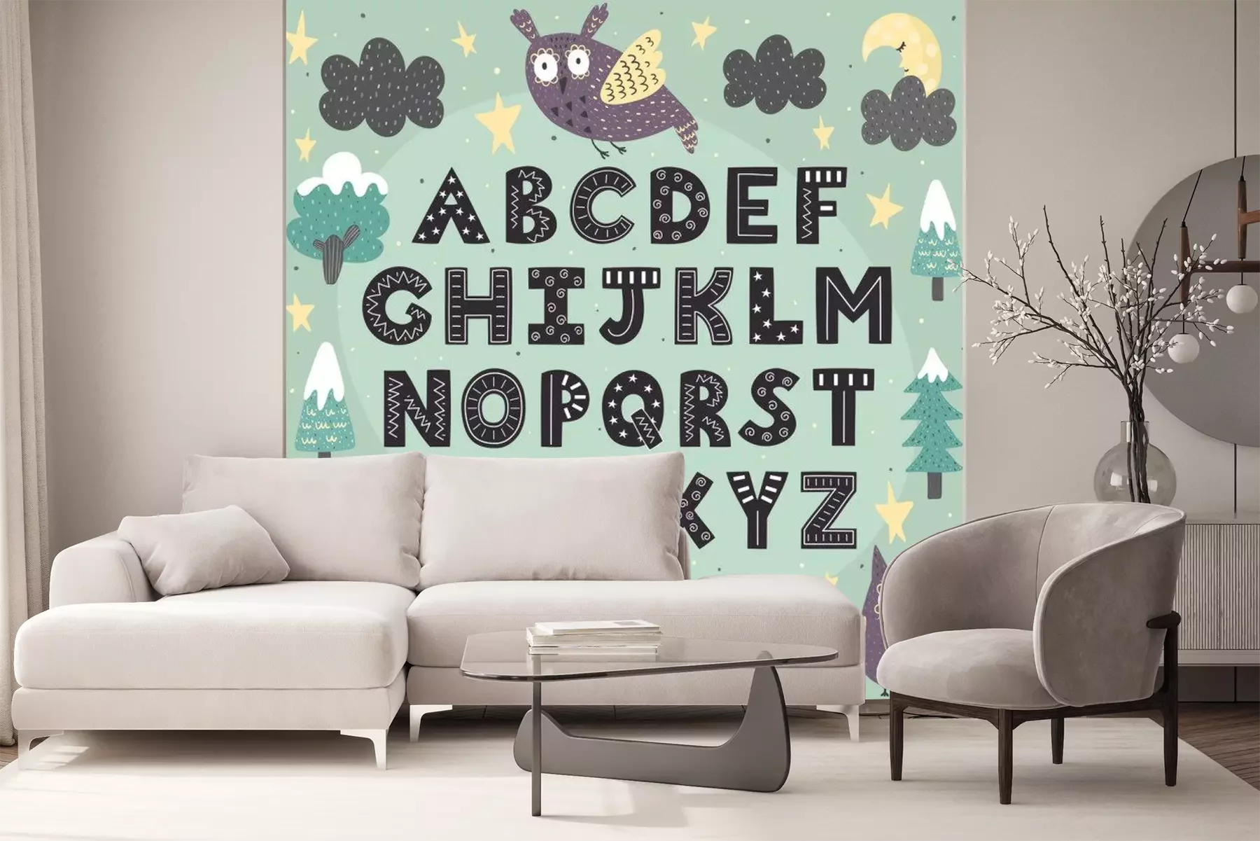 Fotobehang Letters van het alfabet in een fantastisch bos