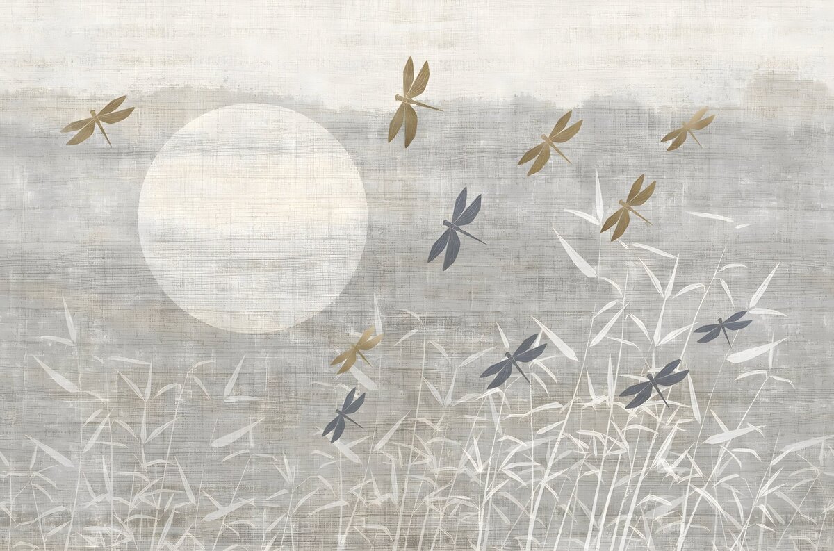 Fotobehang: Libellen tegen de achtergrond van een beige landschap