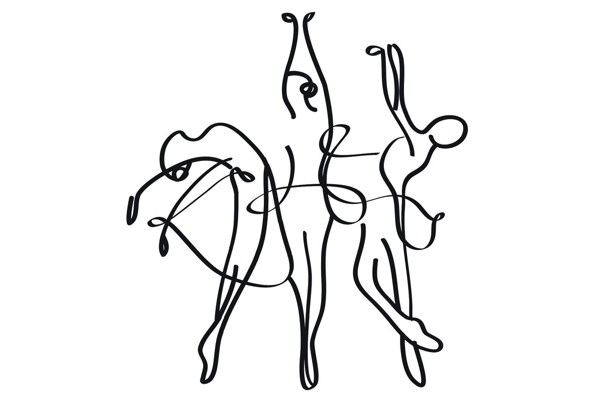 Lijnen die de silhouetten vormen van vrouwen die ballet dansen