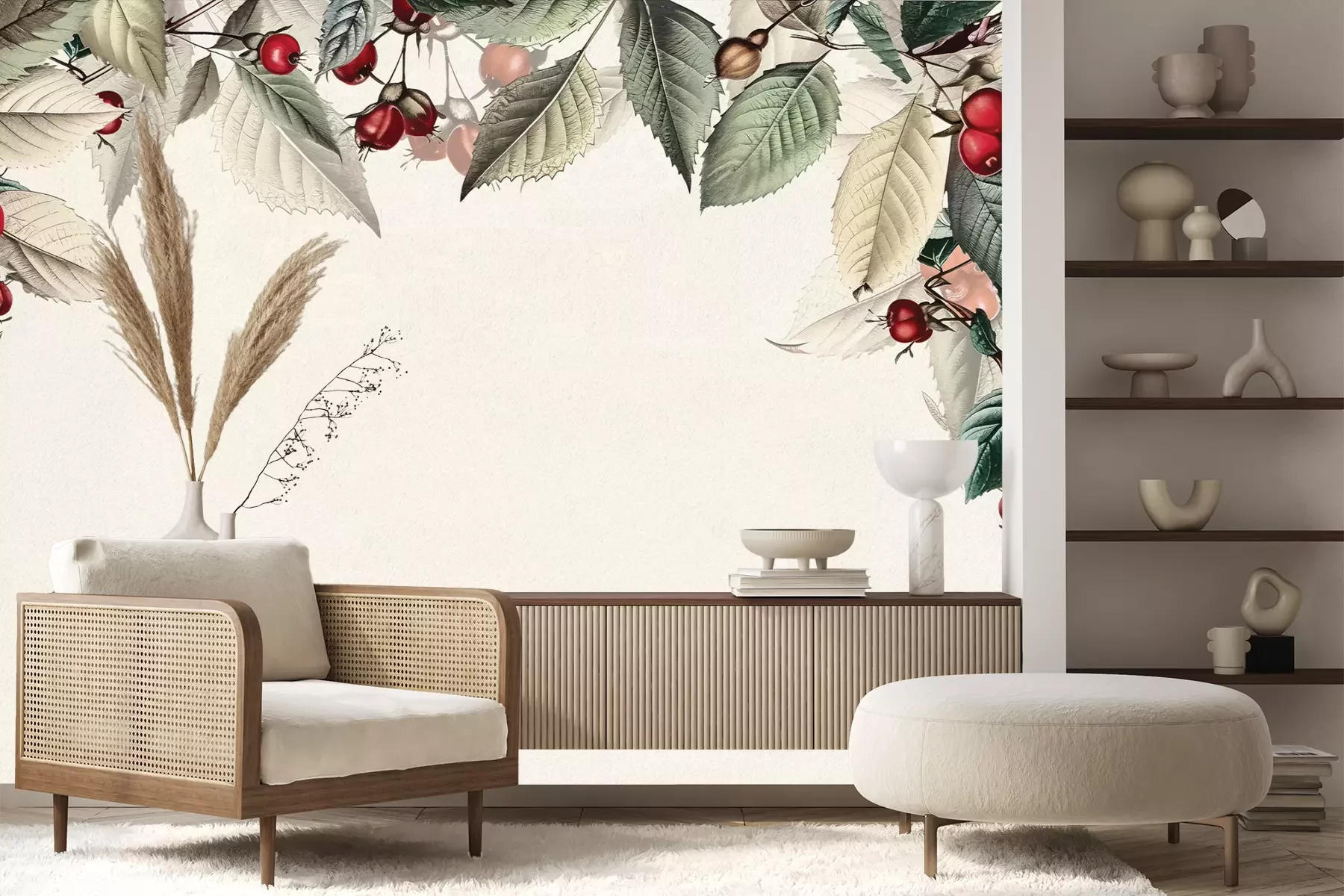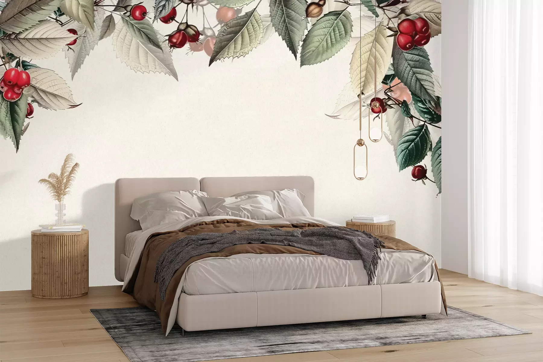 Het materiaal Premium+ is een gestructureerd vinyl op vlies met een gewicht van 255 g/m², dat kleine oneffenheden in de muur effectief camoufleert. De subtiele structuur van fijn zand geeft het oppervlak een exclusieve uitstraling, terwijl de halfmatte afwerking de diepte van de kleuren benadrukt. Het materiaal is dampdoorlatend, waardoor het ook in de keuken en badkamer kan worden gebruikt. De maximale breedte van één baan bedraagt 100 cm – bij grotere afmetingen wordt het fotobehang in meerdere gelijke banen verdeeld. De lijm wordt direct op de muur aangebracht en het behang wordt rand-aan-rand geplakt, wat zorgt voor een esthetisch resultaat zonder zichtbare naden. Het oppervlak kan gemakkelijk worden schoongemaakt door het voorzichtig af te nemen met een vochtige doek.