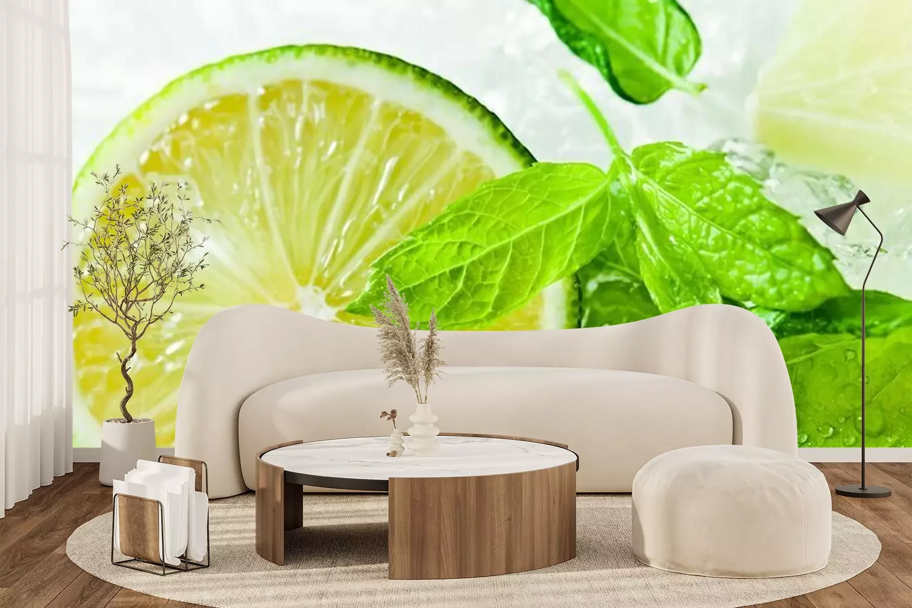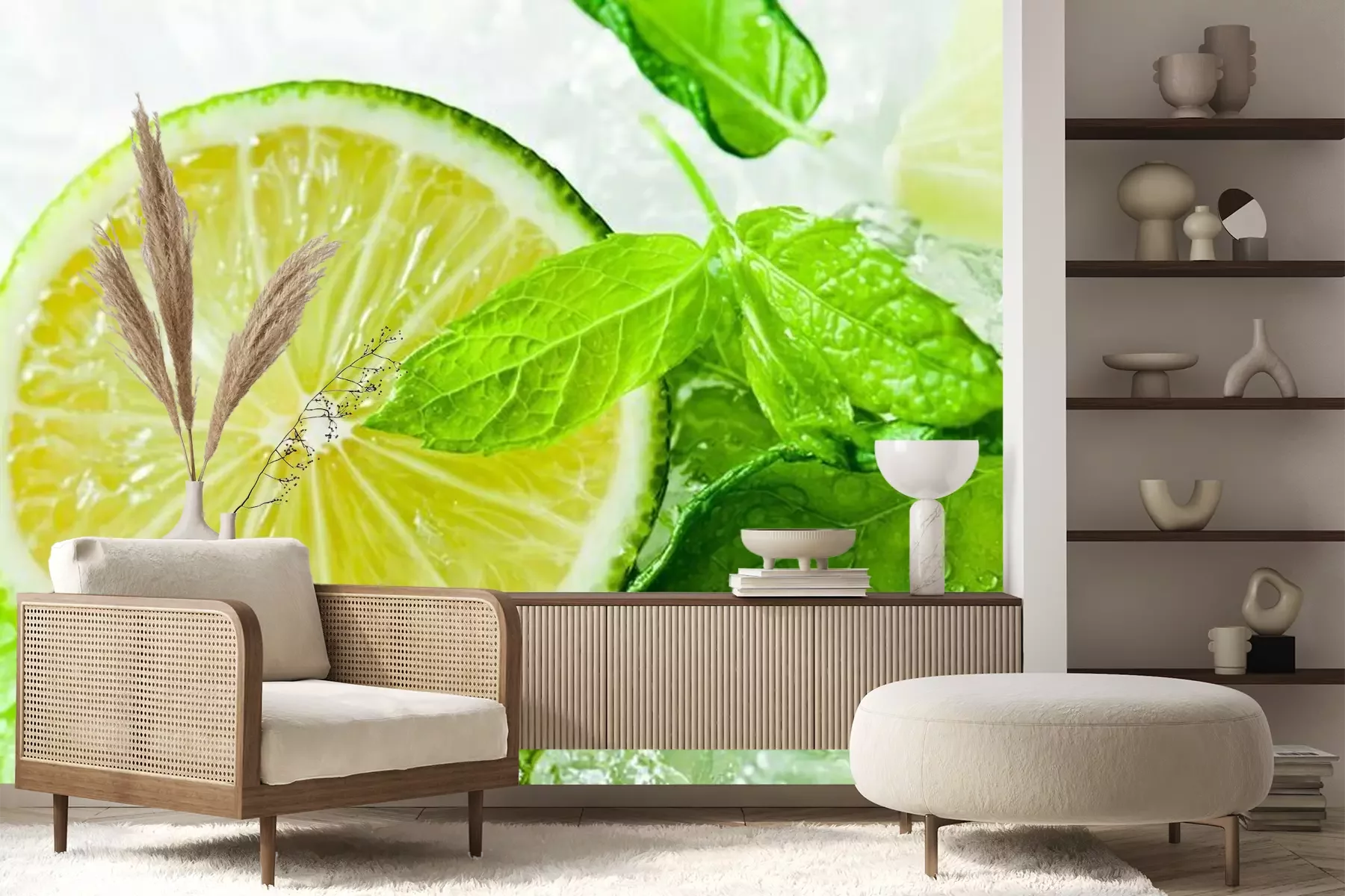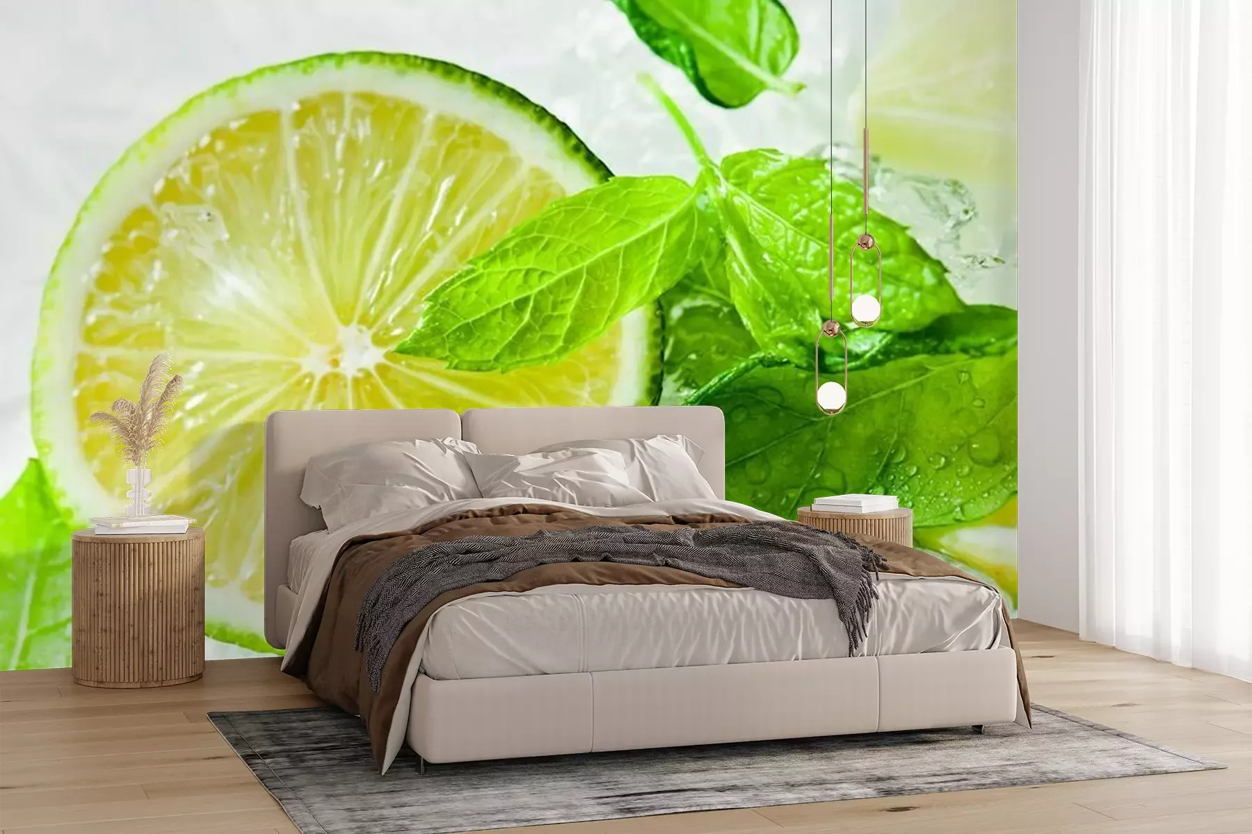 Het materiaal Premium+ is een gestructureerd vinyl op vlies met een gewicht van 255 g/m², dat kleine oneffenheden in de muur effectief camoufleert. De subtiele structuur van fijn zand geeft het oppervlak een exclusieve uitstraling, terwijl de halfmatte afwerking de diepte van de kleuren benadrukt. Het materiaal is dampdoorlatend, waardoor het ook in de keuken en badkamer kan worden gebruikt. De maximale breedte van één baan bedraagt 100 cm – bij grotere afmetingen wordt het fotobehang in meerdere gelijke banen verdeeld. De lijm wordt direct op de muur aangebracht en het behang wordt rand-aan-rand geplakt, wat zorgt voor een esthetisch resultaat zonder zichtbare naden. Het oppervlak kan gemakkelijk worden schoongemaakt door het voorzichtig af te nemen met een vochtige doek.