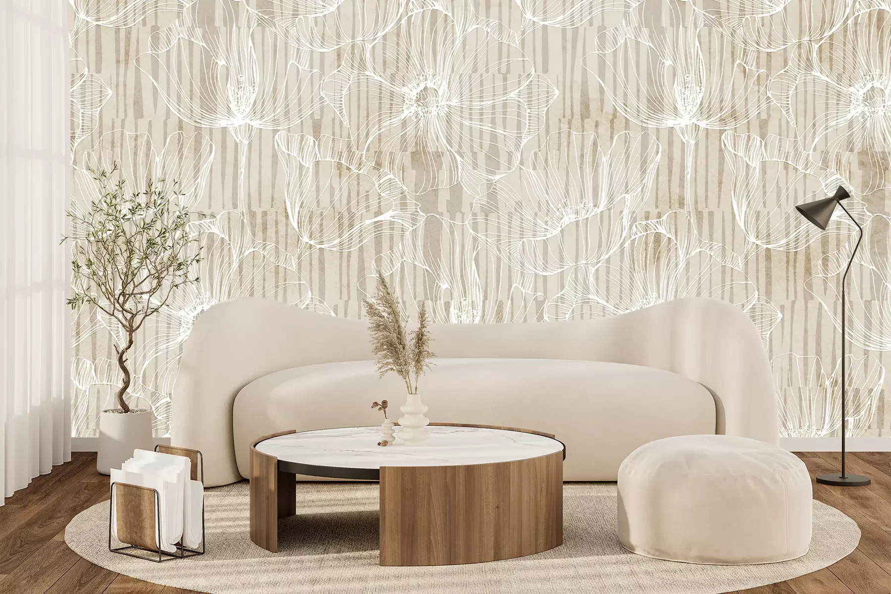 Het materiaal Standard is een hoogwaardig latexmateriaal met een glad, mat oppervlak. Dankzij de HP Latex-printtechnologie zijn de kleuren intens, duurzaam en UV-bestendig, waardoor het patroon jarenlang een onberispelijke uitstraling behoudt. Vervuilde oppervlakken kunnen voorzichtig worden afgeveegd met een droge doek. De maximale breedte van één baan bedraagt 95 cm of 105 cm – afhankelijk van de bestelde fotobehangbreedte. Bij grotere afmetingen wordt het patroon verdeeld over meerdere gelijkmatige banen. Het fotobehang wordt rand-aan-randaangebracht, wat vrijwel onzichtbare naden mogelijk maakt.