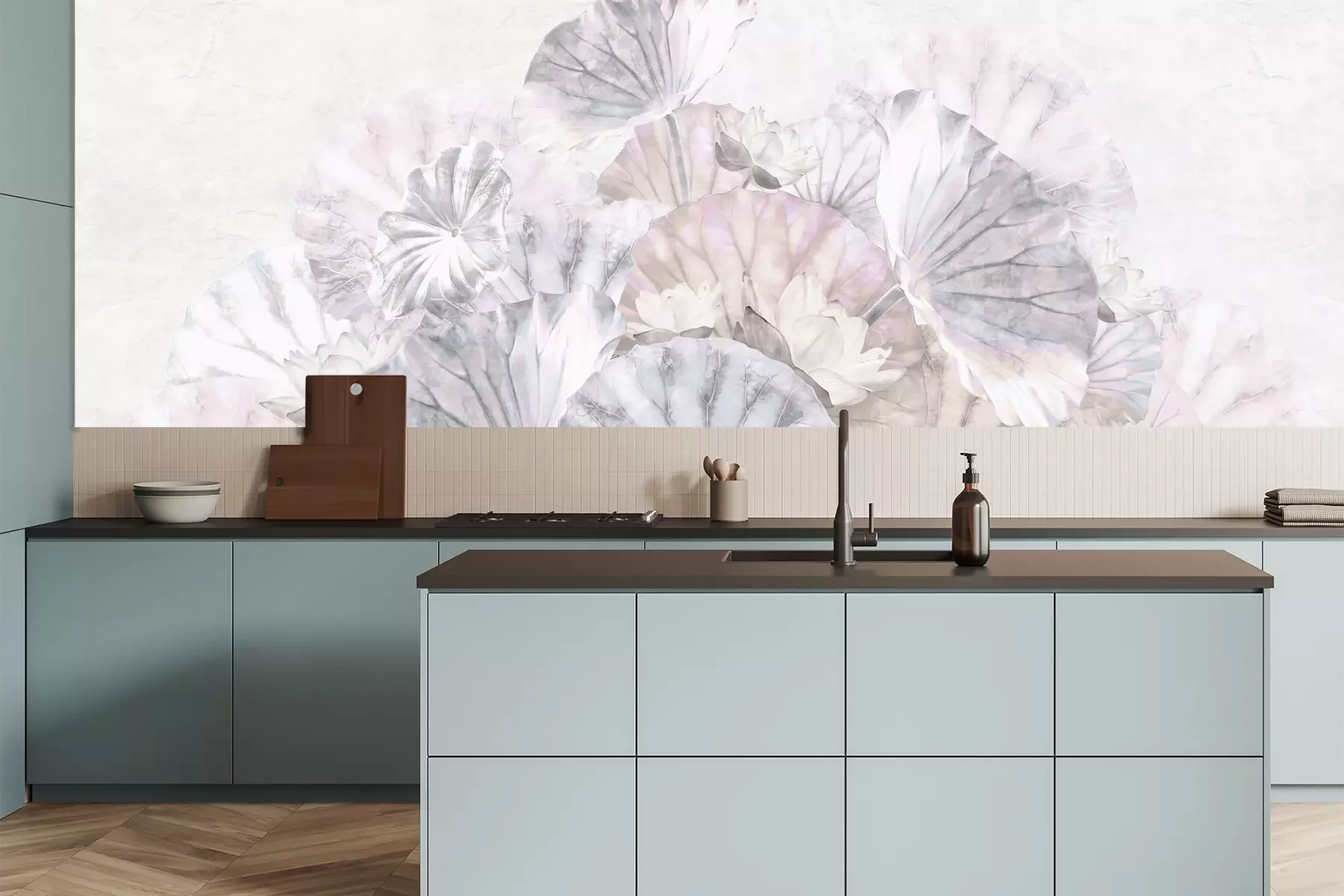 Het materiaal Premium is een glad vinyl op vlies, dat bestand is tegen uitrekken en vervorming. Het is dampdoorlatend – de muren kunnen vrij ademen – waardoor het geschikt is voor gebruik in de keuken en badkamer. Bij vervuiling kan het materiaal worden afgenomen met een vochtige doek. De maximale breedte van één baan bedraagt 95 of 105 cm, afhankelijk van de beschikbaarheid. Montage vindt plaats met de rand-aan-rand methode, wat een esthetisch resultaat zonder zichtbare naden oplevert. Omdat de lijm rechtstreeks op de muur wordt aangebracht, verloopt de installatie van het fotobehang snel en eenvoudig.