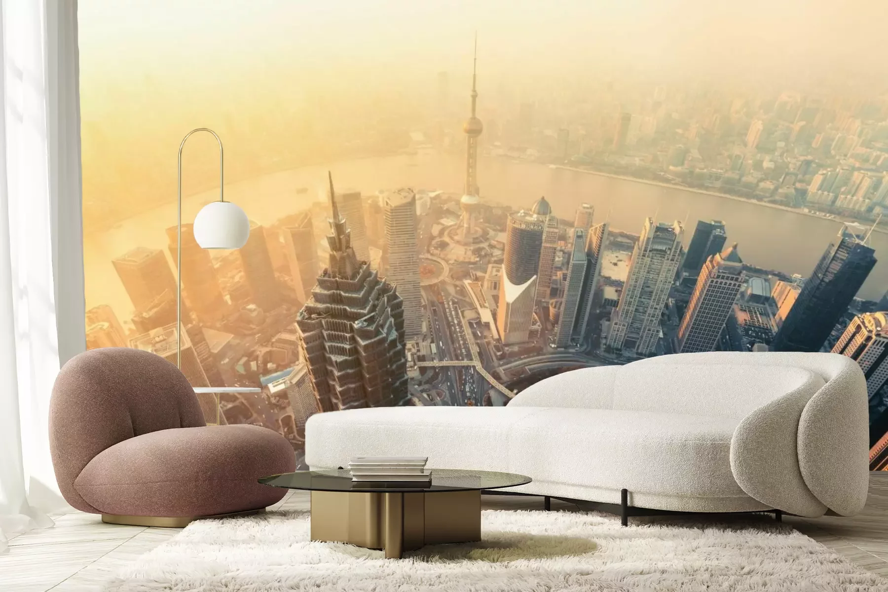 Luchtfoto van de stadFotobehang