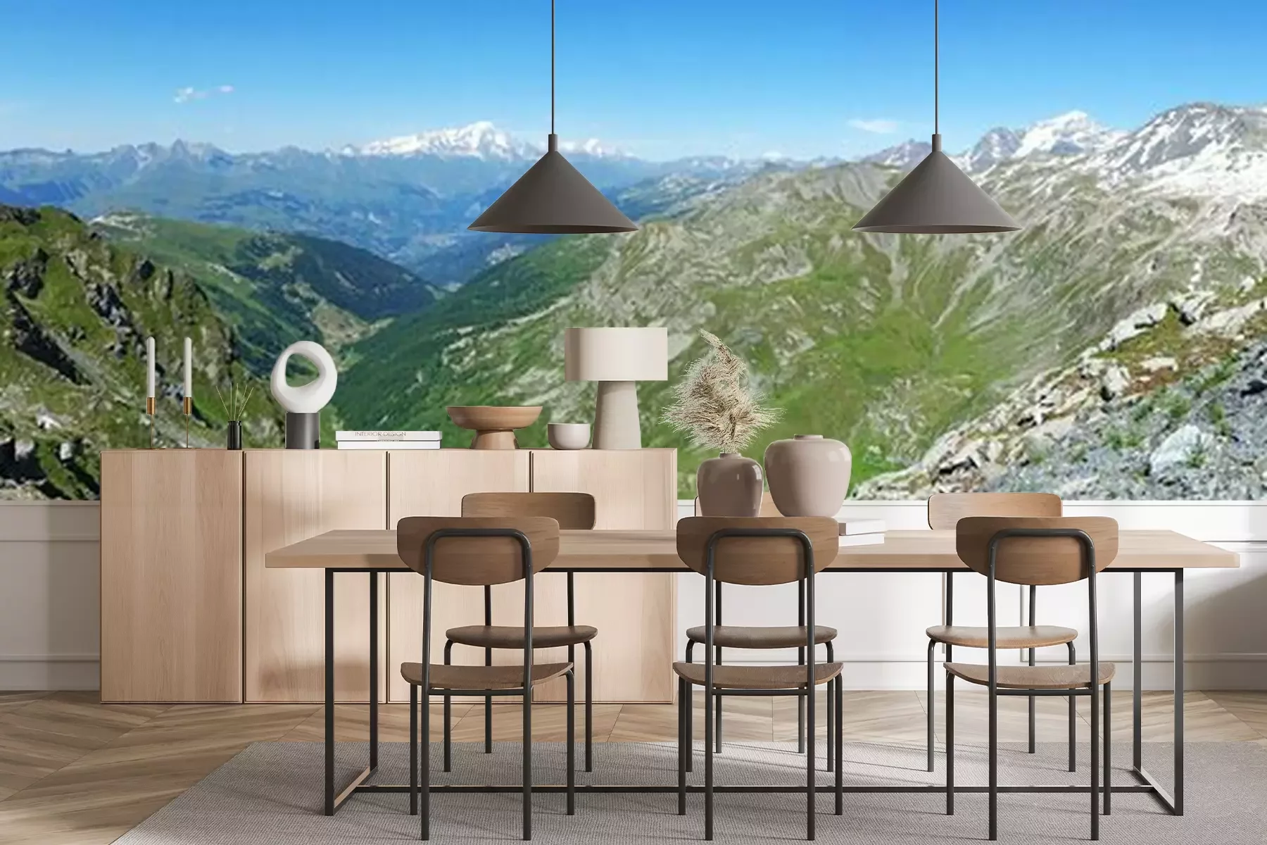 Het materiaal Premium+ is een gestructureerd vinyl op vlies met een gewicht van 255 g/m², dat kleine oneffenheden in de muur effectief camoufleert. De subtiele structuur van fijn zand geeft het oppervlak een exclusieve uitstraling, terwijl de halfmatte afwerking de diepte van de kleuren benadrukt. Het materiaal is dampdoorlatend, waardoor het ook in de keuken en badkamer kan worden gebruikt. De maximale breedte van één baan bedraagt 100 cm – bij grotere afmetingen wordt het fotobehang in meerdere gelijke banen verdeeld. De lijm wordt direct op de muur aangebracht en het behang wordt rand-aan-rand geplakt, wat zorgt voor een esthetisch resultaat zonder zichtbare naden. Het oppervlak kan gemakkelijk worden schoongemaakt door het voorzichtig af te nemen met een vochtige doek.
