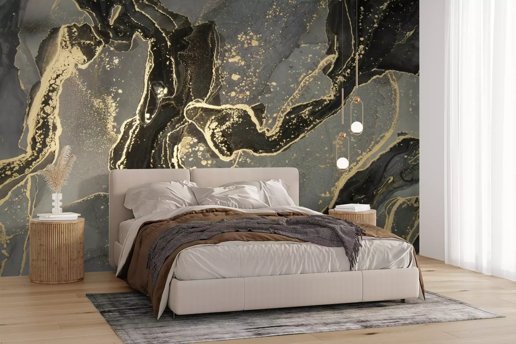 Het materiaal Premium+ is een gestructureerd vinyl op vlies met een gewicht van 255 g/m², dat kleine oneffenheden in de muur effectief camoufleert. De subtiele structuur van fijn zand geeft het oppervlak een exclusieve uitstraling, terwijl de halfmatte afwerking de diepte van de kleuren benadrukt. Het materiaal is dampdoorlatend, waardoor het ook in de keuken en badkamer kan worden gebruikt. De maximale breedte van één baan bedraagt 100 cm – bij grotere afmetingen wordt het fotobehang in meerdere gelijke banen verdeeld. De lijm wordt direct op de muur aangebracht en het behang wordt rand-aan-rand geplakt, wat zorgt voor een esthetisch resultaat zonder zichtbare naden. Het oppervlak kan gemakkelijk worden schoongemaakt door het voorzichtig af te nemen met een vochtige doek.