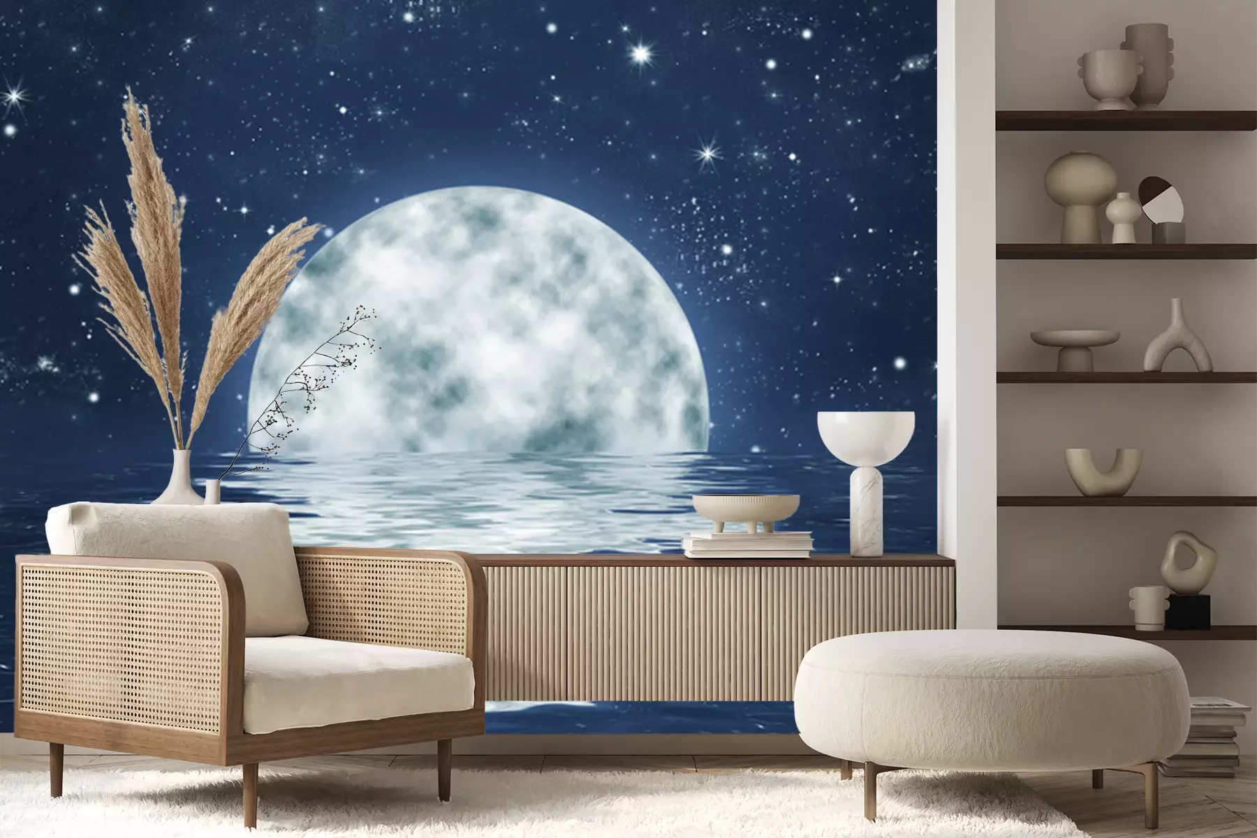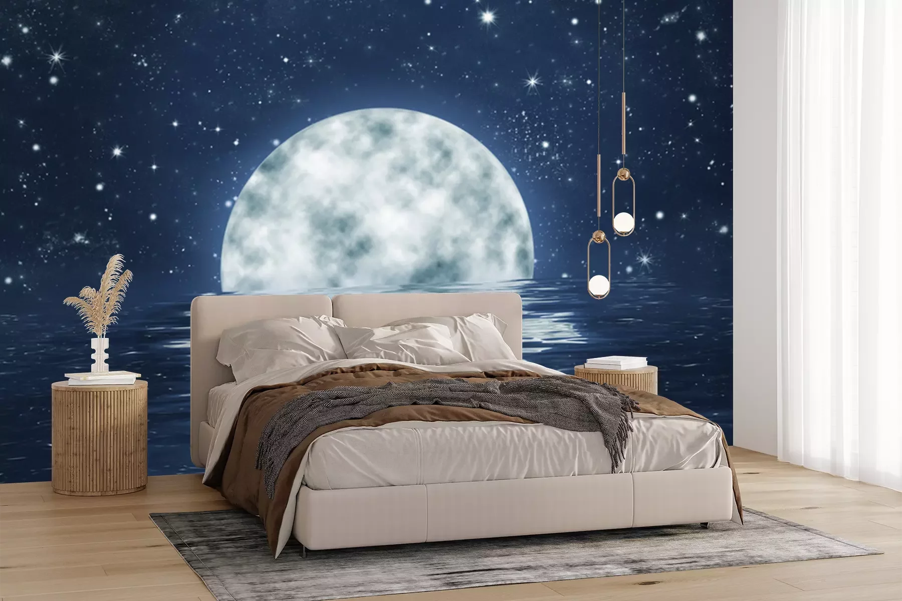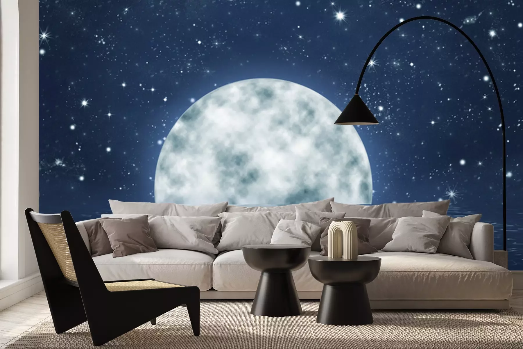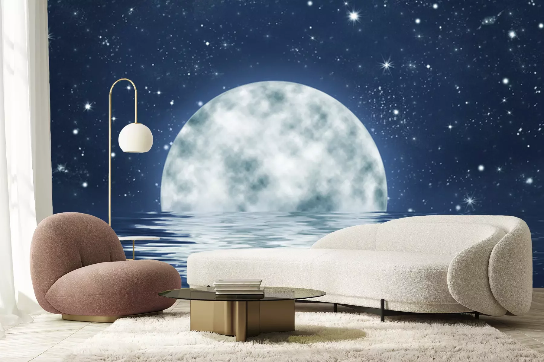 Fotobehang Maan die ondergaat achter de horizon bij een sterrenhemel