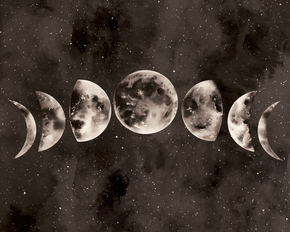 Maanfasenpatroon in aquarelstijl