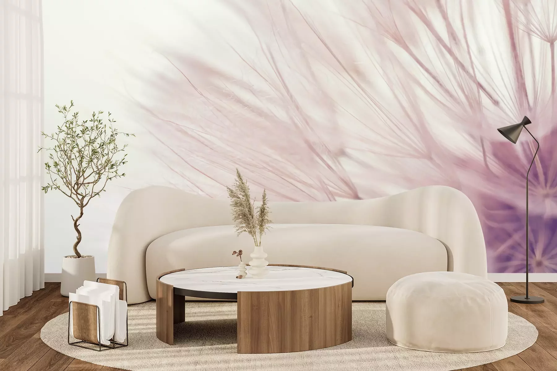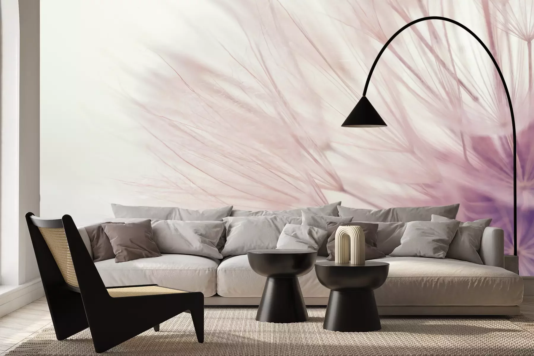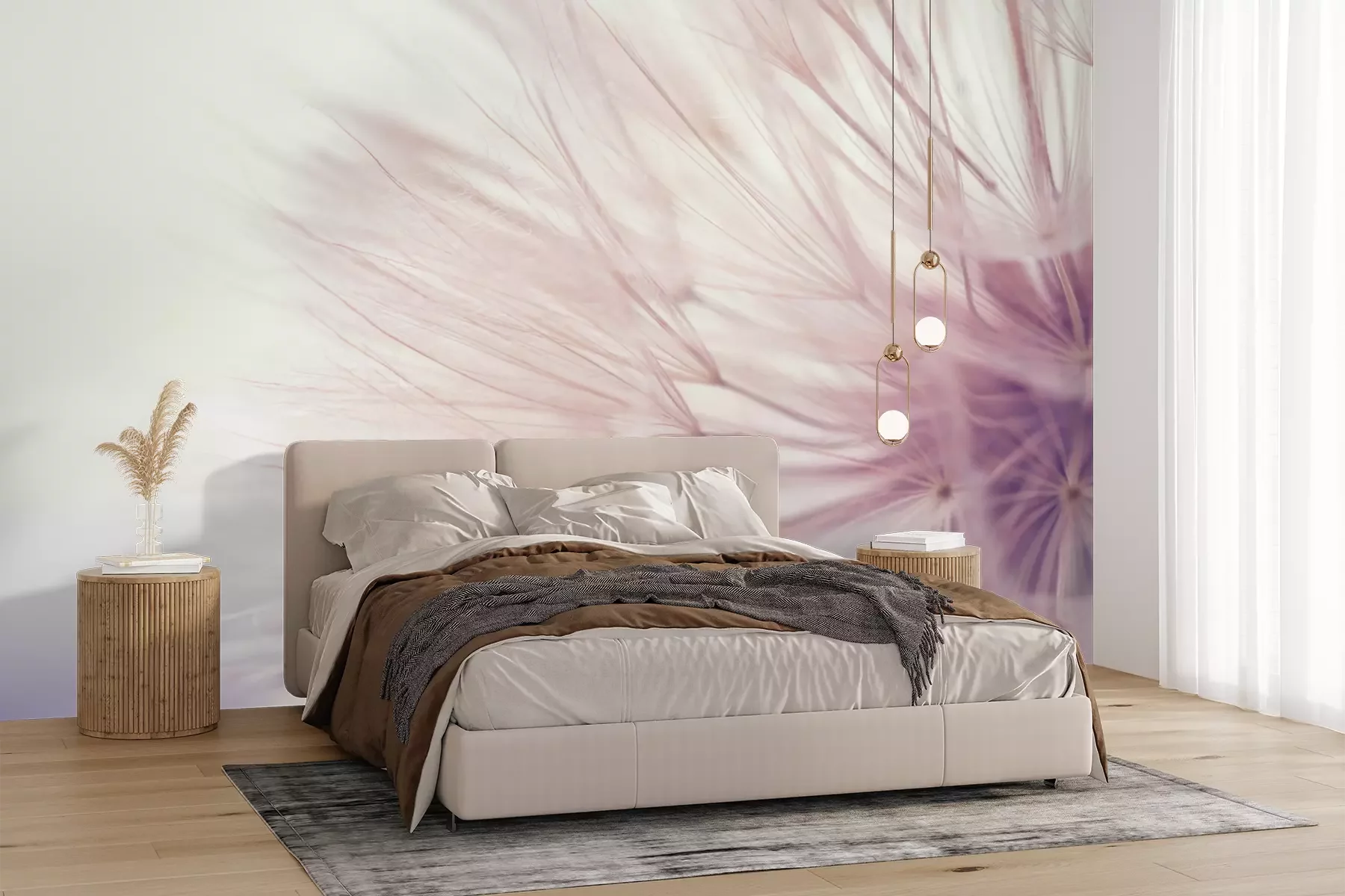 Het materiaal Premium+ is een gestructureerd vinyl op vlies met een gewicht van 255 g/m², dat kleine oneffenheden in de muur effectief camoufleert. De subtiele structuur van fijn zand geeft het oppervlak een exclusieve uitstraling, terwijl de halfmatte afwerking de diepte van de kleuren benadrukt. Het materiaal is dampdoorlatend, waardoor het ook in de keuken en badkamer kan worden gebruikt. De maximale breedte van één baan bedraagt 100 cm – bij grotere afmetingen wordt het fotobehang in meerdere gelijke banen verdeeld. De lijm wordt direct op de muur aangebracht en het behang wordt rand-aan-rand geplakt, wat zorgt voor een esthetisch resultaat zonder zichtbare naden. Het oppervlak kan gemakkelijk worden schoongemaakt door het voorzichtig af te nemen met een vochtige doek.