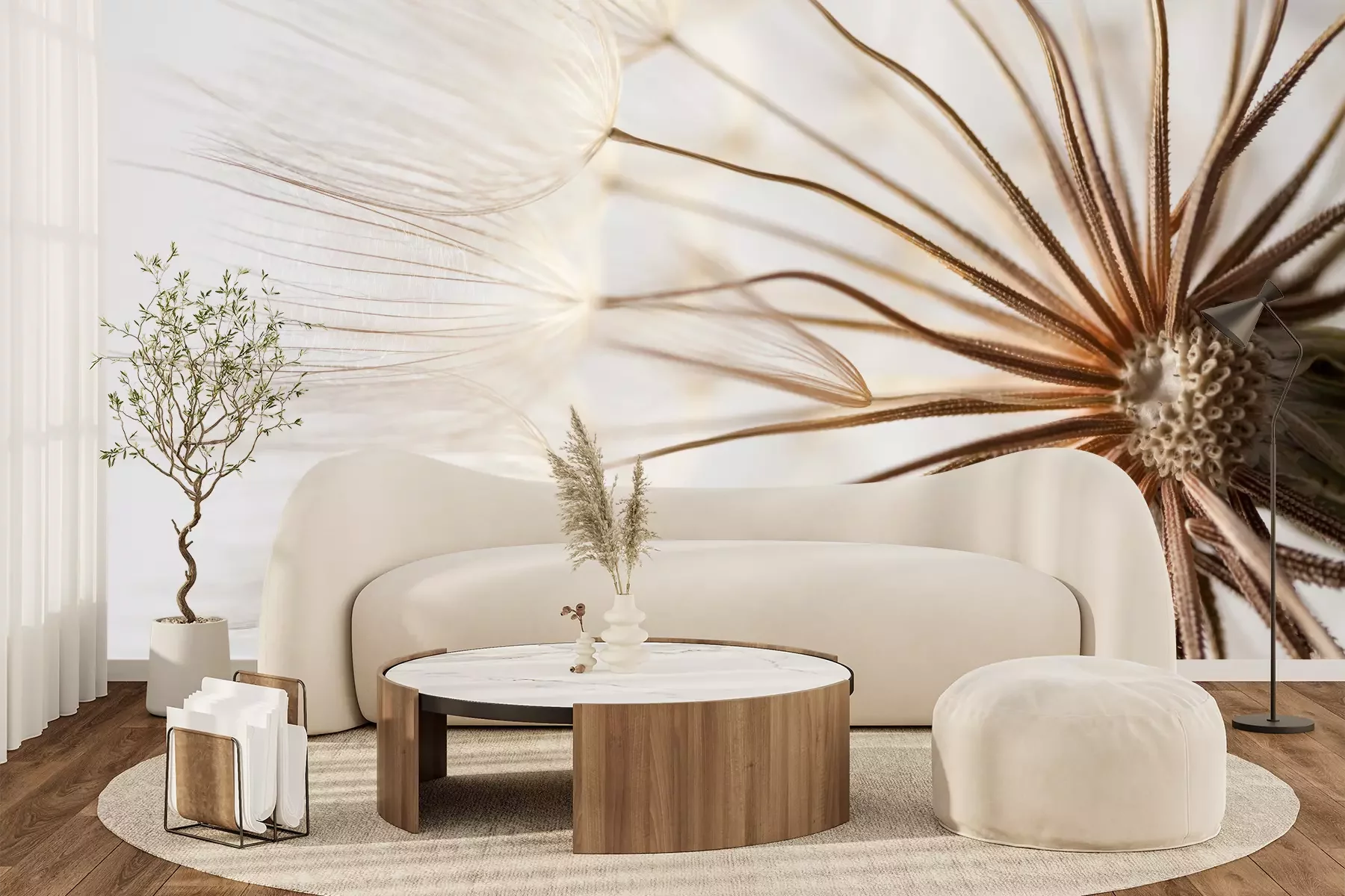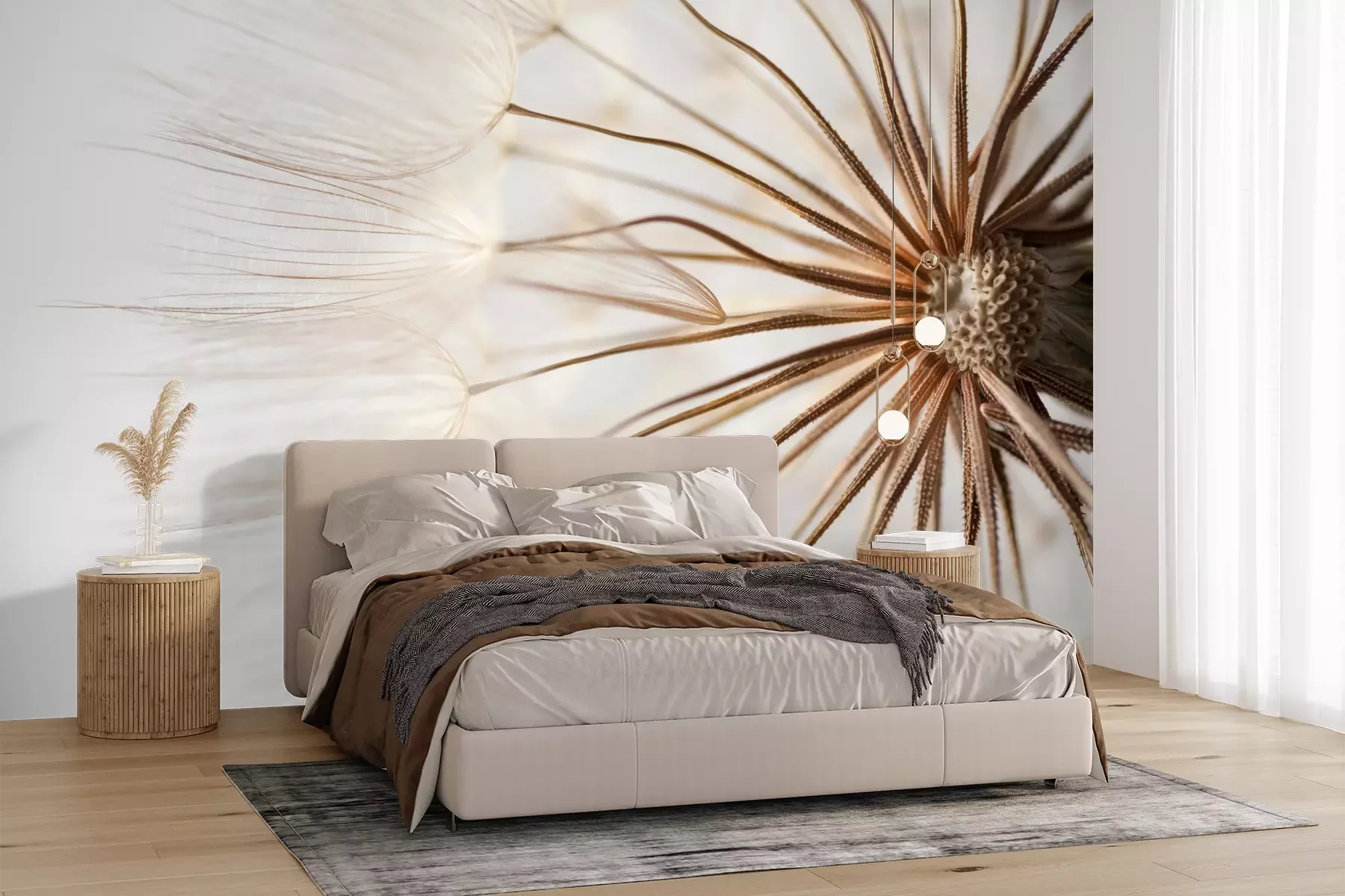 Het materiaal Premium+ is een gestructureerd vinyl op vlies met een gewicht van 255 g/m², dat kleine oneffenheden in de muur effectief camoufleert. De subtiele structuur van fijn zand geeft het oppervlak een exclusieve uitstraling, terwijl de halfmatte afwerking de diepte van de kleuren benadrukt. Het materiaal is dampdoorlatend, waardoor het ook in de keuken en badkamer kan worden gebruikt. De maximale breedte van één baan bedraagt 100 cm – bij grotere afmetingen wordt het fotobehang in meerdere gelijke banen verdeeld. De lijm wordt direct op de muur aangebracht en het behang wordt rand-aan-rand geplakt, wat zorgt voor een esthetisch resultaat zonder zichtbare naden. Het oppervlak kan gemakkelijk worden schoongemaakt door het voorzichtig af te nemen met een vochtige doek.