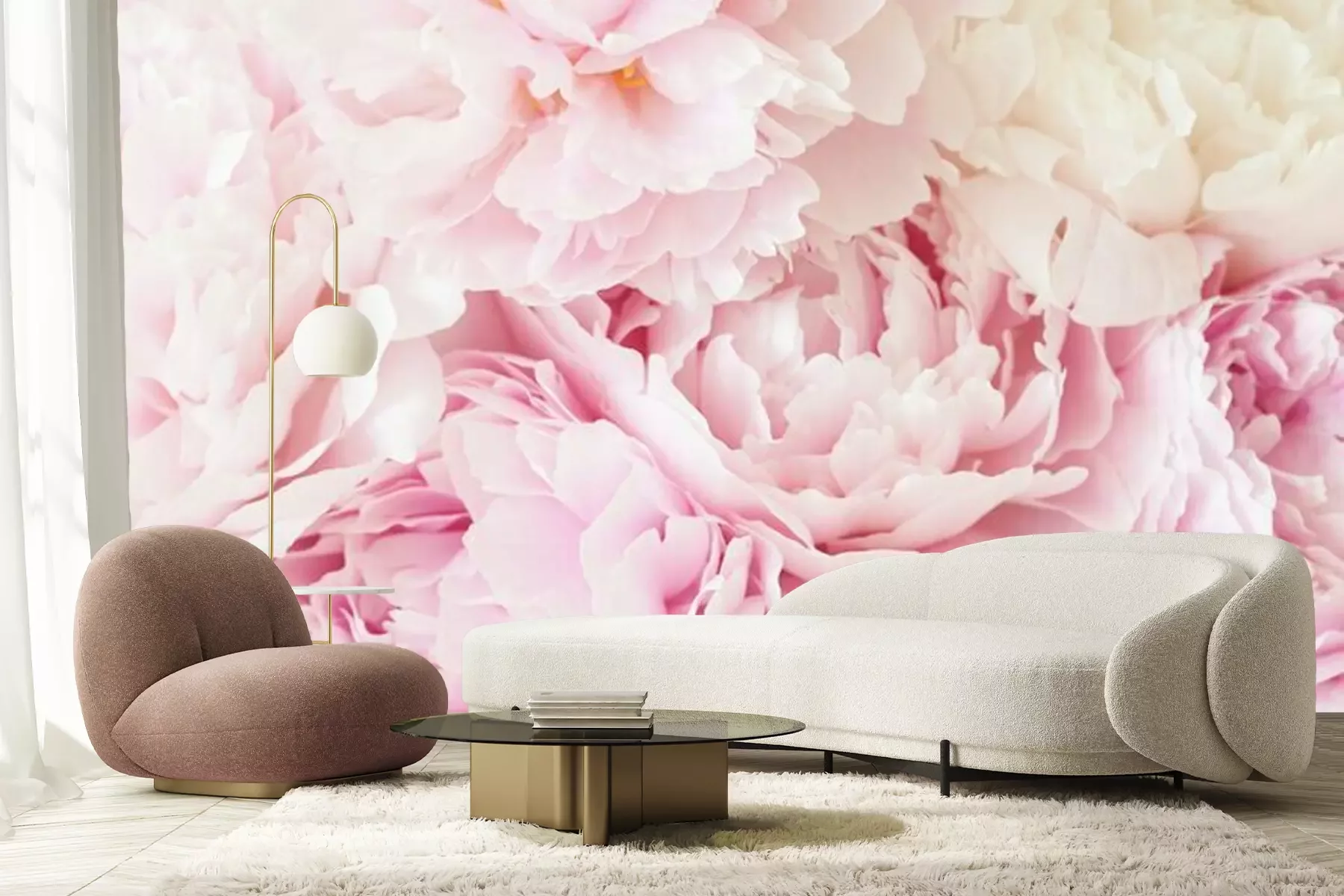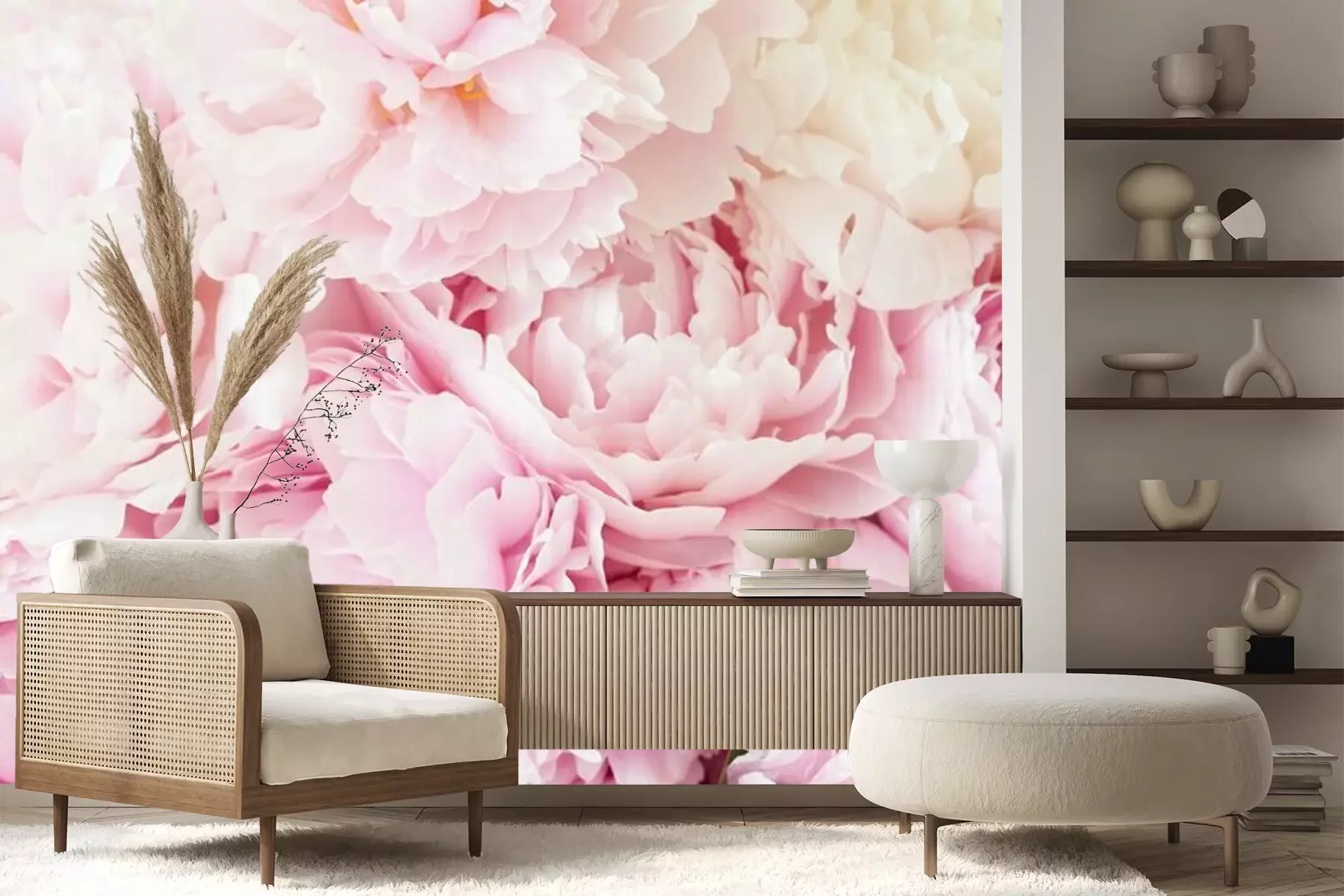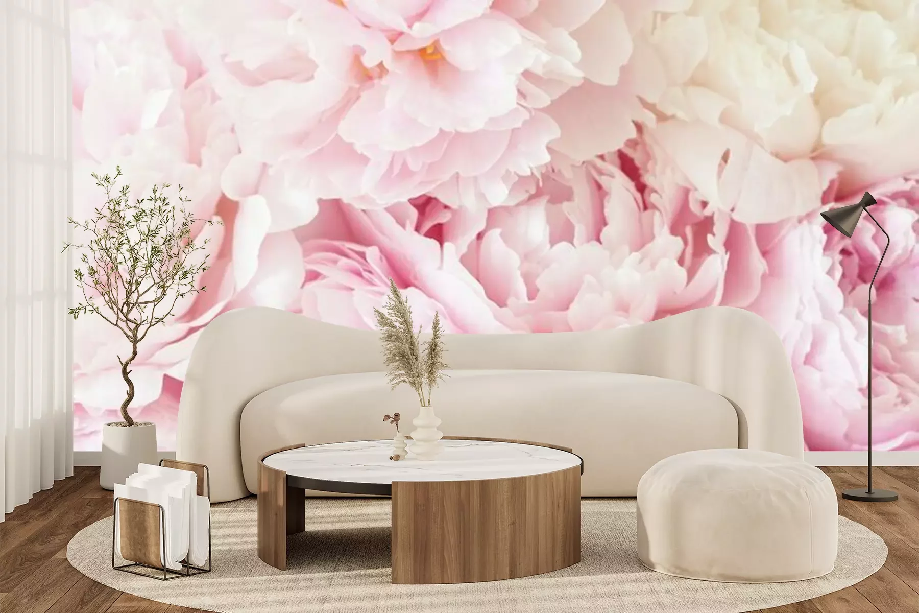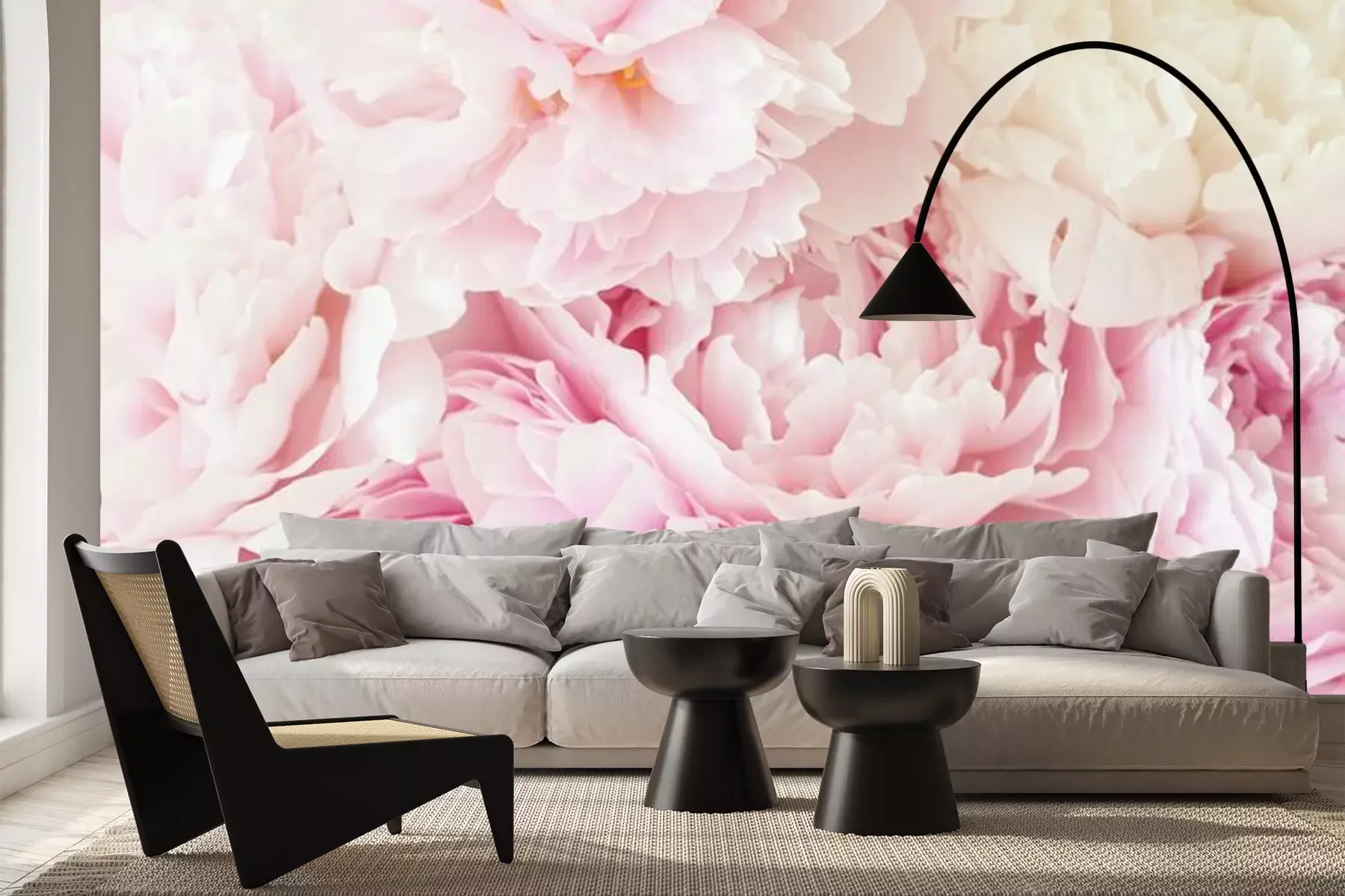 Fotobehang Macrofotografie van roze pioenroosblaadjes