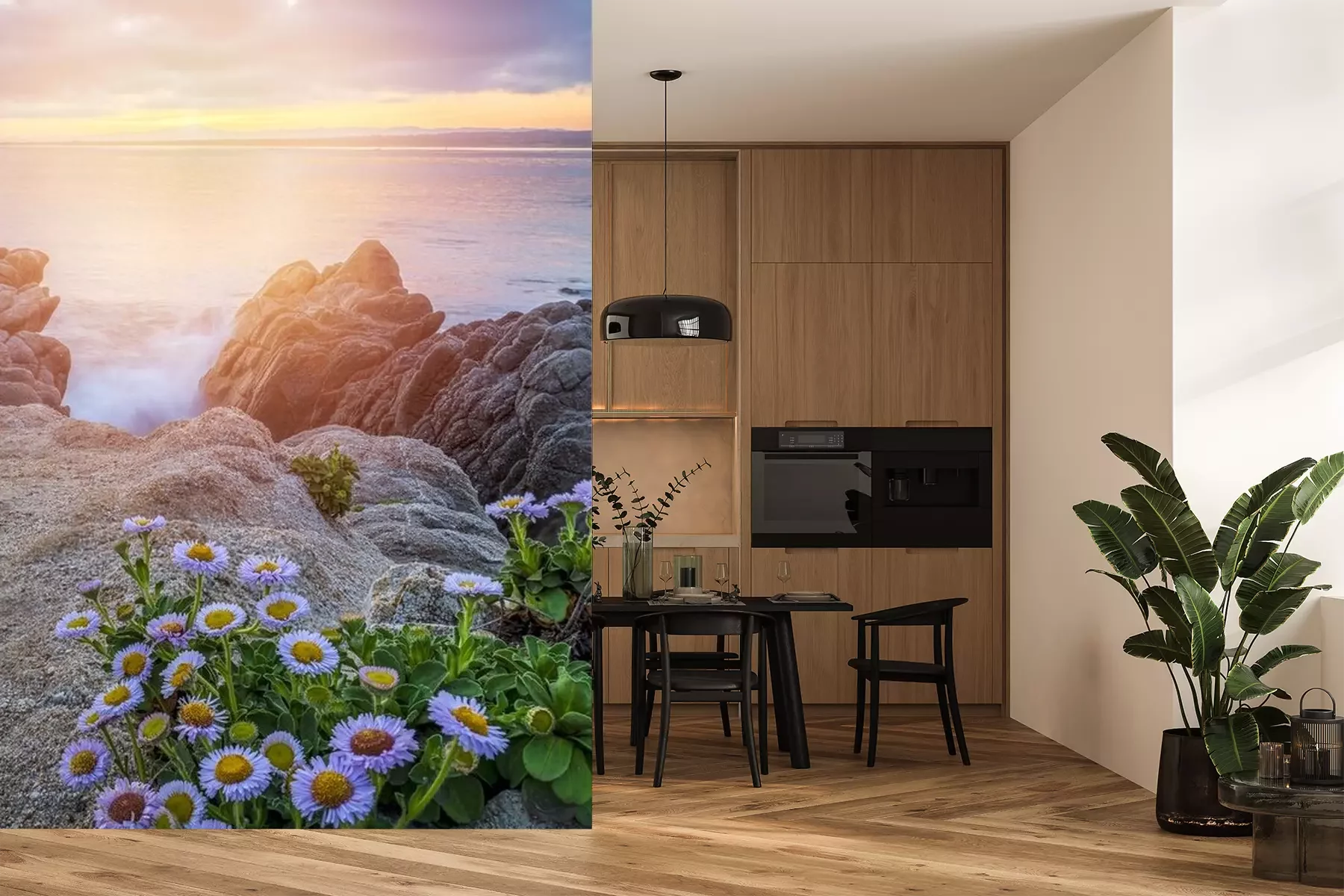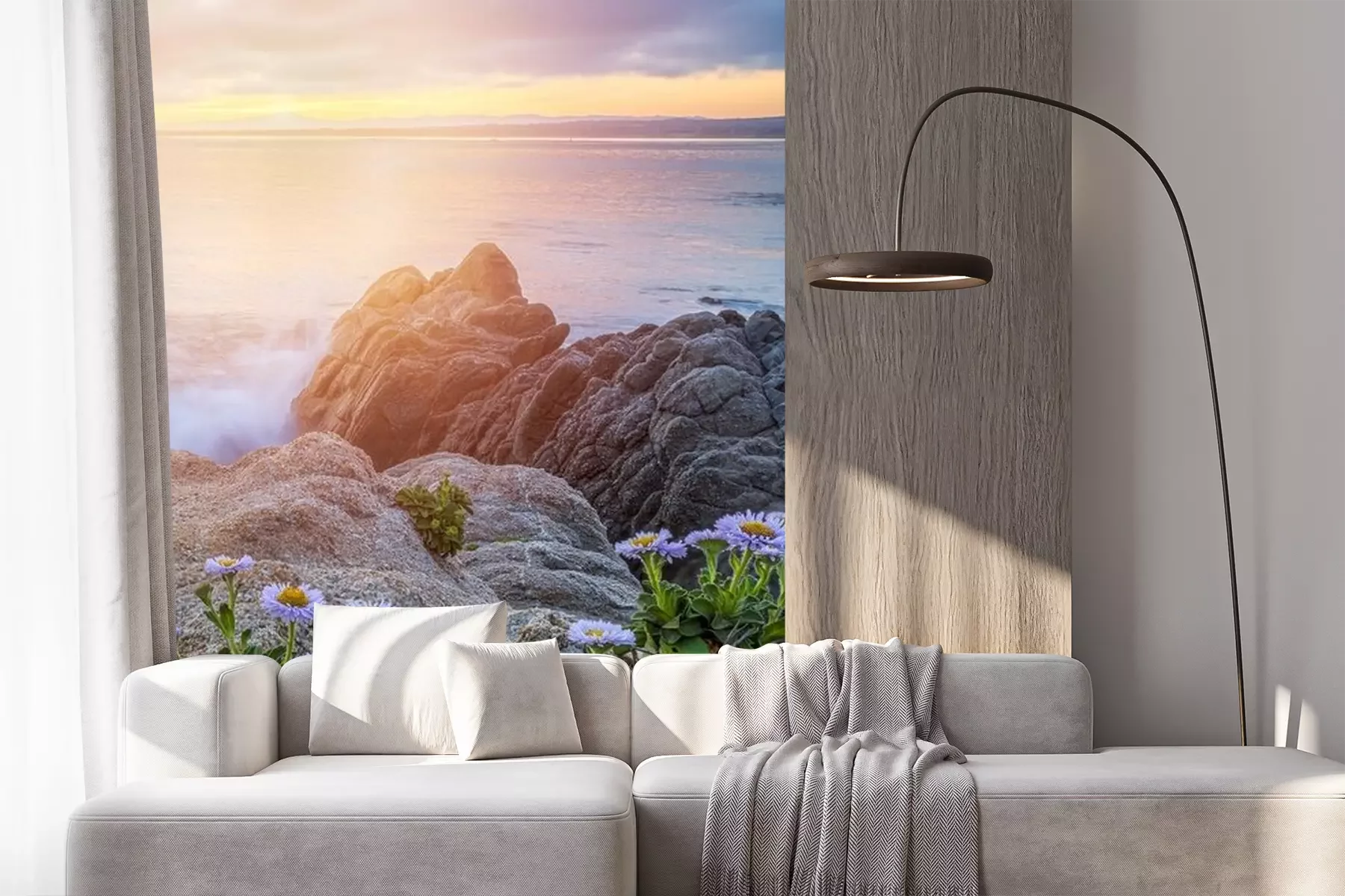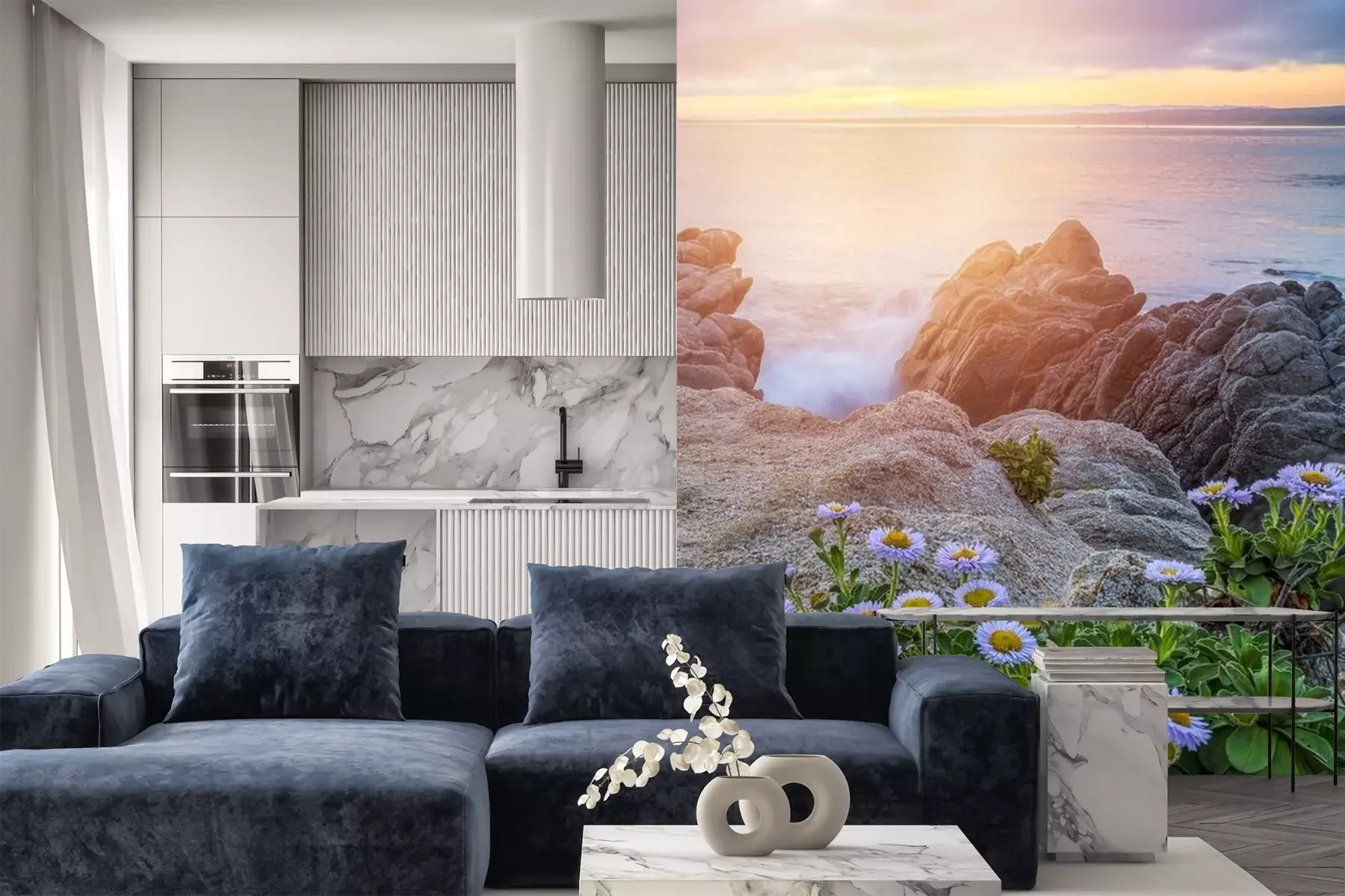 Fotobehang Madeliefjes en zeegezicht