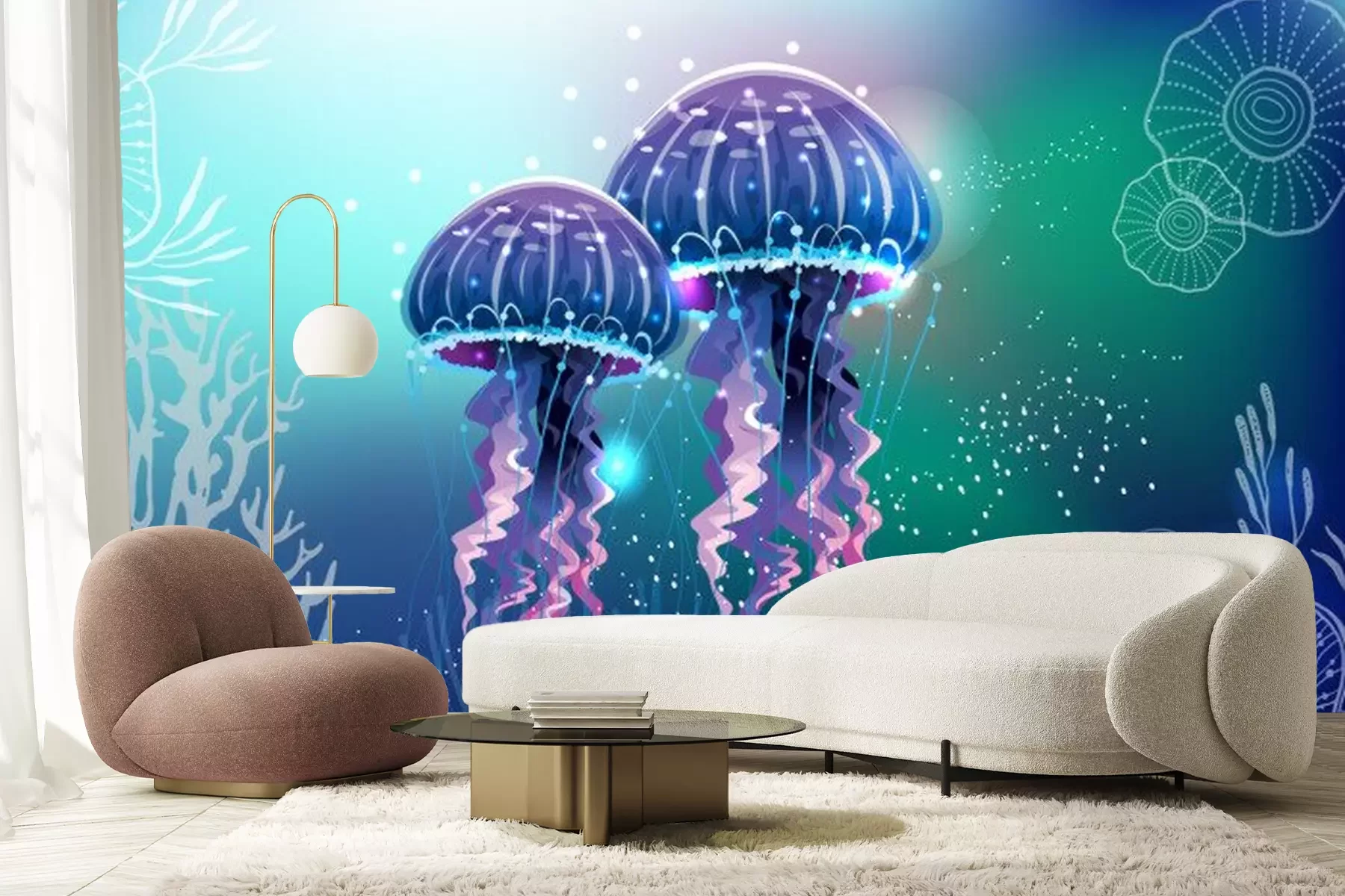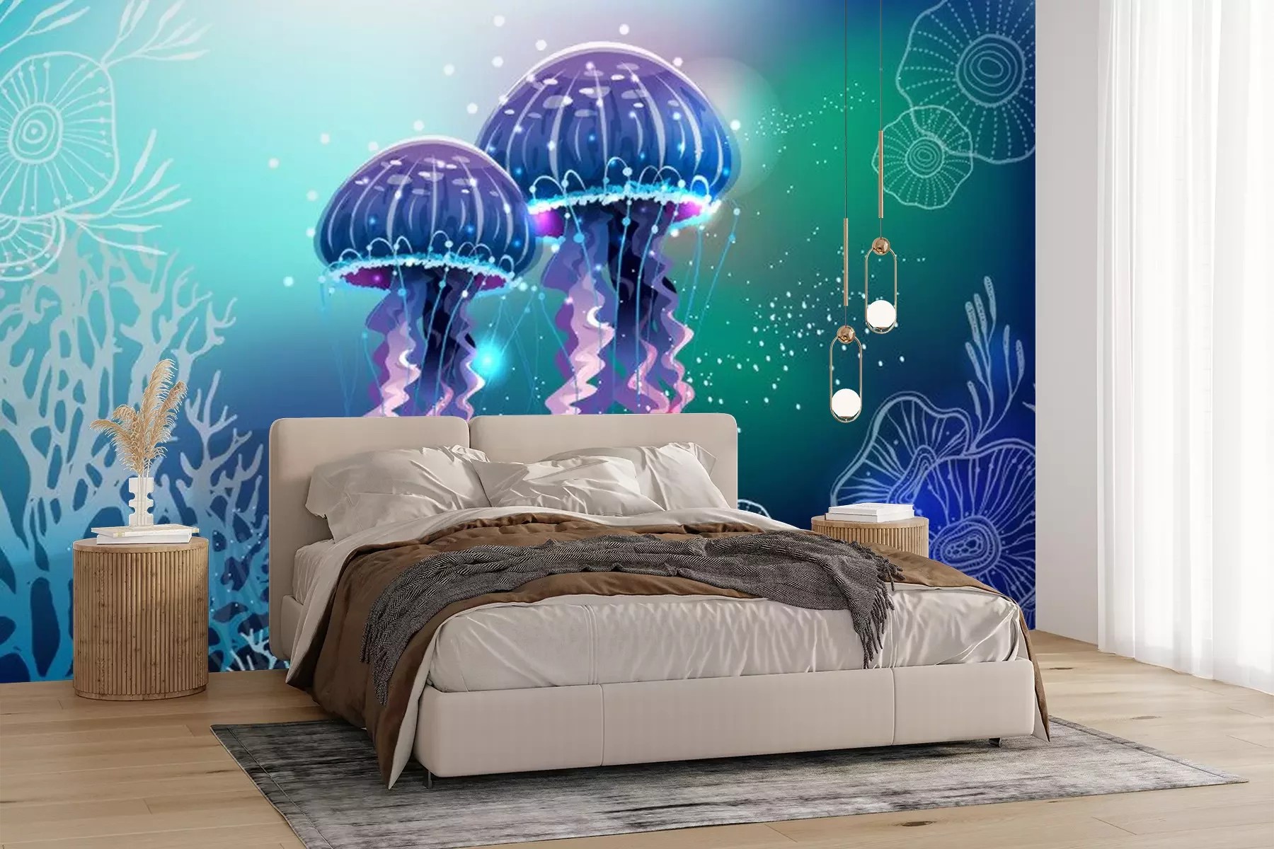 Fotobehang Magisch ontwerp met onderwaterdieren