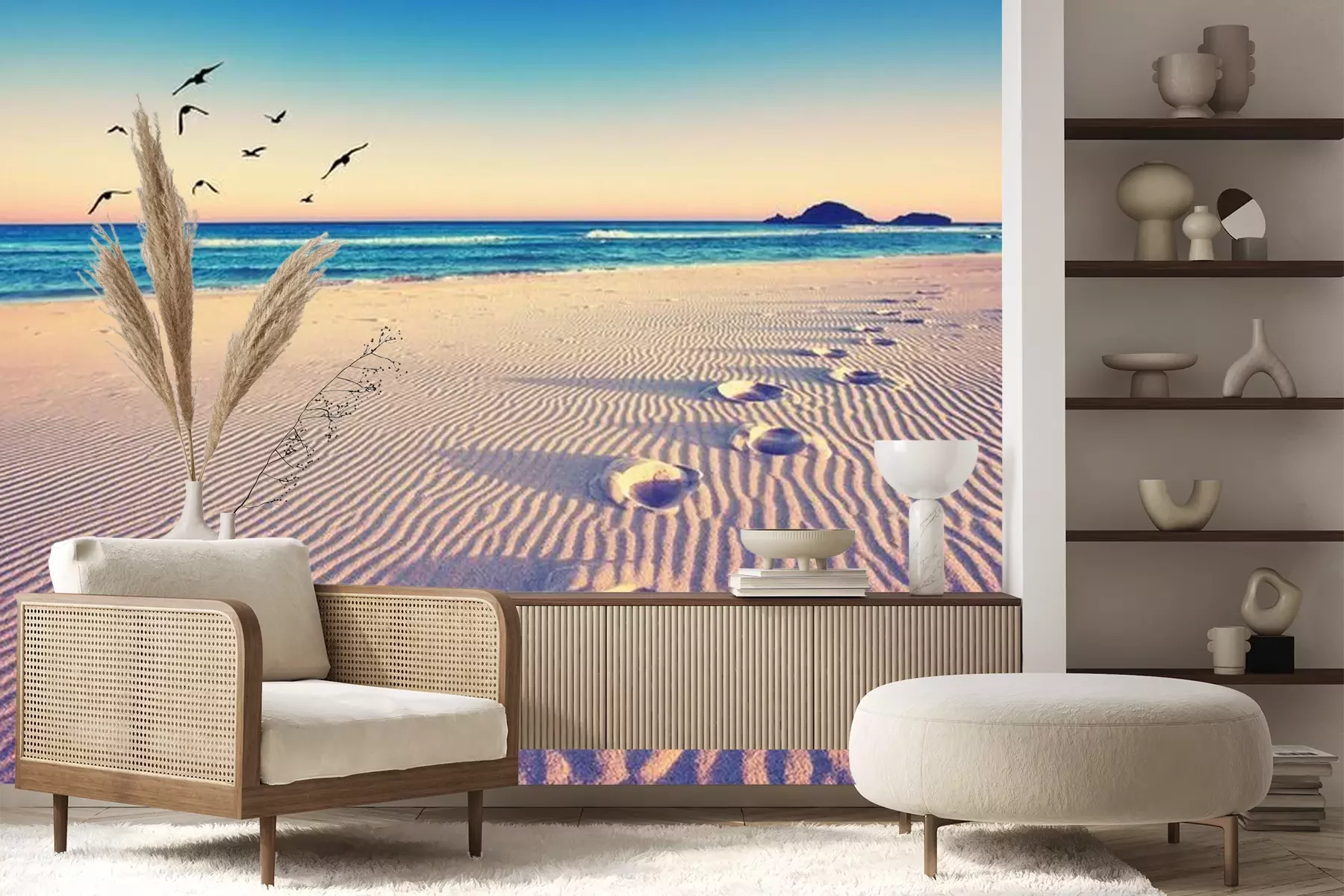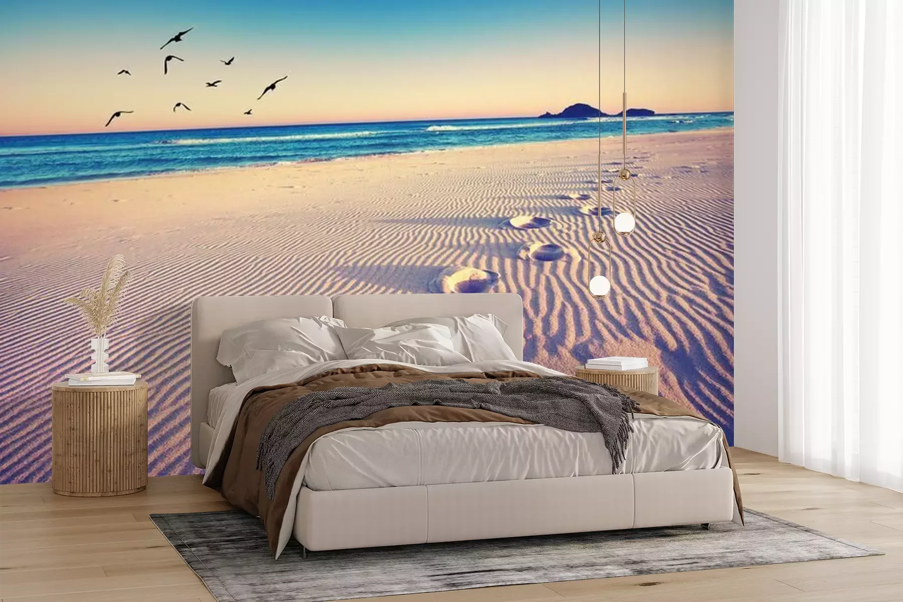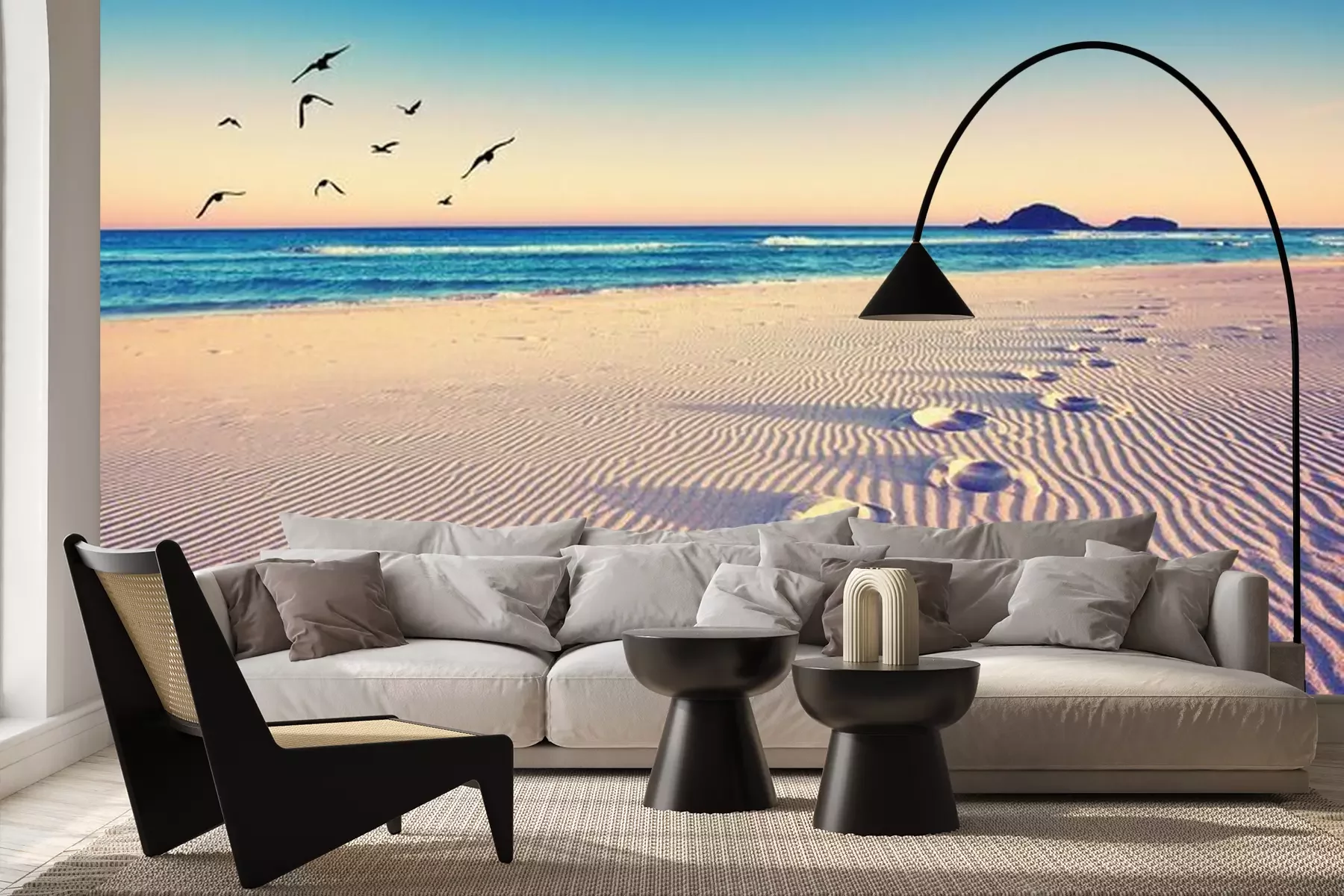Het materiaal Premium+ is een gestructureerd vinyl op vlies met een gewicht van 255 g/m², dat kleine oneffenheden in de muur effectief camoufleert. De subtiele structuur van fijn zand geeft het oppervlak een exclusieve uitstraling, terwijl de halfmatte afwerking de diepte van de kleuren benadrukt. Het materiaal is dampdoorlatend, waardoor het ook in de keuken en badkamer kan worden gebruikt. De maximale breedte van één baan bedraagt 100 cm – bij grotere afmetingen wordt het fotobehang in meerdere gelijke banen verdeeld. De lijm wordt direct op de muur aangebracht en het behang wordt rand-aan-rand geplakt, wat zorgt voor een esthetisch resultaat zonder zichtbare naden. Het oppervlak kan gemakkelijk worden schoongemaakt door het voorzichtig af te nemen met een vochtige doek.