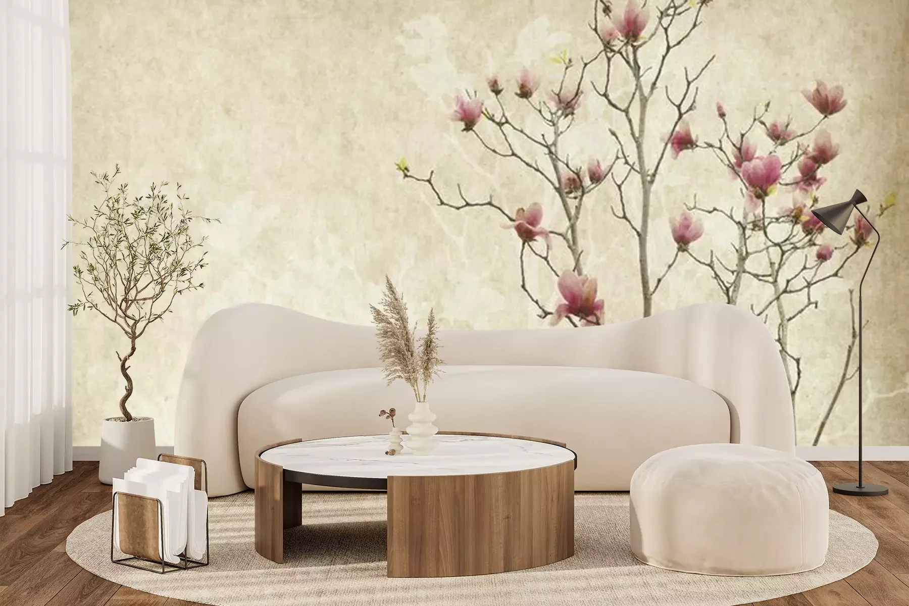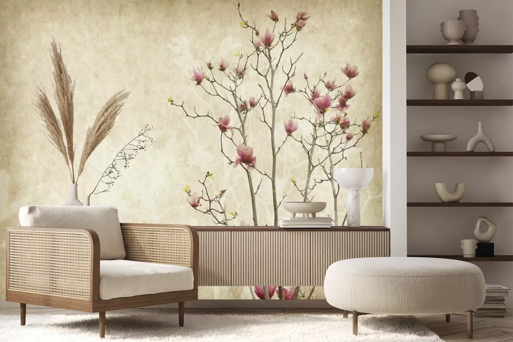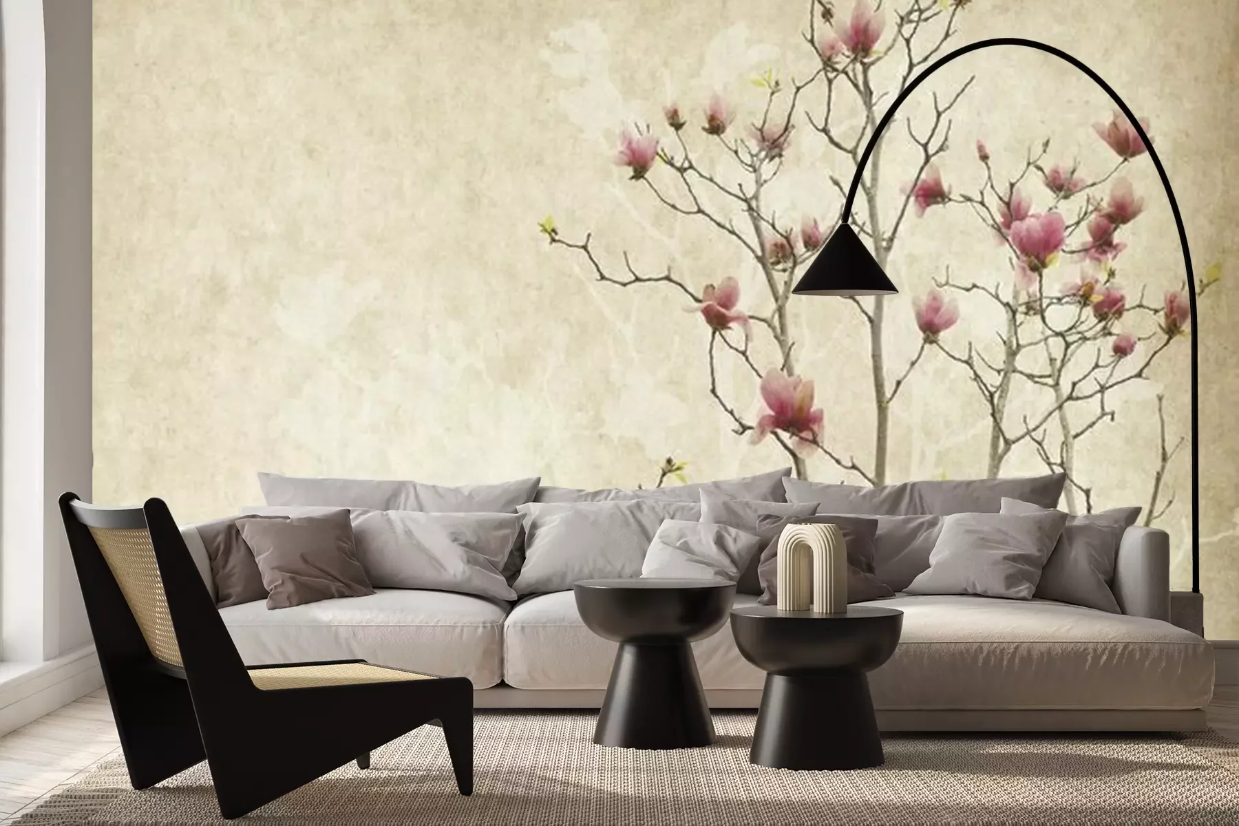 Het materiaal Premium+ is een gestructureerd vinyl op vlies met een gewicht van 255 g/m², dat kleine oneffenheden in de muur effectief camoufleert. De subtiele structuur van fijn zand geeft het oppervlak een exclusieve uitstraling, terwijl de halfmatte afwerking de diepte van de kleuren benadrukt. Het materiaal is dampdoorlatend, waardoor het ook in de keuken en badkamer kan worden gebruikt. De maximale breedte van één baan bedraagt 100 cm – bij grotere afmetingen wordt het fotobehang in meerdere gelijke banen verdeeld. De lijm wordt direct op de muur aangebracht en het behang wordt rand-aan-rand geplakt, wat zorgt voor een esthetisch resultaat zonder zichtbare naden. Het oppervlak kan gemakkelijk worden schoongemaakt door het voorzichtig af te nemen met een vochtige doek.
