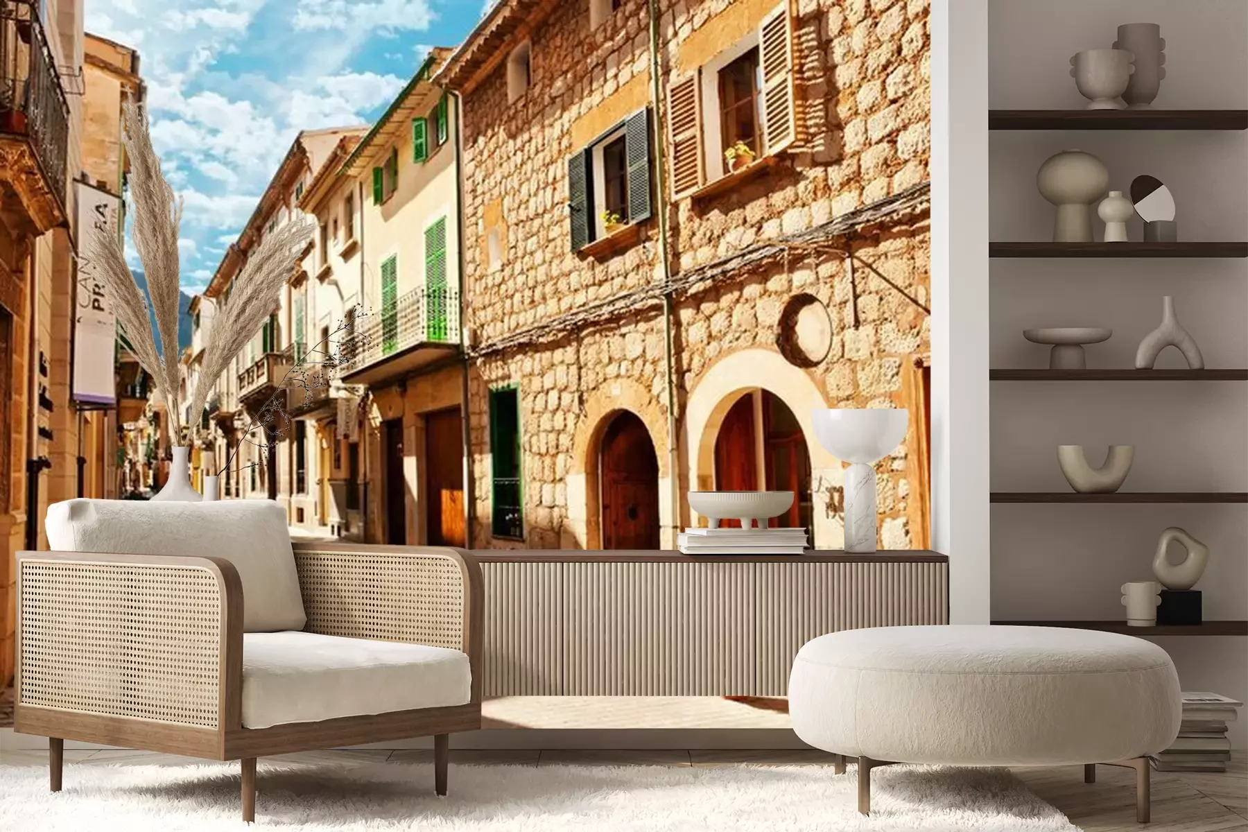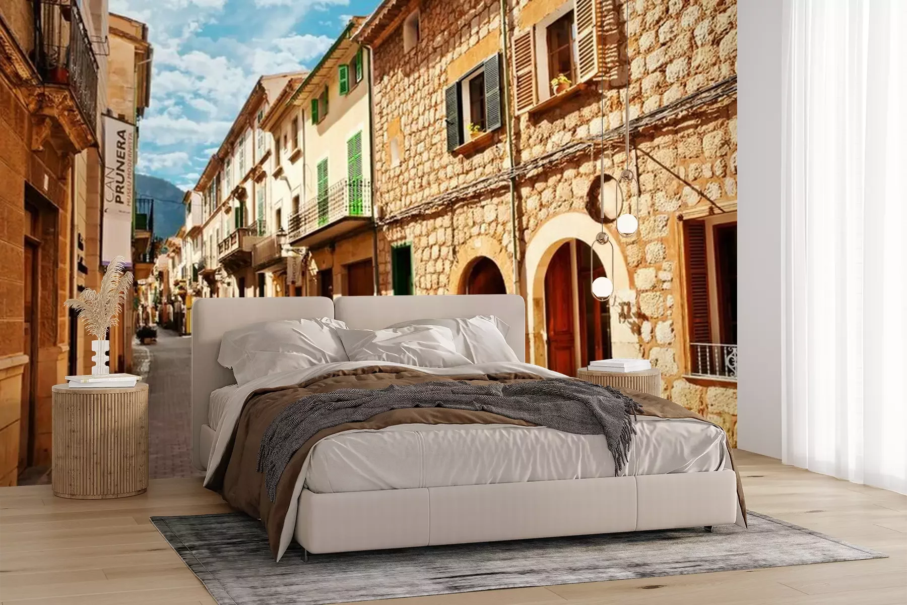 Het materiaal Premium+ is een gestructureerd vinyl op vlies met een gewicht van 255 g/m², dat kleine oneffenheden in de muur effectief camoufleert. De subtiele structuur van fijn zand geeft het oppervlak een exclusieve uitstraling, terwijl de halfmatte afwerking de diepte van de kleuren benadrukt. Het materiaal is dampdoorlatend, waardoor het ook in de keuken en badkamer kan worden gebruikt. De maximale breedte van één baan bedraagt 100 cm – bij grotere afmetingen wordt het fotobehang in meerdere gelijke banen verdeeld. De lijm wordt direct op de muur aangebracht en het behang wordt rand-aan-rand geplakt, wat zorgt voor een esthetisch resultaat zonder zichtbare naden. Het oppervlak kan gemakkelijk worden schoongemaakt door het voorzichtig af te nemen met een vochtige doek.