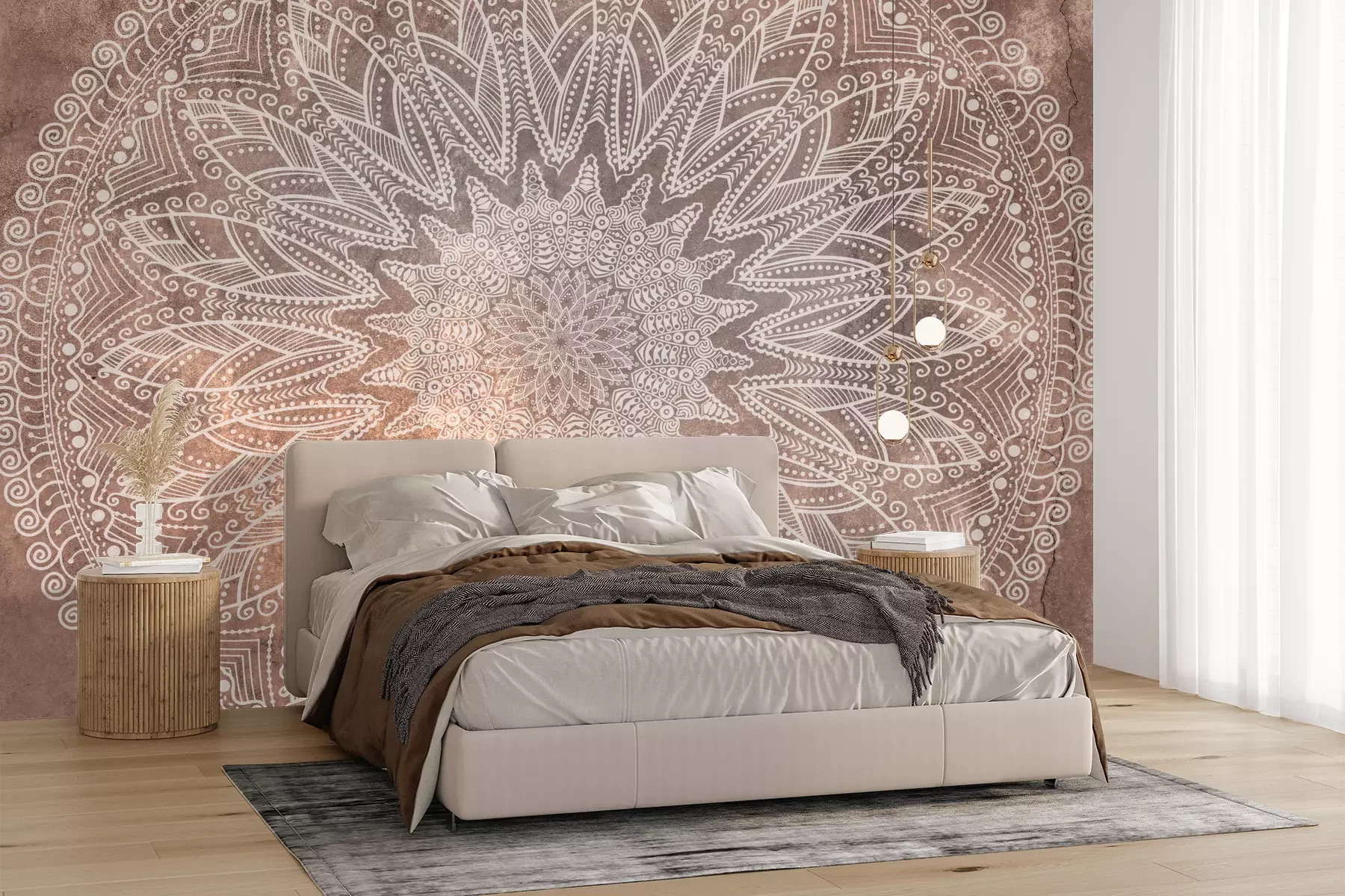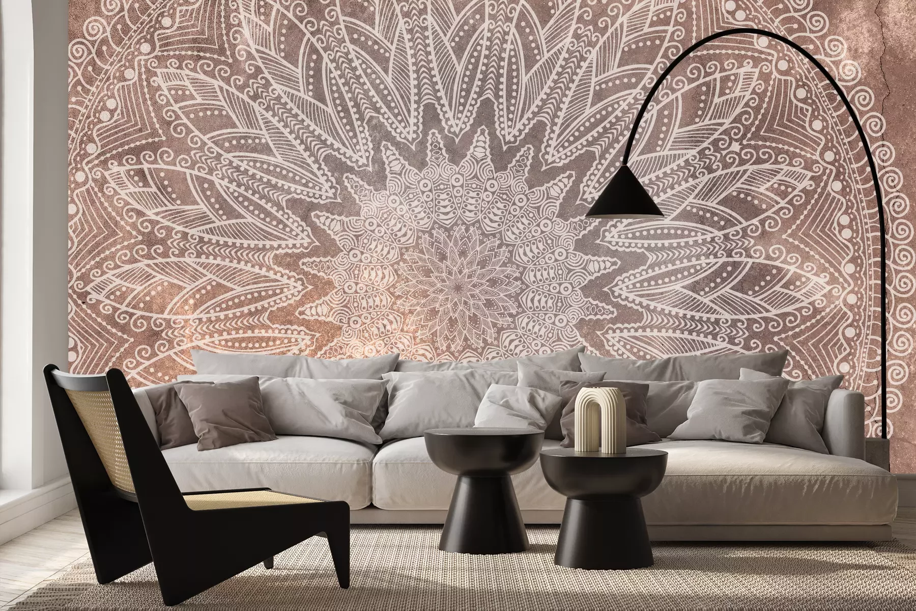 Mandala op een betonnen achtergrond in mocha mousse kleuren