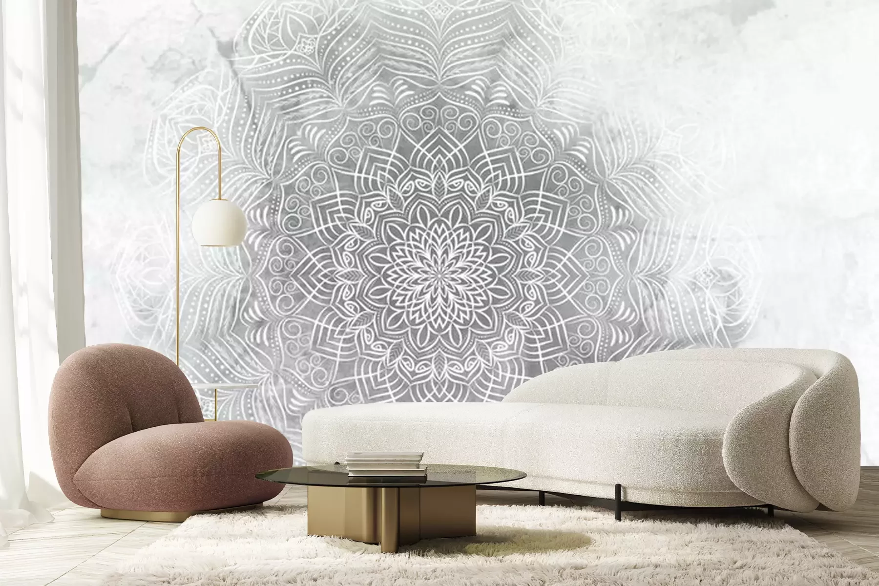 Fotobehang Mandala op een marmeren achtergrond