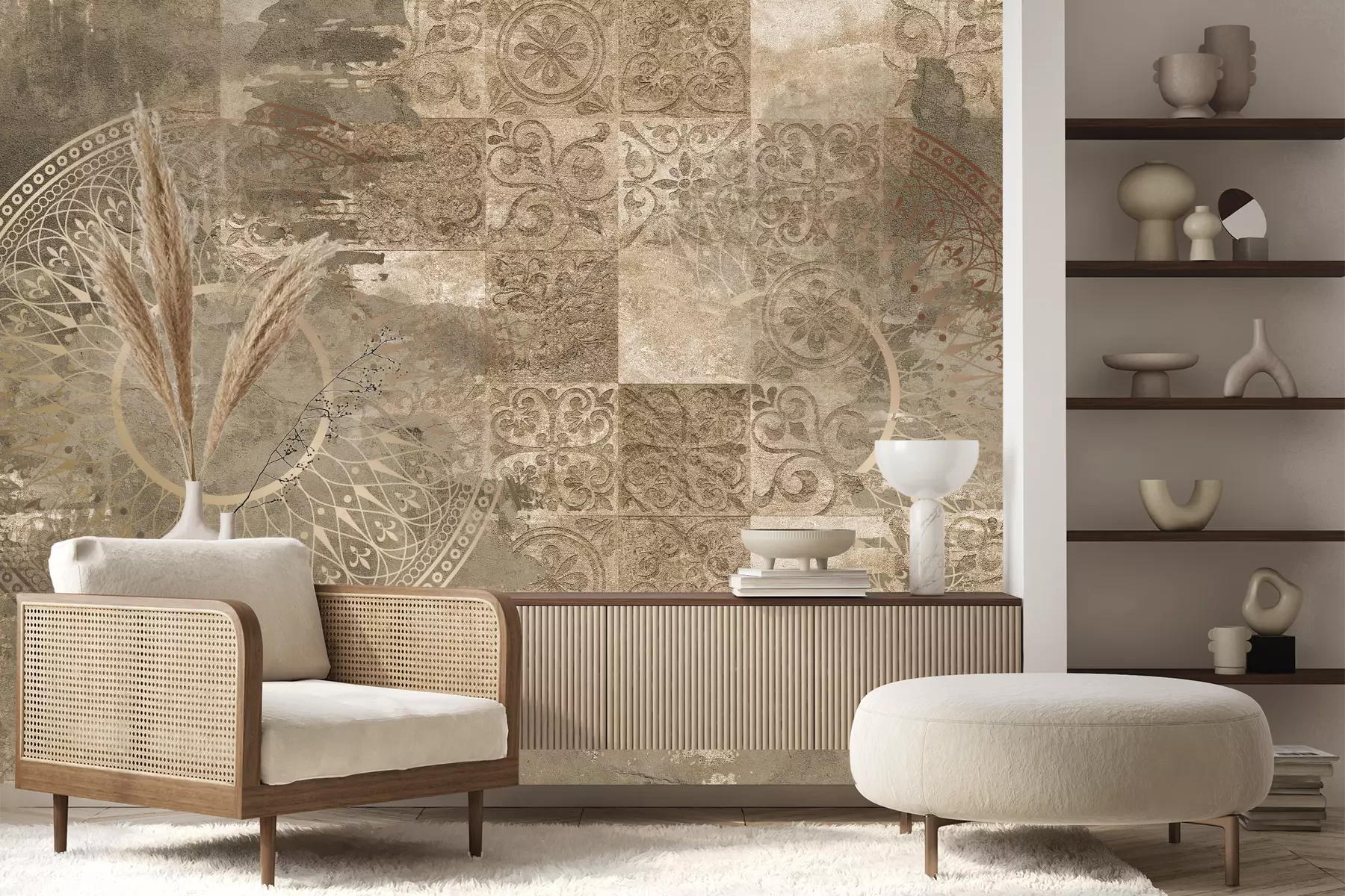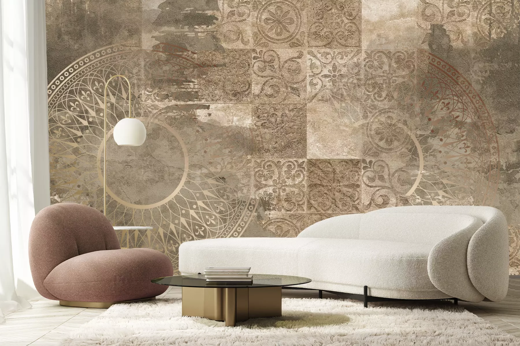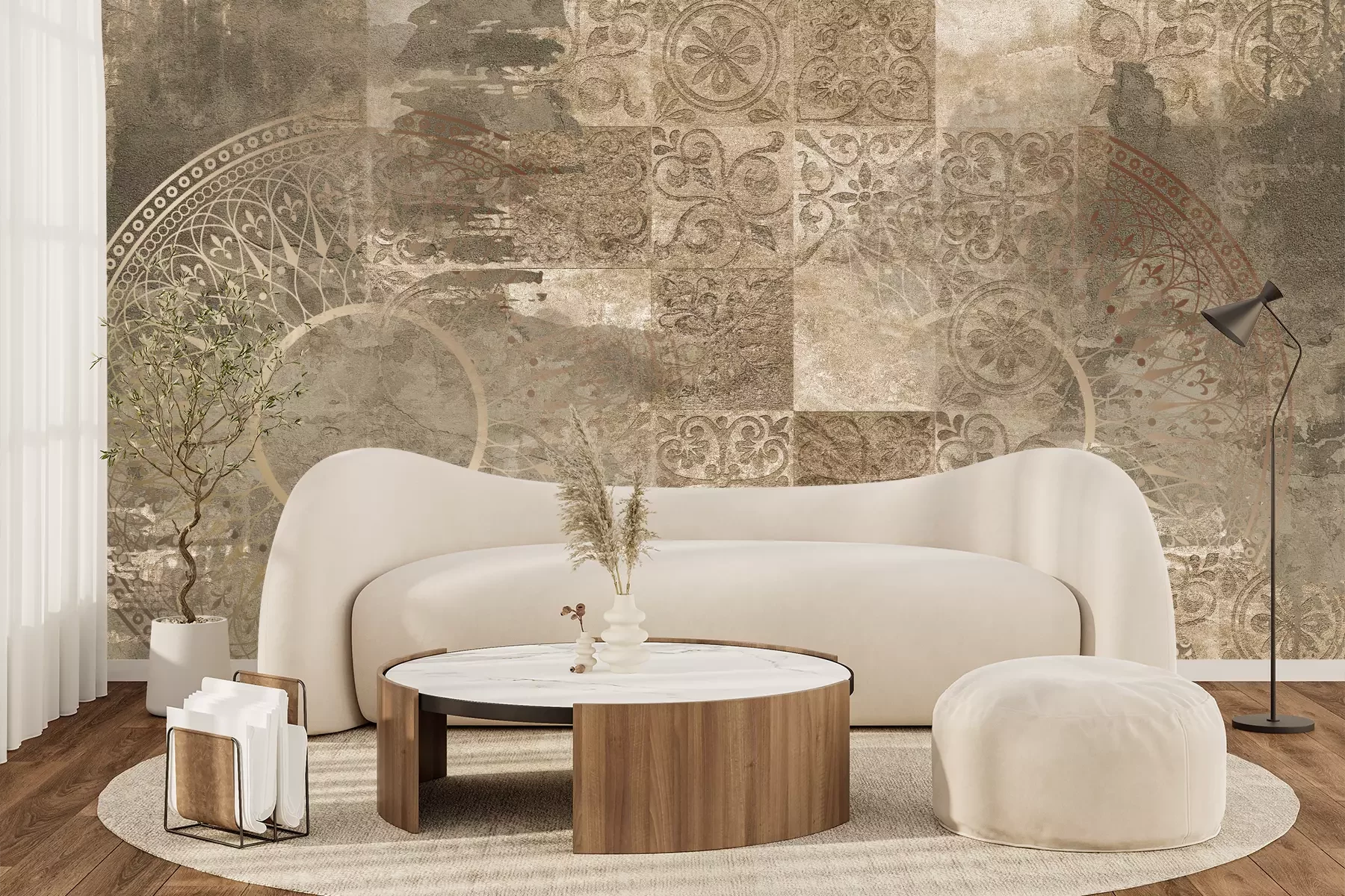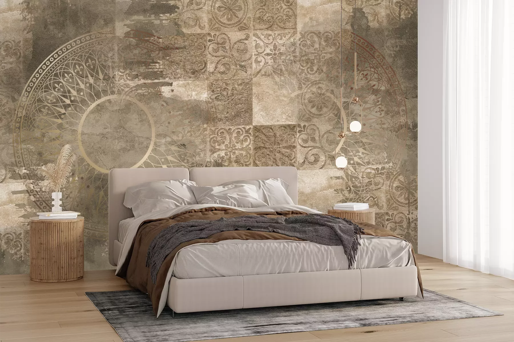 Het materiaal Standard is een hoogwaardig latexmateriaal met een glad, mat oppervlak. Dankzij de HP Latex-printtechnologie zijn de kleuren intens, duurzaam en UV-bestendig, waardoor het patroon jarenlang een onberispelijke uitstraling behoudt. Vervuilde oppervlakken kunnen voorzichtig worden afgeveegd met een droge doek. De maximale breedte van één baan bedraagt 95 cm of 105 cm – afhankelijk van de bestelde fotobehangbreedte. Bij grotere afmetingen wordt het patroon verdeeld over meerdere gelijkmatige banen. Het fotobehang wordt rand-aan-randaangebracht, wat vrijwel onzichtbare naden mogelijk maakt.