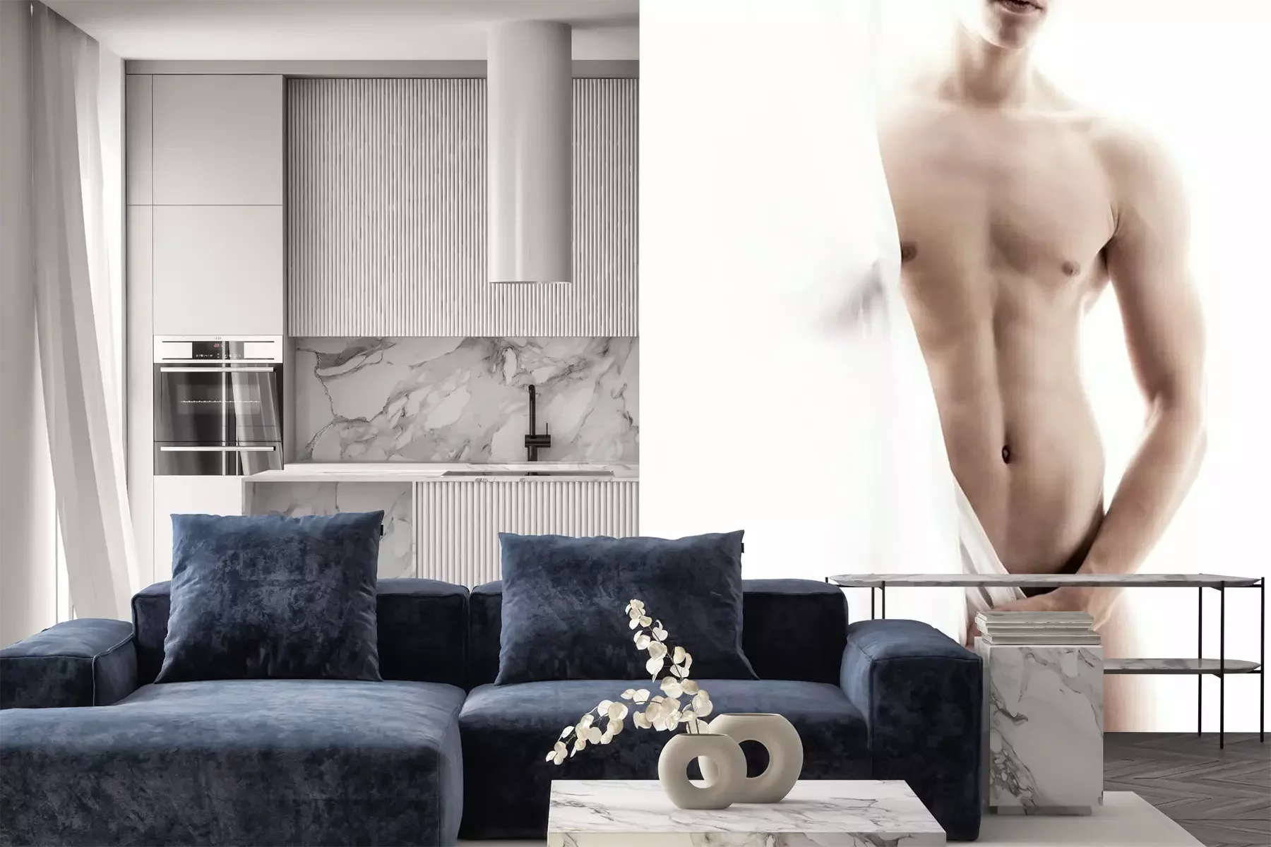 Het materiaal Premium+ is een gestructureerd vinyl op vlies met een gewicht van 255 g/m², dat kleine oneffenheden in de muur effectief camoufleert. De subtiele structuur van fijn zand geeft het oppervlak een exclusieve uitstraling, terwijl de halfmatte afwerking de diepte van de kleuren benadrukt. Het materiaal is dampdoorlatend, waardoor het ook in de keuken en badkamer kan worden gebruikt. De maximale breedte van één baan bedraagt 100 cm – bij grotere afmetingen wordt het fotobehang in meerdere gelijke banen verdeeld. De lijm wordt direct op de muur aangebracht en het behang wordt rand-aan-rand geplakt, wat zorgt voor een esthetisch resultaat zonder zichtbare naden. Het oppervlak kan gemakkelijk worden schoongemaakt door het voorzichtig af te nemen met een vochtige doek.
