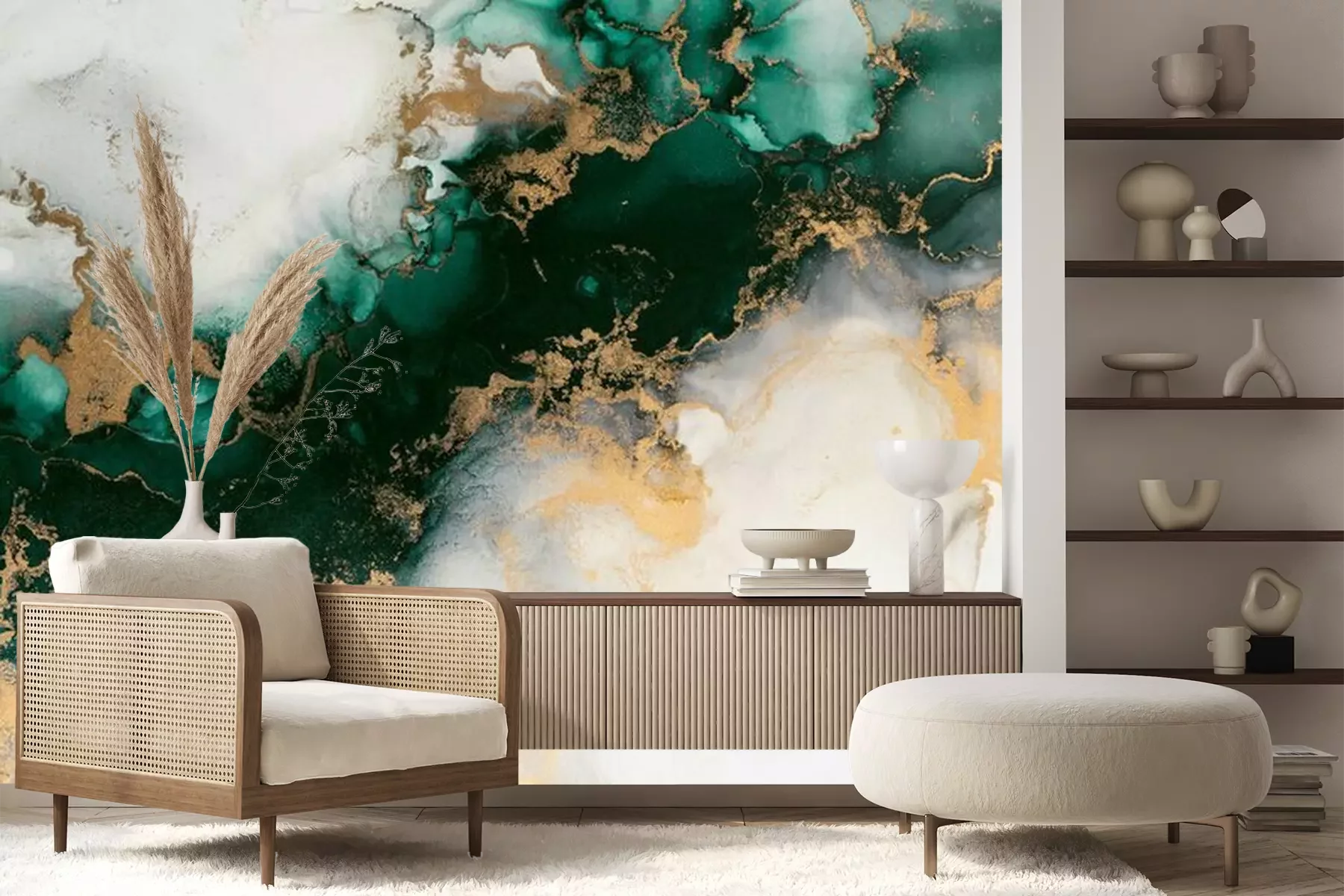 Aquarelmarmer met zwarte en gouden kleurFotobehang