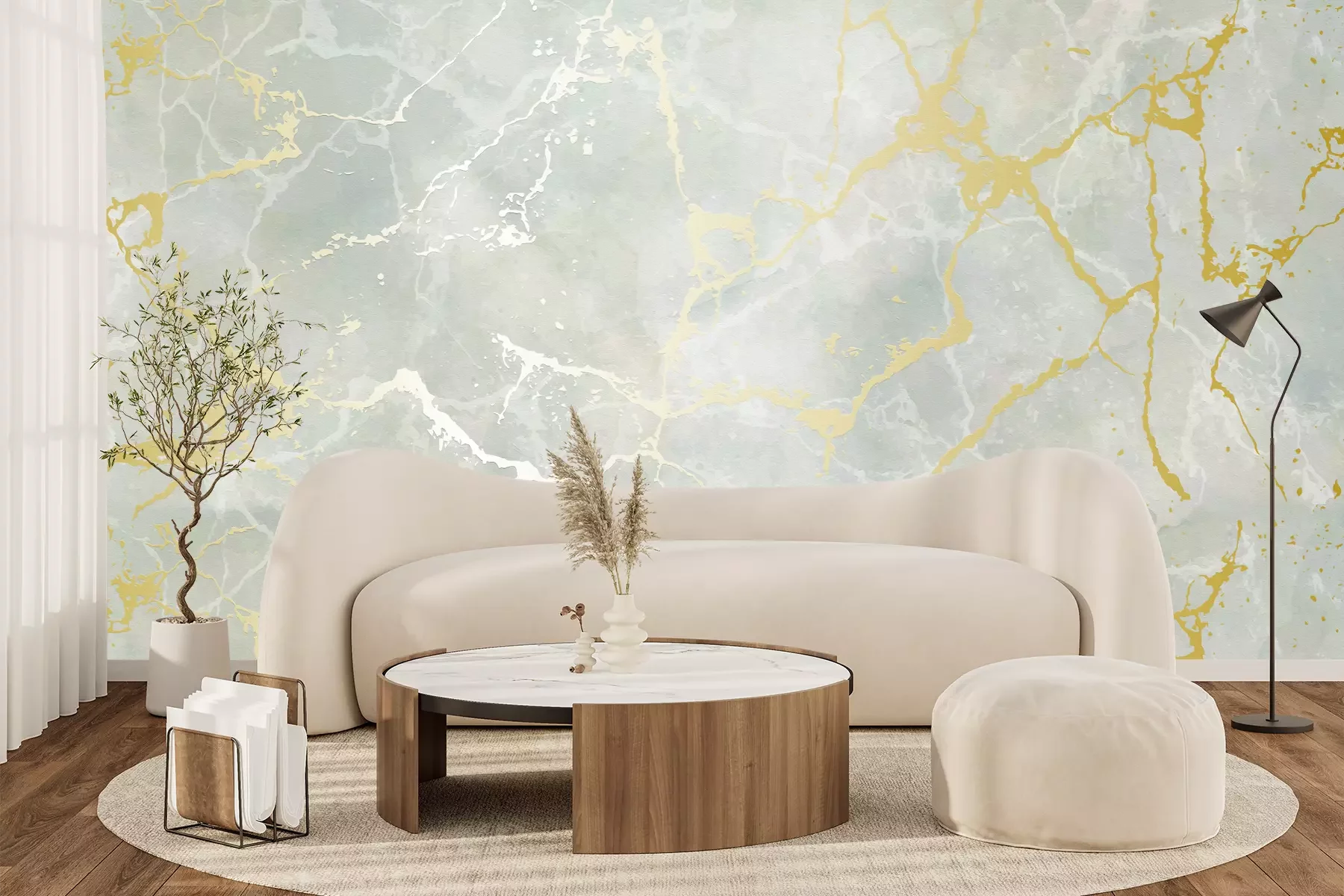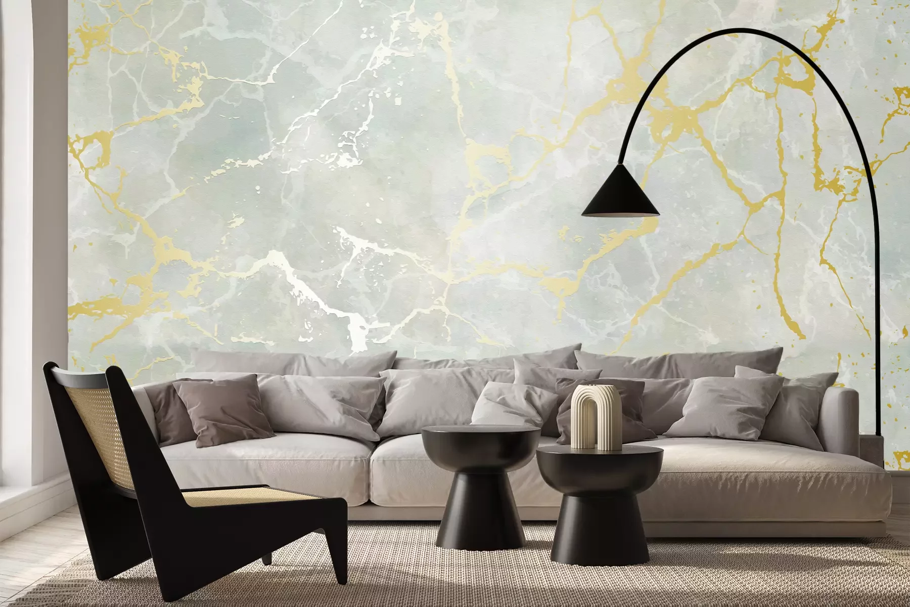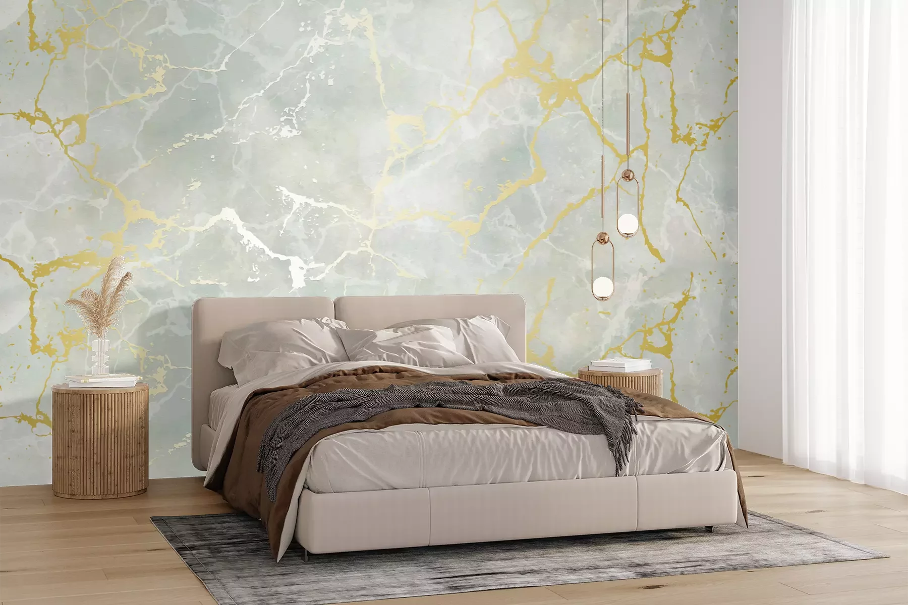 Het materiaal Premium+ is een gestructureerd vinyl op vlies met een gewicht van 255 g/m², dat kleine oneffenheden in de muur effectief camoufleert. De subtiele structuur van fijn zand geeft het oppervlak een exclusieve uitstraling, terwijl de halfmatte afwerking de diepte van de kleuren benadrukt. Het materiaal is dampdoorlatend, waardoor het ook in de keuken en badkamer kan worden gebruikt. De maximale breedte van één baan bedraagt 100 cm – bij grotere afmetingen wordt het fotobehang in meerdere gelijke banen verdeeld. De lijm wordt direct op de muur aangebracht en het behang wordt rand-aan-rand geplakt, wat zorgt voor een esthetisch resultaat zonder zichtbare naden. Het oppervlak kan gemakkelijk worden schoongemaakt door het voorzichtig af te nemen met een vochtige doek.