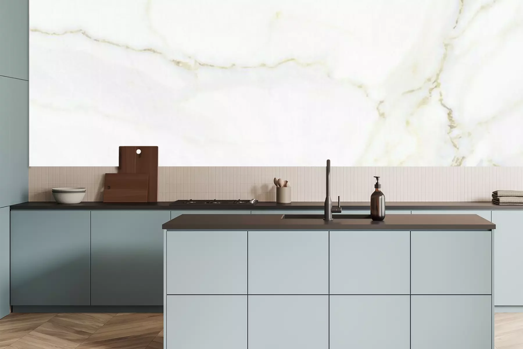 Fotobehang Marmeren witte muur met gele krassen