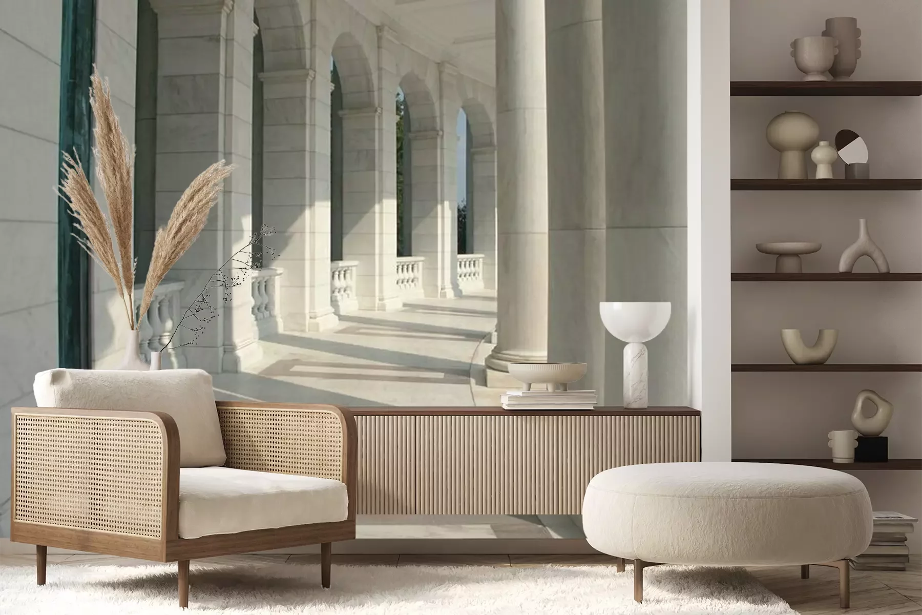 Het materiaal Premium+ is een gestructureerd vinyl op vlies met een gewicht van 255 g/m², dat kleine oneffenheden in de muur effectief camoufleert. De subtiele structuur van fijn zand geeft het oppervlak een exclusieve uitstraling, terwijl de halfmatte afwerking de diepte van de kleuren benadrukt. Het materiaal is dampdoorlatend, waardoor het ook in de keuken en badkamer kan worden gebruikt. De maximale breedte van één baan bedraagt 100 cm – bij grotere afmetingen wordt het fotobehang in meerdere gelijke banen verdeeld. De lijm wordt direct op de muur aangebracht en het behang wordt rand-aan-rand geplakt, wat zorgt voor een esthetisch resultaat zonder zichtbare naden. Het oppervlak kan gemakkelijk worden schoongemaakt door het voorzichtig af te nemen met een vochtige doek.