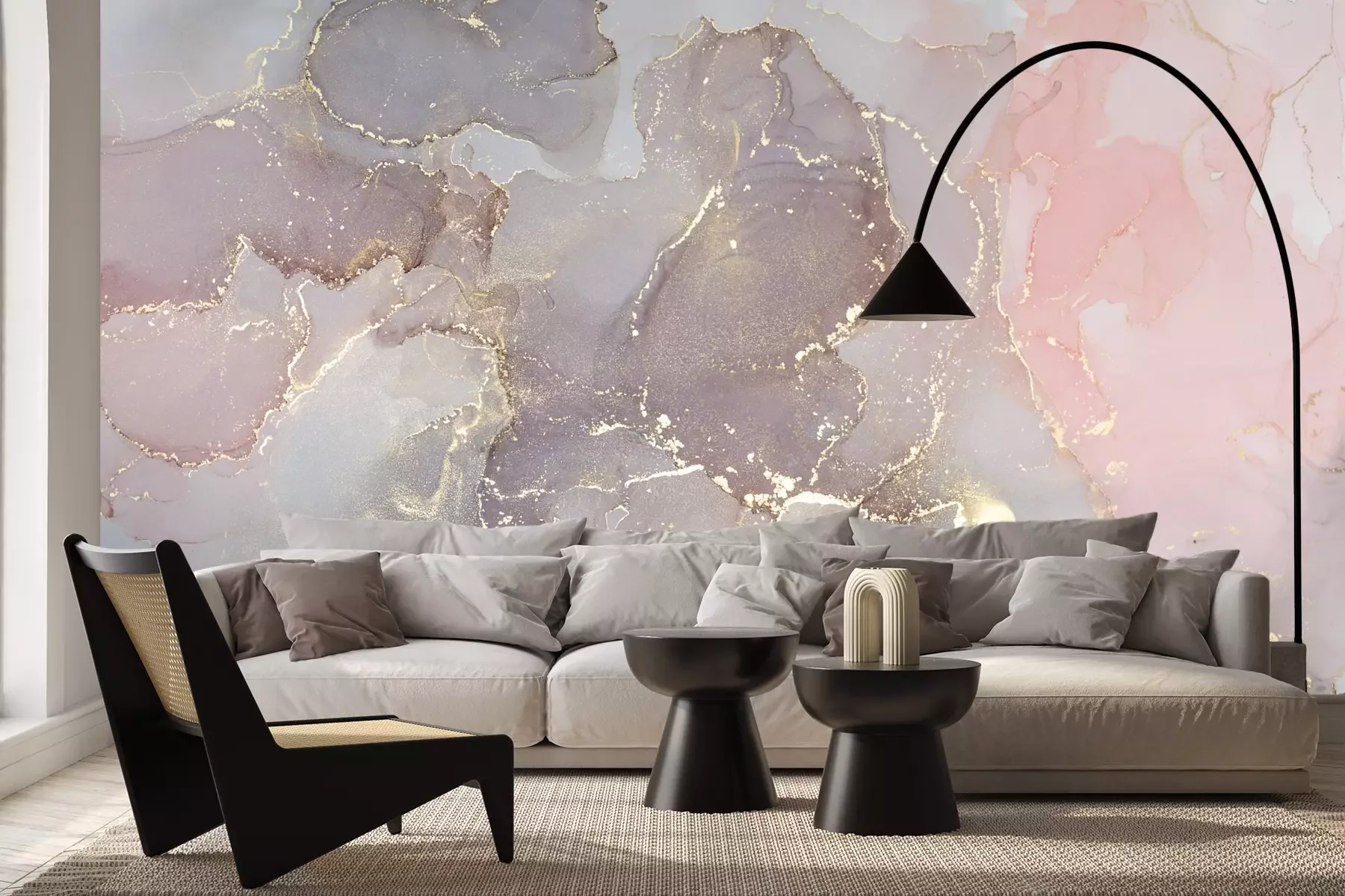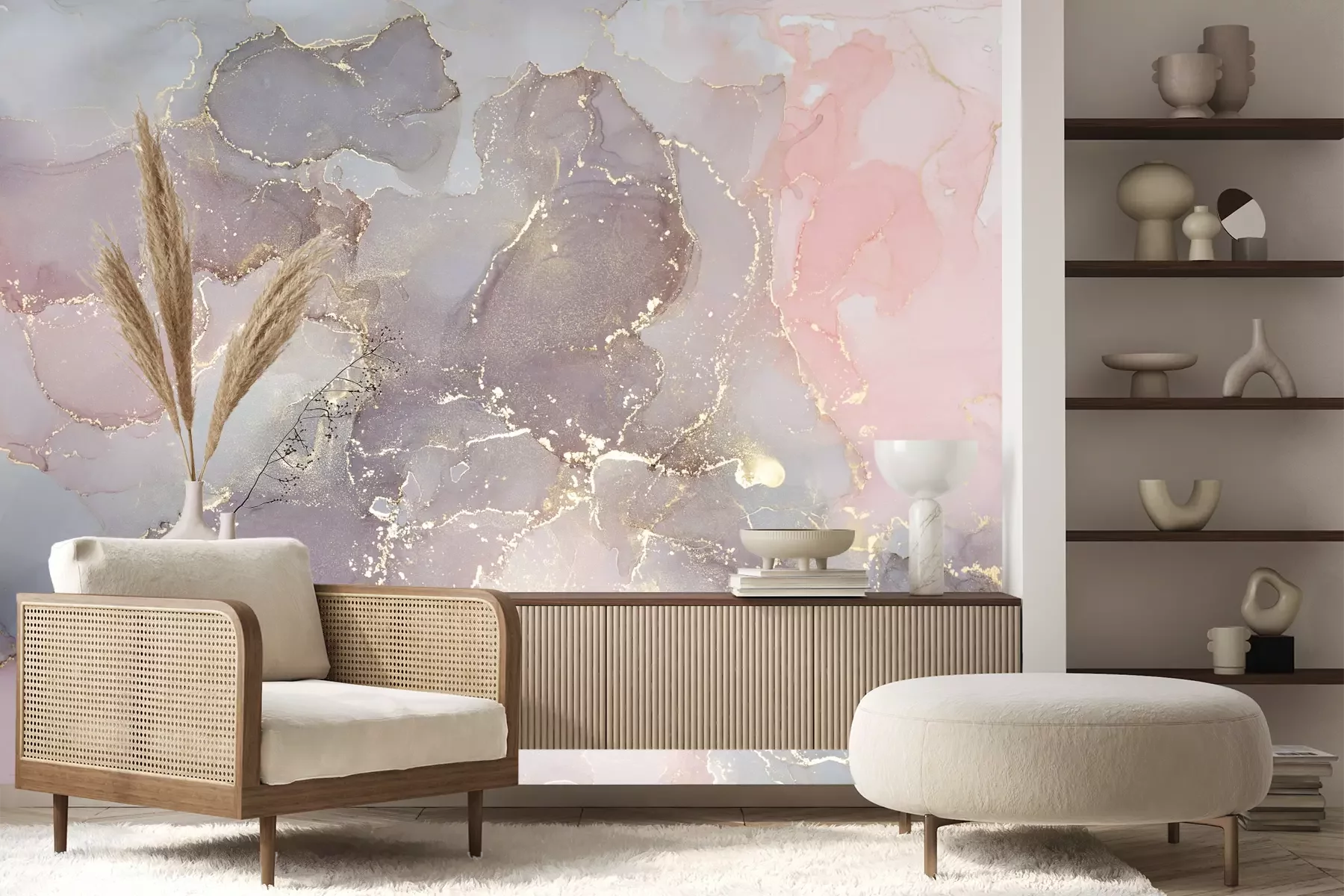 Het materiaal Premium+ is een gestructureerd vinyl op vlies met een gewicht van 255 g/m², dat kleine oneffenheden in de muur effectief camoufleert. De subtiele structuur van fijn zand geeft het oppervlak een exclusieve uitstraling, terwijl de halfmatte afwerking de diepte van de kleuren benadrukt. Het materiaal is dampdoorlatend, waardoor het ook in de keuken en badkamer kan worden gebruikt. De maximale breedte van één baan bedraagt 100 cm – bij grotere afmetingen wordt het fotobehang in meerdere gelijke banen verdeeld. De lijm wordt direct op de muur aangebracht en het behang wordt rand-aan-rand geplakt, wat zorgt voor een esthetisch resultaat zonder zichtbare naden. Het oppervlak kan gemakkelijk worden schoongemaakt door het voorzichtig af te nemen met een vochtige doek.