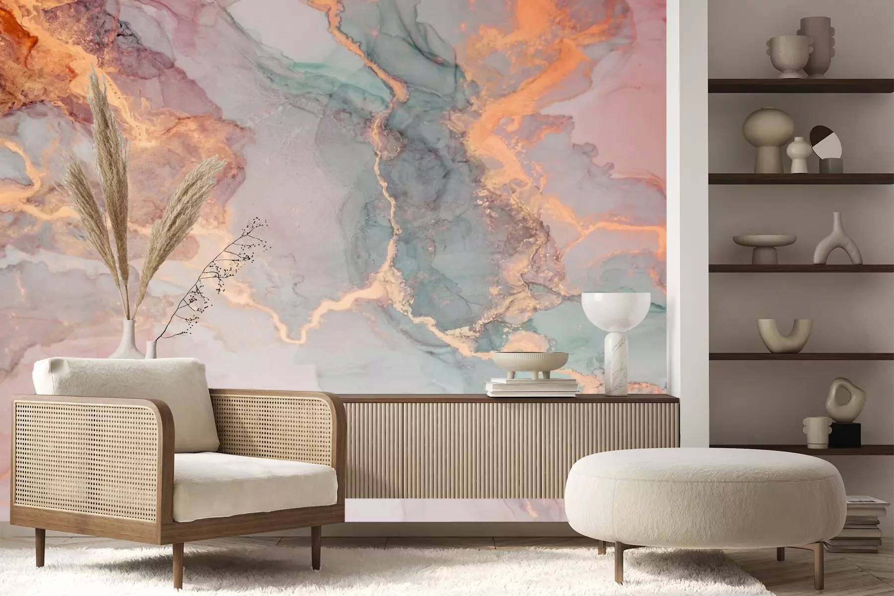 Het materiaal Premium+ is een gestructureerd vinyl op vlies met een gewicht van 255 g/m², dat kleine oneffenheden in de muur effectief camoufleert. De subtiele structuur van fijn zand geeft het oppervlak een exclusieve uitstraling, terwijl de halfmatte afwerking de diepte van de kleuren benadrukt. Het materiaal is dampdoorlatend, waardoor het ook in de keuken en badkamer kan worden gebruikt. De maximale breedte van één baan bedraagt 100 cm – bij grotere afmetingen wordt het fotobehang in meerdere gelijke banen verdeeld. De lijm wordt direct op de muur aangebracht en het behang wordt rand-aan-rand geplakt, wat zorgt voor een esthetisch resultaat zonder zichtbare naden. Het oppervlak kan gemakkelijk worden schoongemaakt door het voorzichtig af te nemen met een vochtige doek.