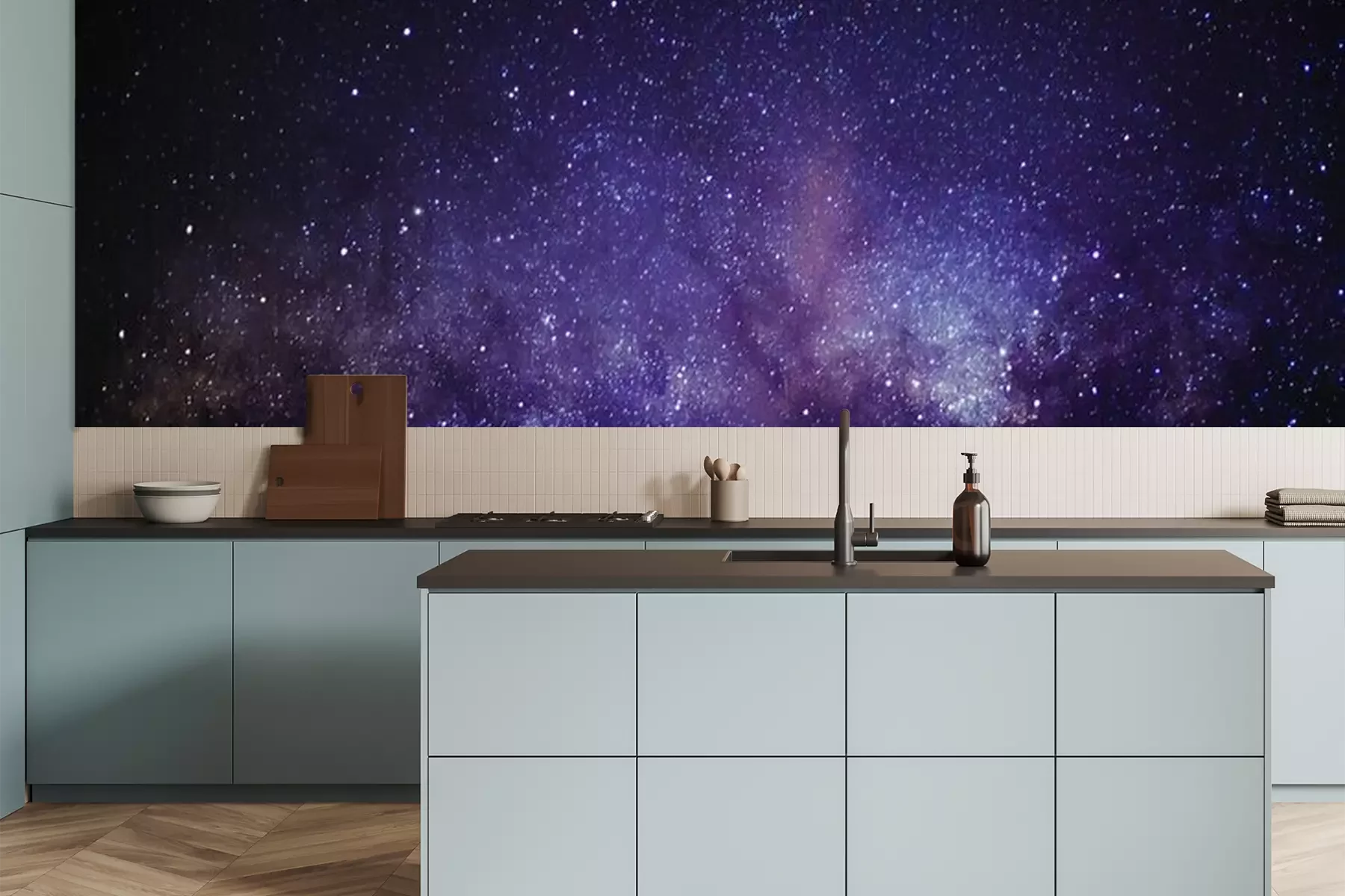 Het materiaal Premium is een glad vinyl op vlies, dat bestand is tegen uitrekken en vervorming. Het is dampdoorlatend – de muren kunnen vrij ademen – waardoor het geschikt is voor gebruik in de keuken en badkamer. Bij vervuiling kan het materiaal worden afgenomen met een vochtige doek. De maximale breedte van één baan bedraagt 95 of 105 cm, afhankelijk van de beschikbaarheid. Montage vindt plaats met de rand-aan-rand methode, wat een esthetisch resultaat zonder zichtbare naden oplevert. Omdat de lijm rechtstreeks op de muur wordt aangebracht, verloopt de installatie van het fotobehang snel en eenvoudig.