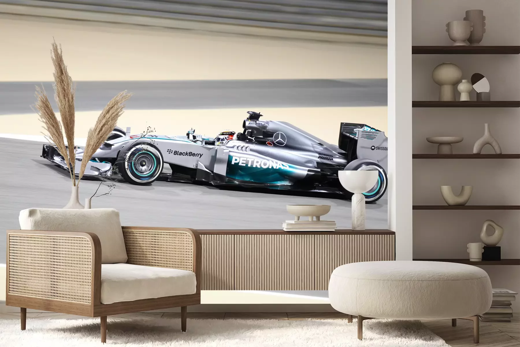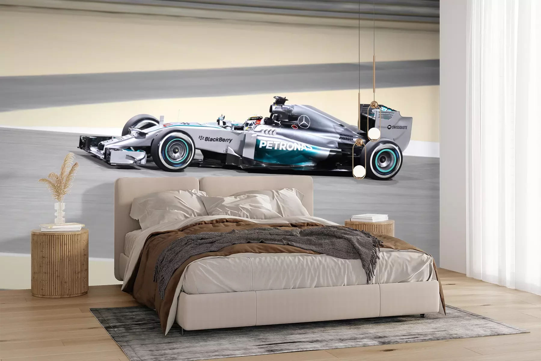 Het materiaal Premium+ is een gestructureerd vinyl op vlies met een gewicht van 255 g/m², dat kleine oneffenheden in de muur effectief camoufleert. De subtiele structuur van fijn zand geeft het oppervlak een exclusieve uitstraling, terwijl de halfmatte afwerking de diepte van de kleuren benadrukt. Het materiaal is dampdoorlatend, waardoor het ook in de keuken en badkamer kan worden gebruikt. De maximale breedte van één baan bedraagt 100 cm – bij grotere afmetingen wordt het fotobehang in meerdere gelijke banen verdeeld. De lijm wordt direct op de muur aangebracht en het behang wordt rand-aan-rand geplakt, wat zorgt voor een esthetisch resultaat zonder zichtbare naden. Het oppervlak kan gemakkelijk worden schoongemaakt door het voorzichtig af te nemen met een vochtige doek.