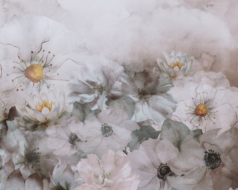 Fotobehang: Met waterverf geschilderde wilde bloemen