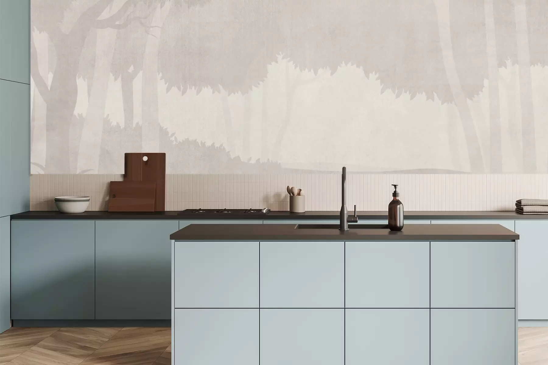 Het materiaal Premium is een glad vinyl op vlies, dat bestand is tegen uitrekken en vervorming. Het is dampdoorlatend – de muren kunnen vrij ademen – waardoor het geschikt is voor gebruik in de keuken en badkamer. Bij vervuiling kan het materiaal worden afgenomen met een vochtige doek. De maximale breedte van één baan bedraagt 95 of 105 cm, afhankelijk van de beschikbaarheid. Montage vindt plaats met de rand-aan-rand methode, wat een esthetisch resultaat zonder zichtbare naden oplevert. Omdat de lijm rechtstreeks op de muur wordt aangebracht, verloopt de installatie van het fotobehang snel en eenvoudig.