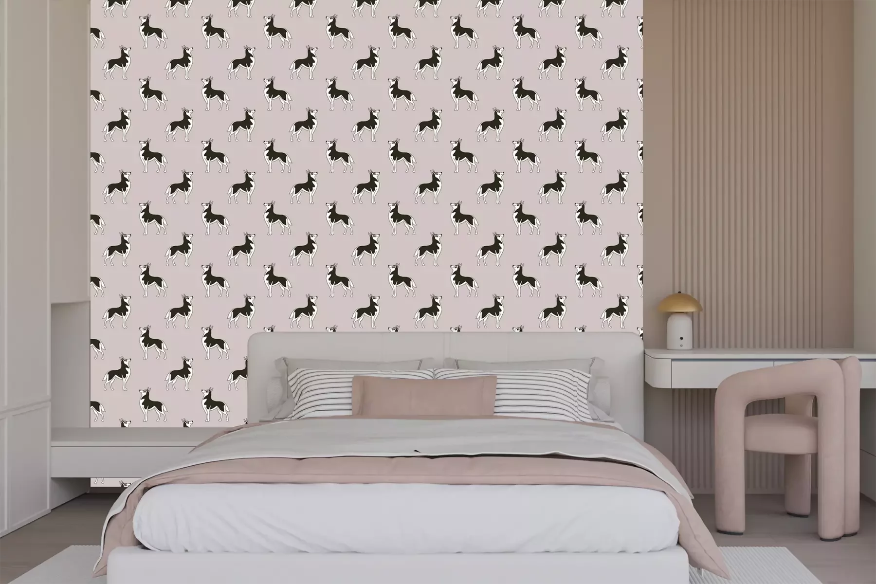 Het materiaal Standard is een hoogwaardig latexmateriaal met een glad, mat oppervlak. Dankzij de HP Latex-printtechnologie zijn de kleuren intens, duurzaam en UV-bestendig, waardoor het patroon jarenlang een onberispelijke uitstraling behoudt. Vervuilde oppervlakken kunnen voorzichtig worden afgeveegd met een droge doek. De maximale breedte van één baan bedraagt 95 cm of 105 cm – afhankelijk van de bestelde fotobehangbreedte. Bij grotere afmetingen wordt het patroon verdeeld over meerdere gelijkmatige banen. Het fotobehang wordt rand-aan-randaangebracht, wat vrijwel onzichtbare naden mogelijk maakt.