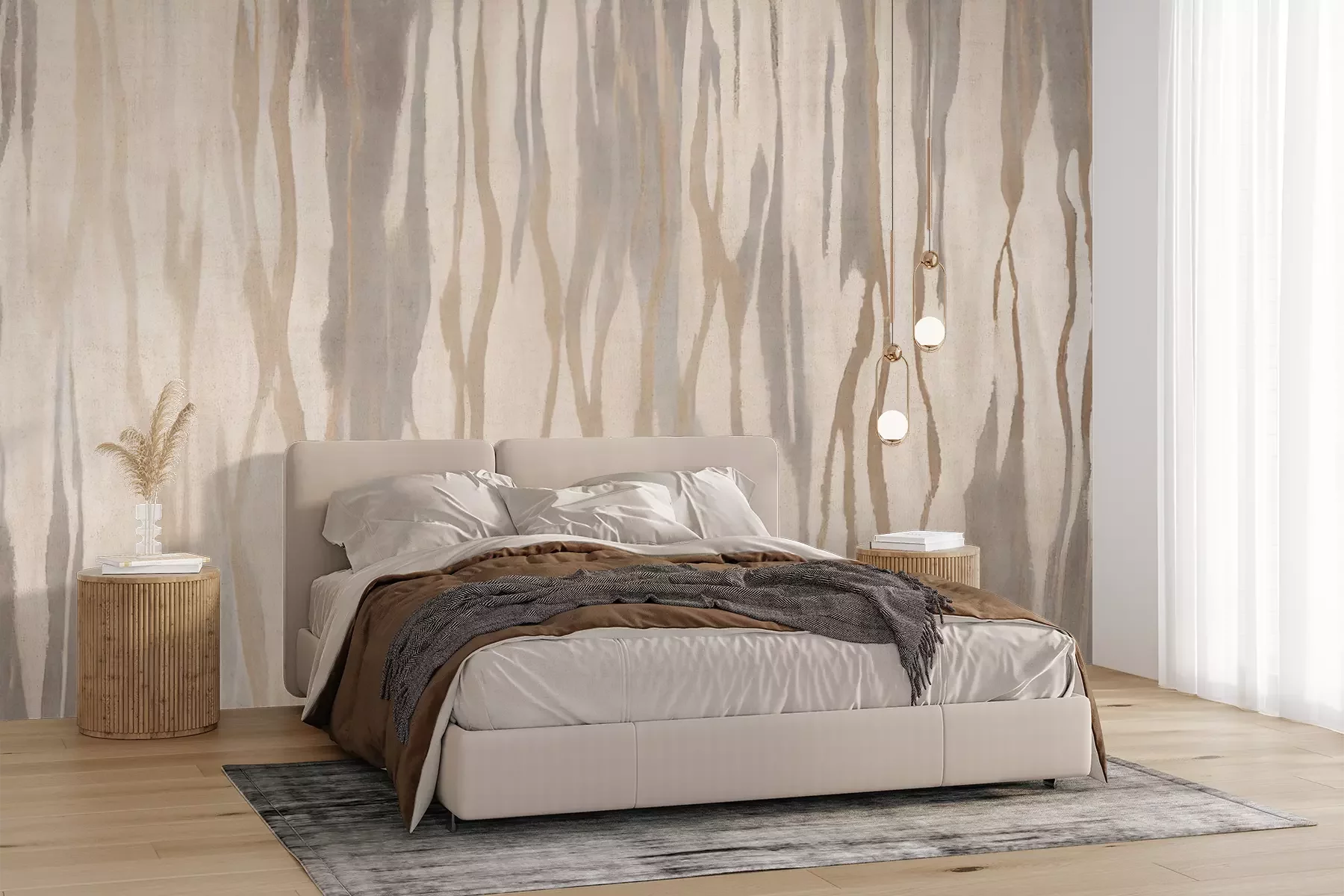 Het materiaal Premium+ is een gestructureerd vinyl op vlies met een gewicht van 255 g/m², dat kleine oneffenheden in de muur effectief camoufleert. De subtiele structuur van fijn zand geeft het oppervlak een exclusieve uitstraling, terwijl de halfmatte afwerking de diepte van de kleuren benadrukt. Het materiaal is dampdoorlatend, waardoor het ook in de keuken en badkamer kan worden gebruikt. De maximale breedte van één baan bedraagt 100 cm – bij grotere afmetingen wordt het fotobehang in meerdere gelijke banen verdeeld. De lijm wordt direct op de muur aangebracht en het behang wordt rand-aan-rand geplakt, wat zorgt voor een esthetisch resultaat zonder zichtbare naden. Het oppervlak kan gemakkelijk worden schoongemaakt door het voorzichtig af te nemen met een vochtige doek.